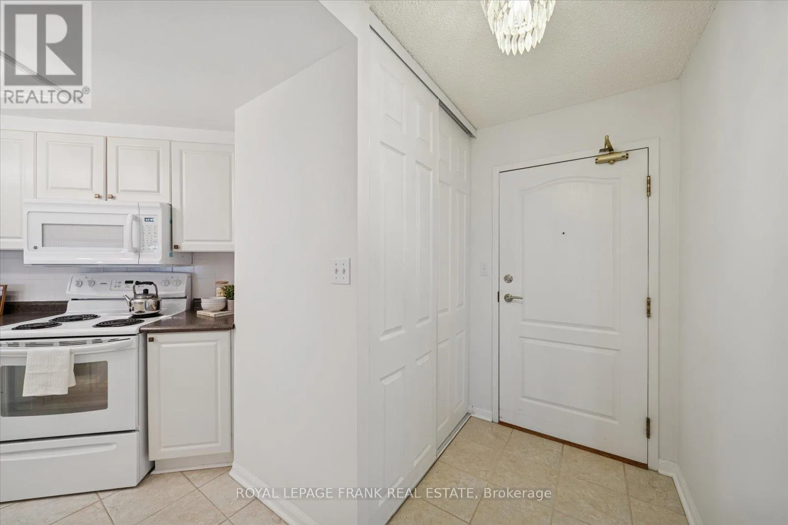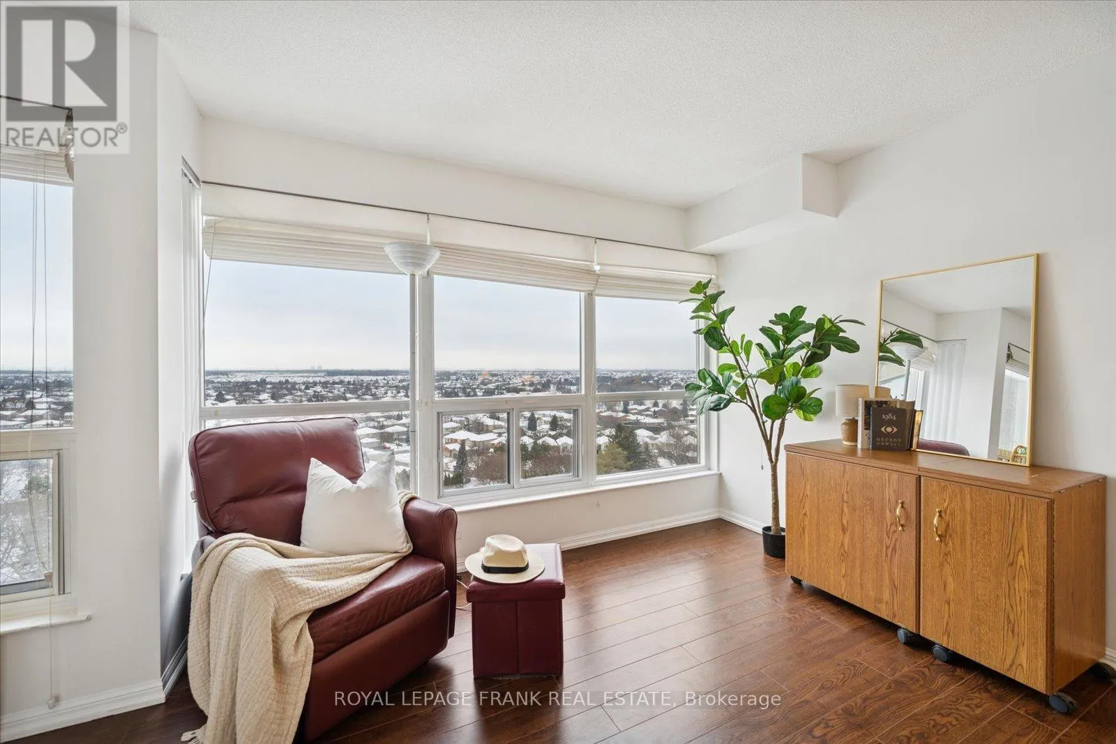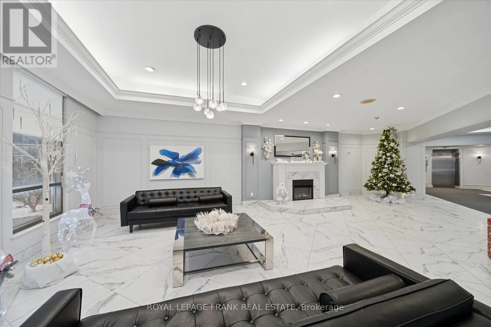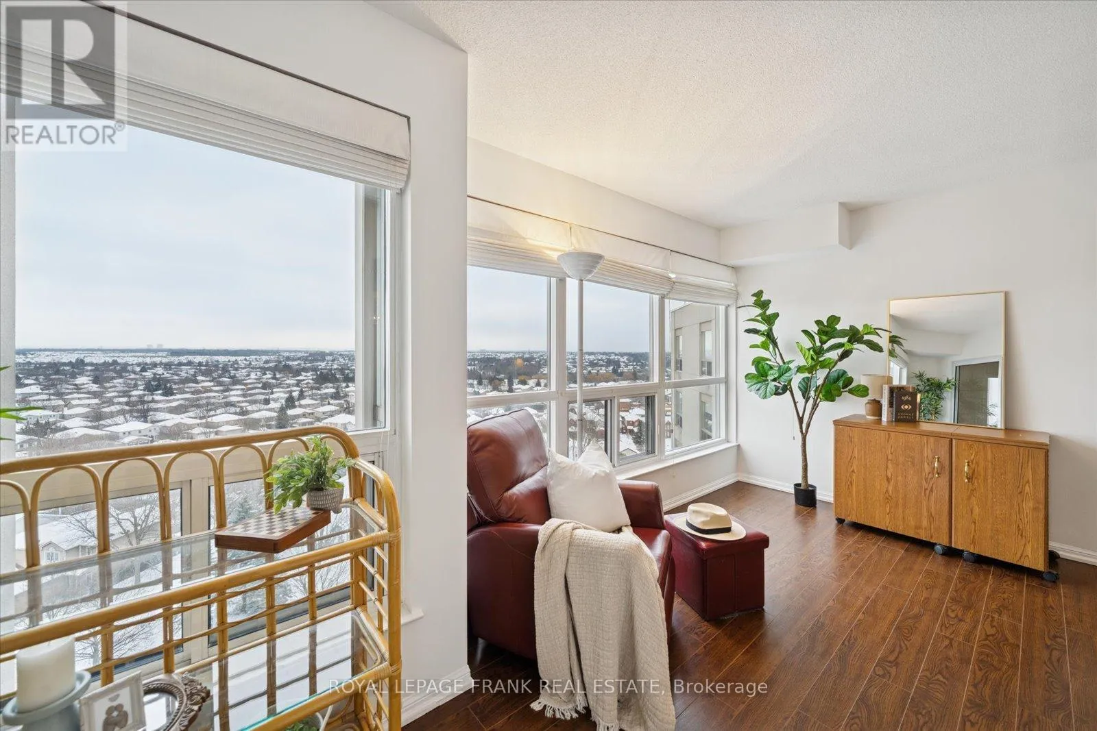 Rossland Rd E & Garden St Welcome to The Connoisseur, one of Whitby's most sought-after high-rise residences. This beautifully updated 1-bedroom penthouse suite features a versatile solarium/sitting area and a spacious, light-filled layout. The open-concept design includes an updated galley kitchen with pass-through, connecting to the separate living and dining areas, ideal for everyday living and entertaining. A generous primary bedroom and updated 3-piece bath offer comfort and functionality, while large windows showcase scenic panoramic north-east views and an abundance of natural light. Complete with two underground parking spaces and a locker, this beautiful suite delivers outstanding convenience. Residents enjoy a full suite of amenities including an indoor pool, hot tub, sauna, fitness room, party room, car wash, and library. (id:27476)
