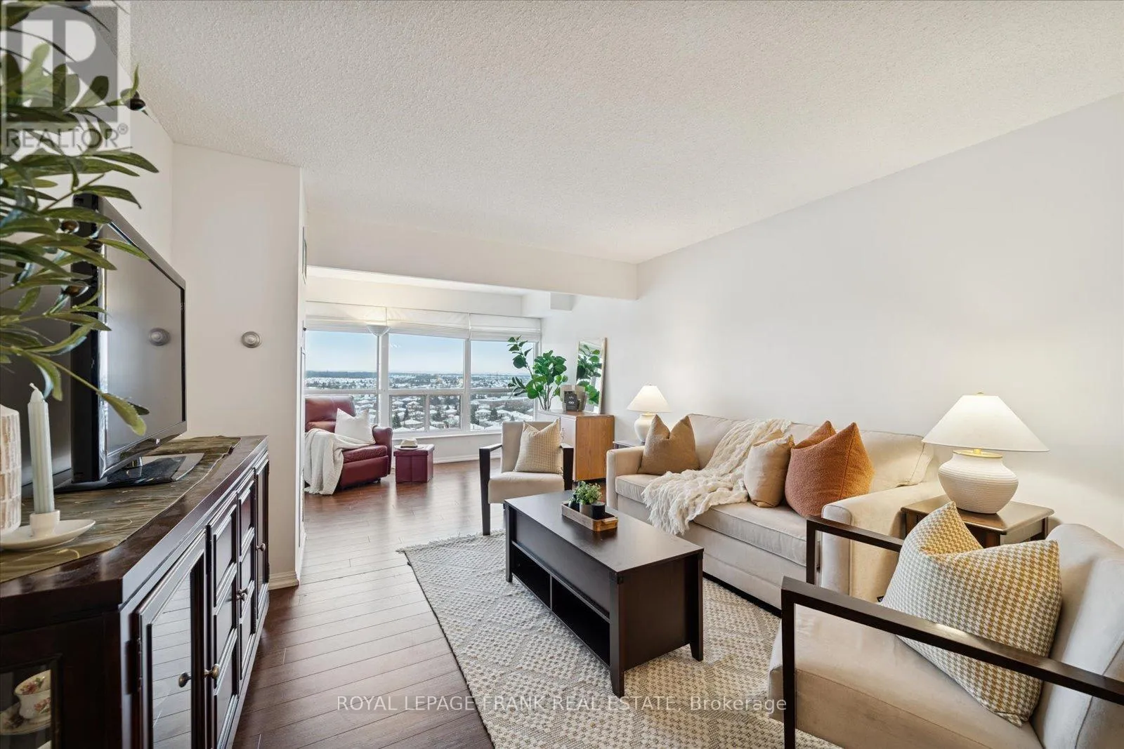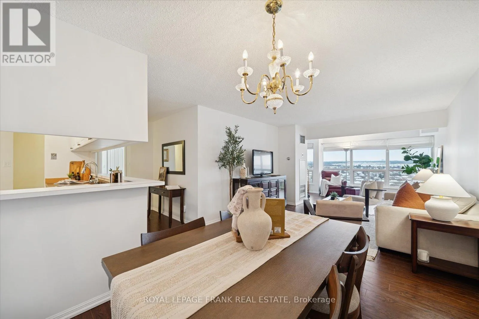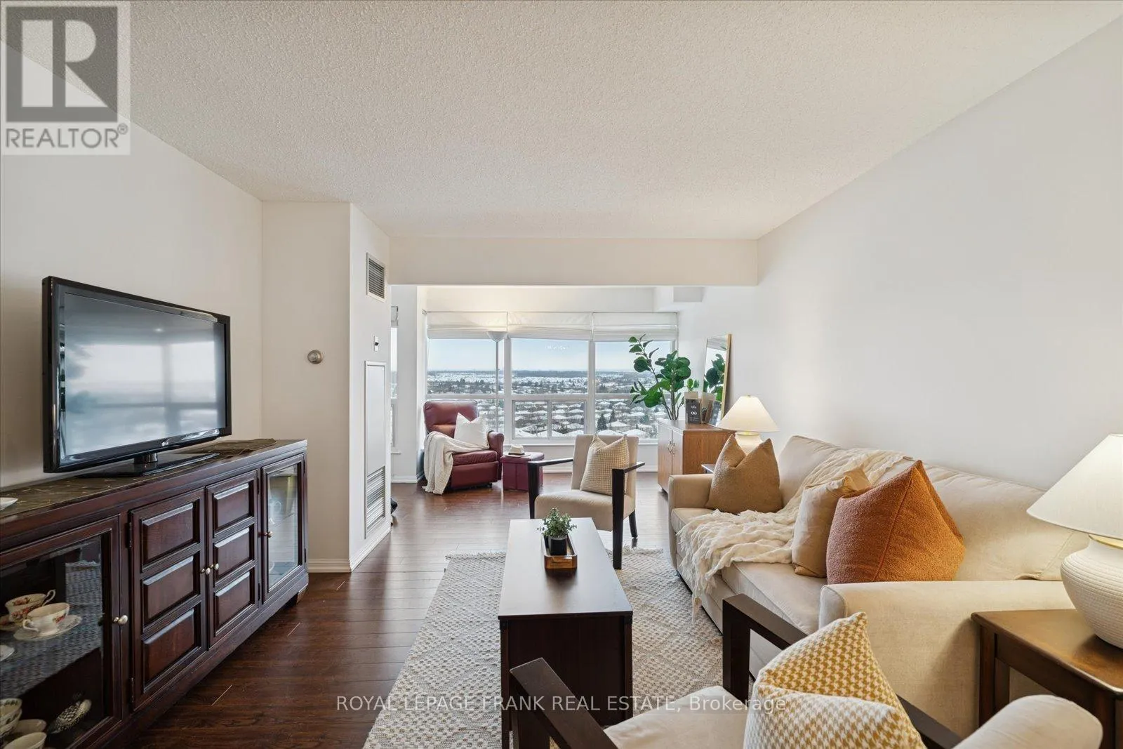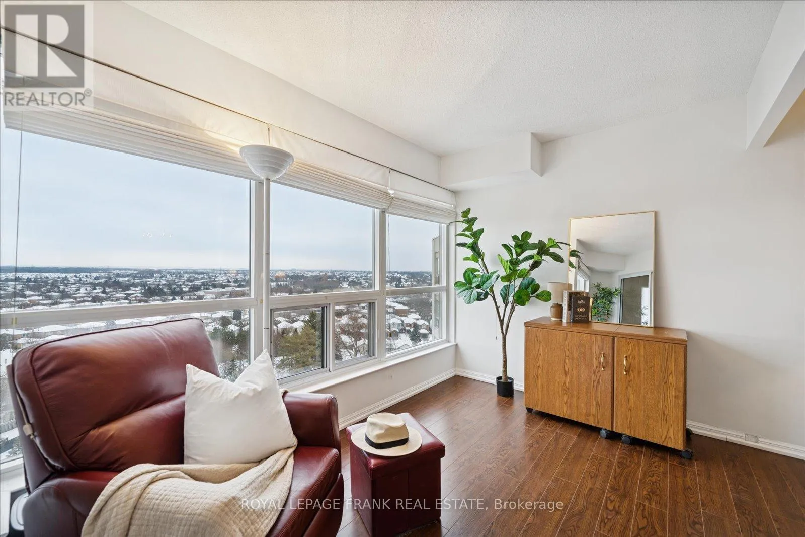 Rossland Rd E & Garden St Welcome to The Connoisseur, one of Whitby's most sought-after high-rise residences. This beautifully updated 1-bedroom penthouse suite features a versatile solarium/sitting area and a spacious, light-filled layout. The open-concept design includes an updated galley kitchen with pass-through, connecting to the separate living and dining areas, ideal for everyday living and entertaining. A generous primary bedroom and updated 3-piece bath offer comfort and functionality, while large windows showcase scenic panoramic north-east views and an abundance of natural light. Complete with two underground parking spaces and a locker, this beautiful suite delivers outstanding convenience. Residents enjoy a full suite of amenities including an indoor pool, hot tub, sauna, fitness room, party room, car wash, and library. (id:27476)