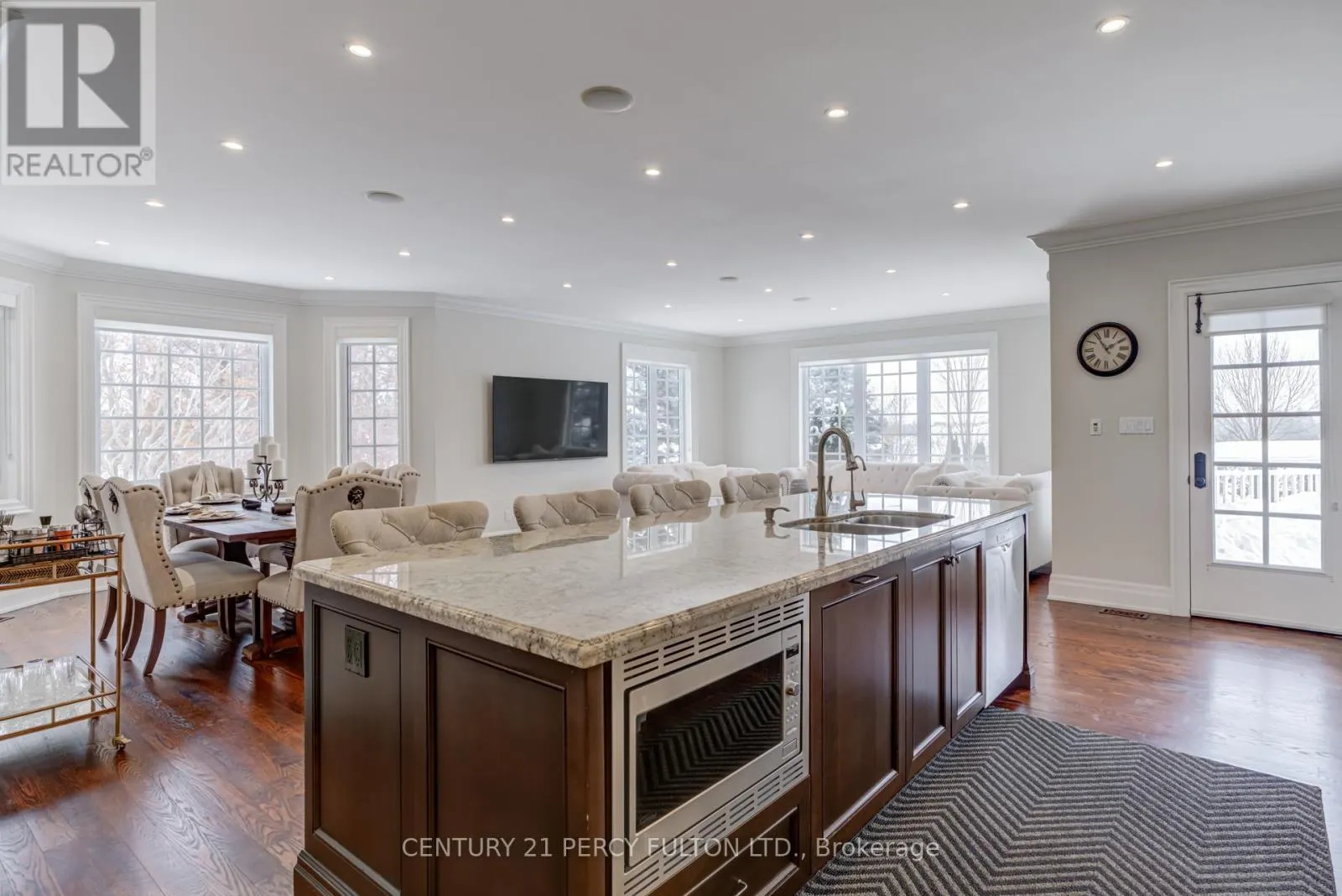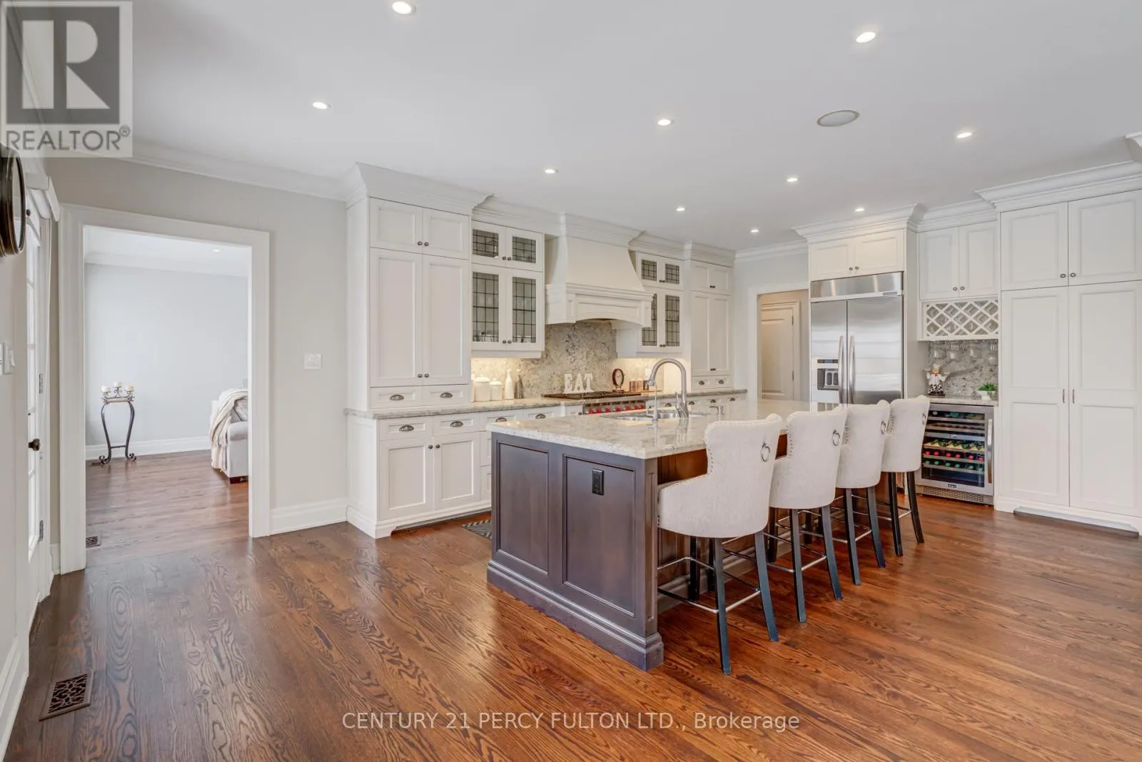 Ashburn Rd And Myrtle Rd W Presented by Andelwood Homes, this 6,067 SF exceptional custom-built bungalow is located in the prestigious Chateaus of Wilson House Drive, tucked away in the quiet hamlet of Ashburn. Set on a beautifully landscaped .80-acre lot, this executive residence offers refined craftsmanship, architectural detail, and 9-FT ceilings on both the main and lower levels. The main level showcases seamless stained red oak hardwood flooring, Carrara marble tile in the foyer, crystal chandeliers, coffered ceilings, and extensive custom millwork throughout. The open-concept layout combines the kitchen, breakfast area, and family room, creating a bright and functional space ideal for everyday living and entertaining. The gourmet chef inspired kitchen features granite countertops and backsplash, professional-grade appliances including a 36" Wolf gas range, custom island with breakfast bar, built-in refrigerator, beverage centre, and French doors leading to the upper deck with gas BBQ hookup. The family room is anchored by a sleek gas fireplace with marble surround and overlooks the private backyard through French-style windows. The main level also includes a spacious primary retreat with seating area and a luxurious ensuite, along with additional well-appointed living spaces. The professionally finished walkout lower level extends the home's versatility with high ceilings, large windows, an expansive entertainment area with custom bar, additional bedrooms, and direct access to the interlock patio and garage-ideal for guests, recreation, or multi-generational living. Additional highlights include a 4-car garage with multiple access points, whole-home surge protection, hard-wired gas generator, owned security system, irrigation system, upgraded mechanicals, and built-in surround sound system throughout. A rare offering in one of Durham Region's most sought-after executive communities. (id:27476)