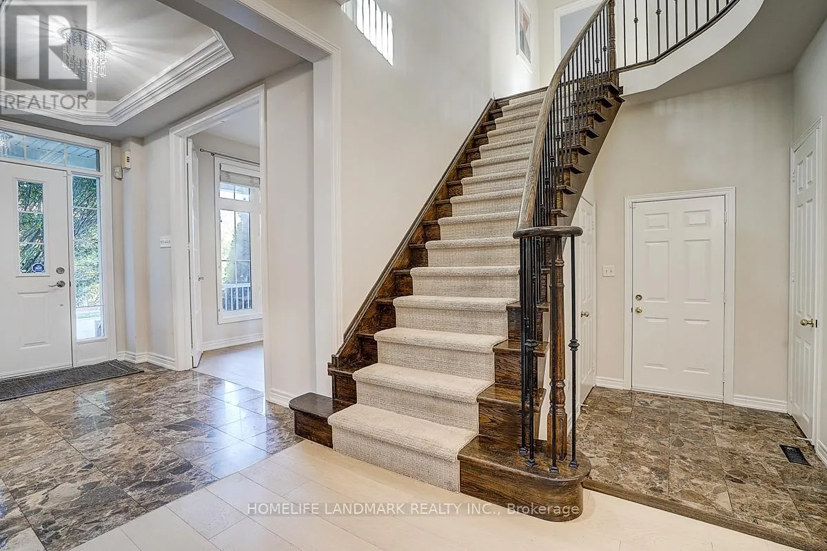 Montgomery & Vanguard Stunning home in desirable Brooklin! Freshly painted, carpet free & showcasing brand new hardwood floors. Main level features a soaring family room with cathedral ceiling & gas fireplace, elegant dining room with coffered ceiling, and pot lights throughout. Chefs kitchen with quartz counters, custom backsplash, tall cabinets, pantry, 2 built-in Jenn-Air ovens, 6-burner gas cooktop & warming oven. Upstairs offers spacious bedrooms, each with ensuite. Primary retreat boasts W/I closet & spa-like 5pc ensuite. Professionally finished basement includes a large rec room with wet bar & granite, exercise room & 3pc bath. Move-in ready and a true must-see! (id:27476)