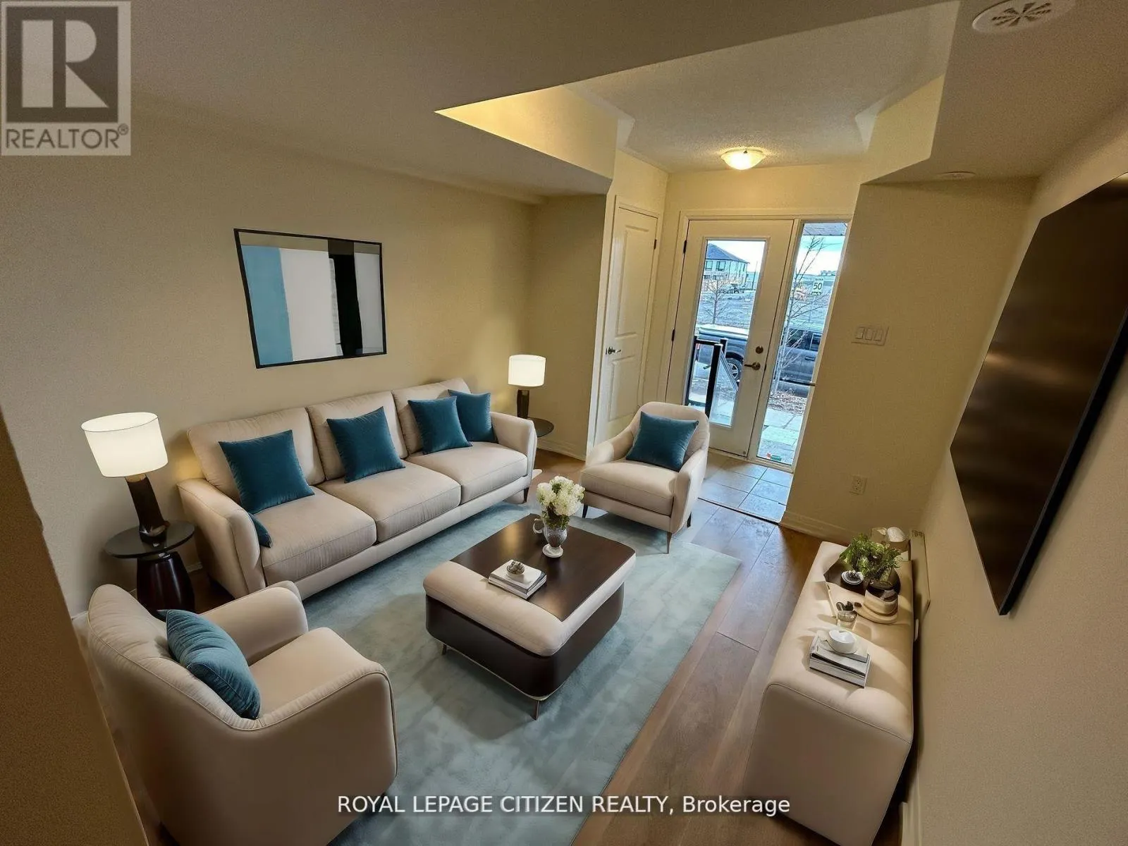 Garden St And Taunton St This Stunning newer townhome is just steps from trendy restaurants, takeout options, Farm Boy, LA Fitness, shopping, and transit in the heart of Whitby, nestled in the newest subdivision, Emma's Way. The home boasts 2 bedrooms and a modern layout, featuring a balcony off the great room as well as another off the primary bedroom. Enjoy 9-foot smooth ceilings on the main floor and luxury vinyl laminate flooring throughout. The kitchen includes an island with quartz countertops, and there's a recreation room on the ground floor. Additionally, it offers a convenient garage with direct access to the home and central air conditioning. (id:27476)