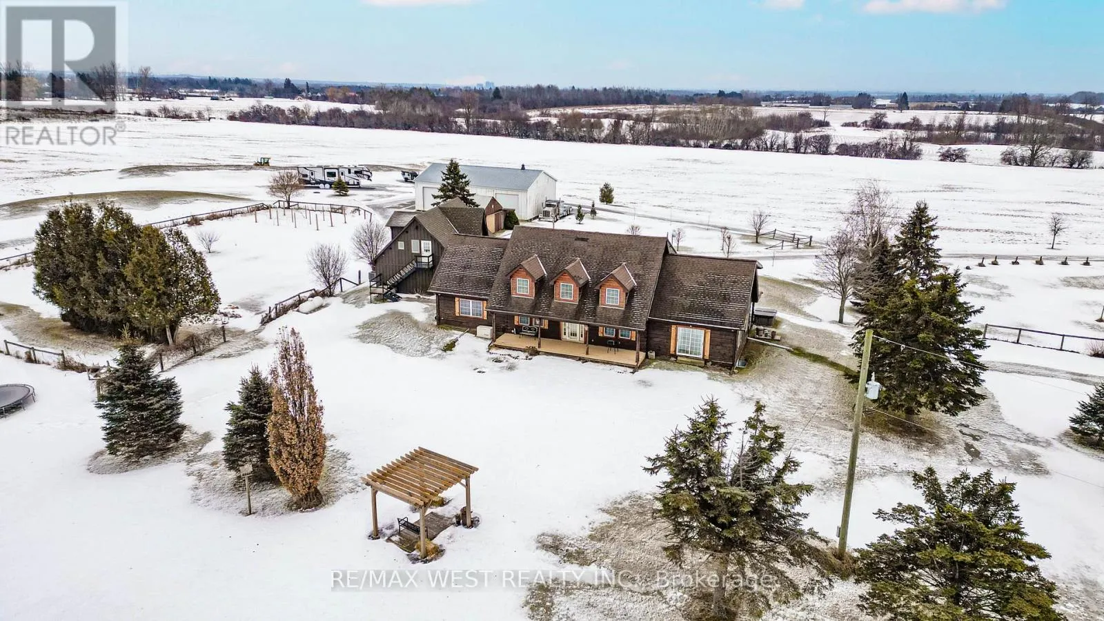 Cross Streets: Myrtle Road and Townline. ** Directions: Hwy 12 North to Duffs Road, Continue to 9695. Amazing Opportunity 4 the Right Buyer Unique, Custom Log Home North of Brooklin 40+ acres of Beautiful Country Property Share incredible sunsets w/ family & friends splashing in the IG pool or w/a glass of Wine or Cappuccino on 1 of the many patios or decks Pass the stone gates & follow the driveway meandering to the Main Hse & 3 car garage Indoor/outdoor prkng for 20+ vehicles Tons of space 4 toys or eqpmnt Enter the Main Hse 2b greeted by impressive exposed Log Beams, solid natural wood & quality finishes Spend holidays, long wknds or life's celebrations w/ loved 1's & fill your cup on a regular basis in a warm & inviting atmosphere Prep meals in the custom kitchen & you are bathed in natural light thru a myriad of windows & sliding glass WO's The Great RM w/ sliding glass WO & LG windows continues bringing nature inside, 2 other formal rms on the MF provide family w/ lots of options The 2nd floor has 4 bdrms & 3 bthms Primary w/ LG windows allows you to view sunsets cozied up, under the cathedral ceiling w/ exposed beams A fabulous 5pc ensuite, soaker tub, dual vanity w/ Live Edge counter & heated flooring Bdrm 2 is equipped w/ a 4pc bth & WI closet Bdrm 3 & 4 offer numerous closets & cute Dormer windows There is a 5 th bdrm in the bsmnt & a 3pc bth Heading to the heated 3 car garage there is a new 2 bdrm accessory apartment above, It is a must see, remarkable panelled cathedral ceilings w/ exposed beams, an open concept Great RM & kitchen a luxurious bthrm & laundry closet The property also features a 14x26 Garden Shed a 60x40 Barn/Workshop w/ Oversized Drs The Owner has installed 2, 50 amp RV parking plots w/ septic A GeoThermal closed loop HVAC system, Generac back-up electrical system, Rolling Hills & a 34 Acres Hay Field provide the property w/ tons of options 4 the future. Walking & Bike trails cut through the small wooded section on the North side of the property What an incredible opportunity to create future memories w/ your Family. (id:27476)