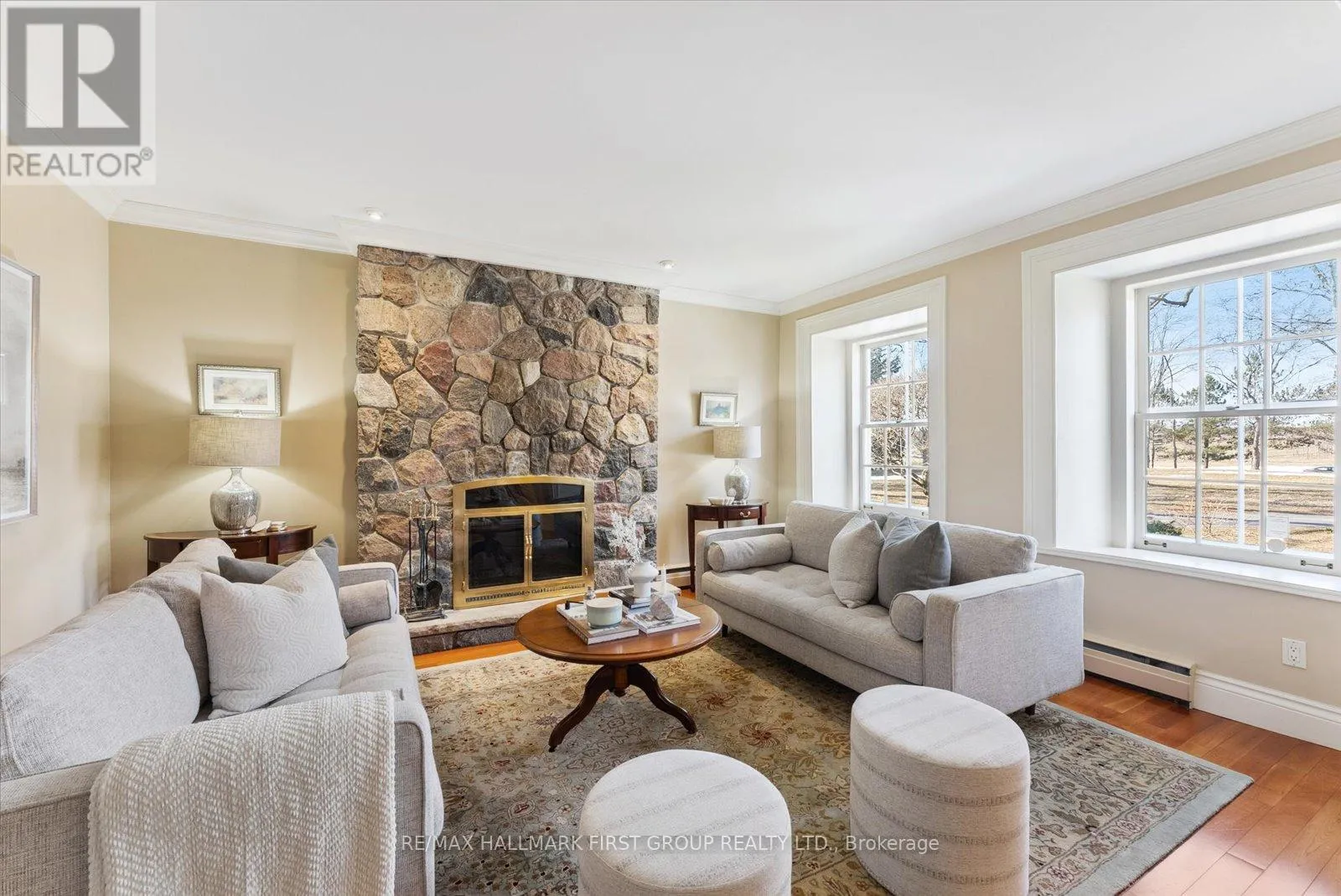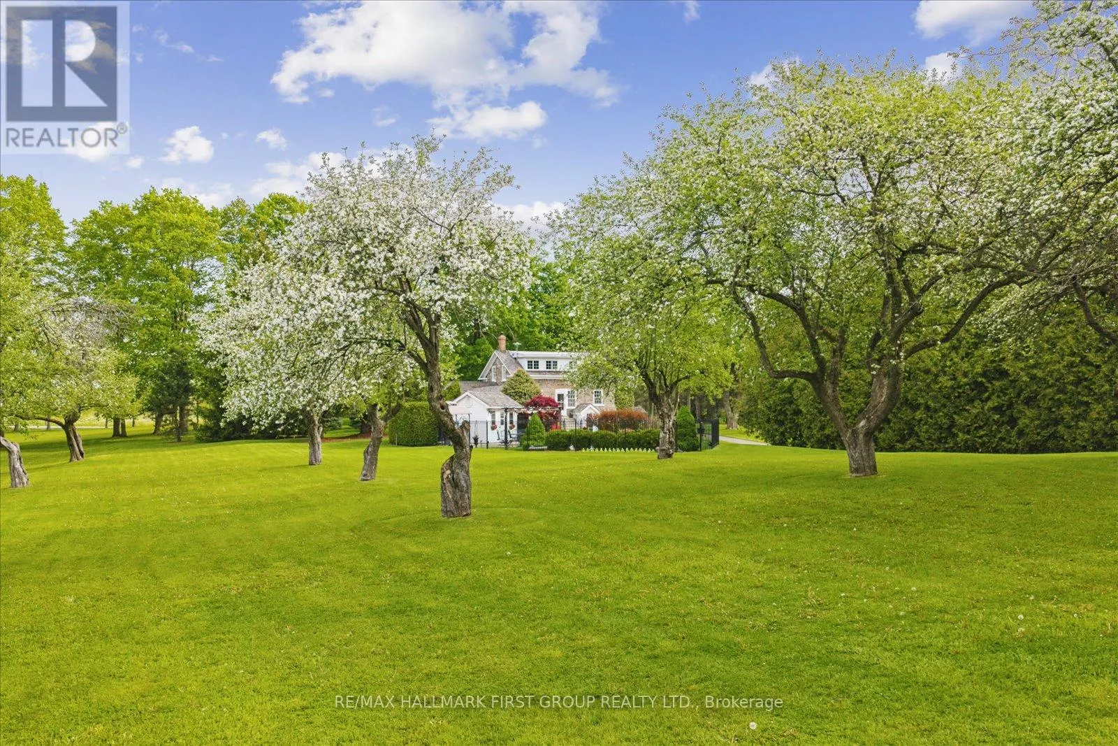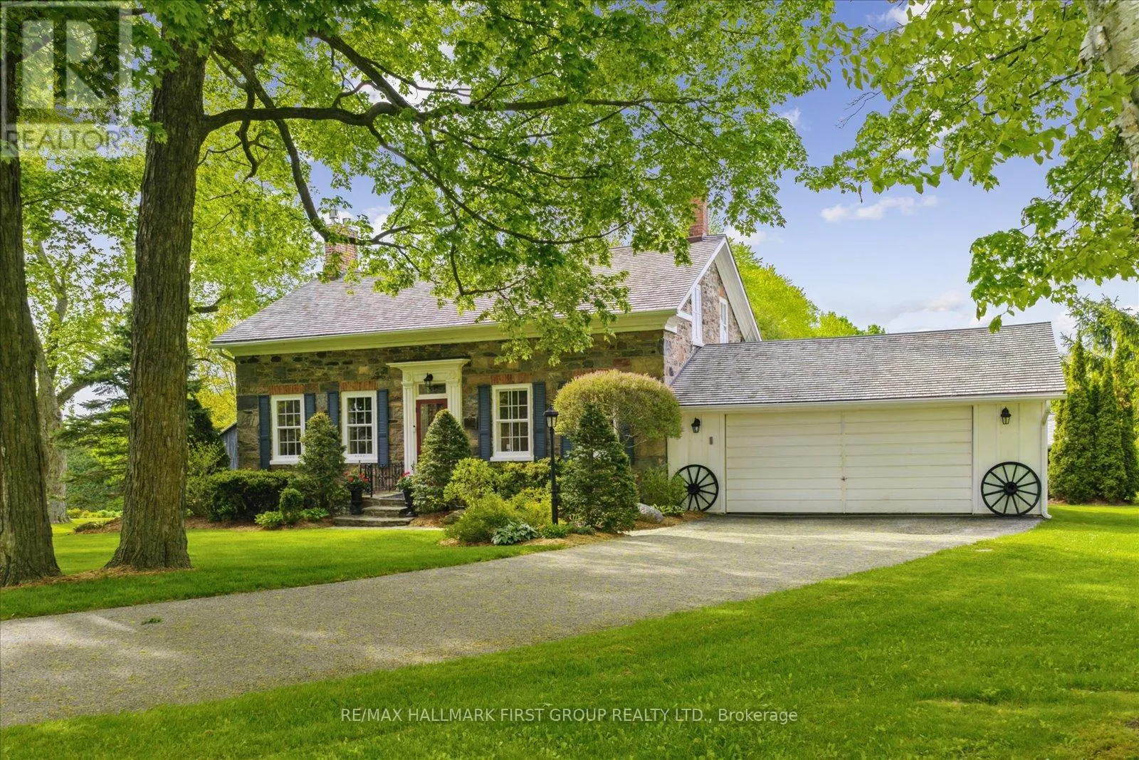 Ashburn Rd & Myrtle Rd W Welcome to Stone Eden-a place where timeless character and intentional living come together.Set on 10.87 rolling acres in the quiet countryside of Ashburn in Whitby, this remarkable property and home is a legacy meant to be lived in and cherished.From the moment you pass through the custom wrought-iron gate, a sense of calm settles in. The winding private drive leads you past two serene ponds, a mature apple orchard, and a heated in-ground pool, each element adding to the estate's rare privacy and natural beauty. A 37' x 28' barn enhances the possibilities-ideal for equestrian use, a hobby farm, creative workspace, or flexible storage.At the centre of the property stands the original hand-crafted stone residence, meticulously restored and updated to honour its heritage while offering modern comfort. Sunlight fills the inviting living and dining rooms, where warm hardwood floors and a gas fireplace set the tone for family gatherings and quiet evenings. The kitchen blends charm with functionality, featuring built-in appliances, a gas cooktop, and heated floors.The main floor also includes a sophisticated office with custom built-ins, perfect for focused work or study. Upstairs, four well-appointed bedrooms provide space and flexibility for families, guests, or multi-generational living. The finished walk-up basement adds yet another dimension, offering a stylish bar, gas fireplace, and a spacious area for relaxing or entertaining. Every detail of Stone Eden reflects pride of ownership-from the cedar roof (2020) and MagicWindows to the curated gardens and thoughtfully maintained trails. This is a property where history is preserved, nature is celebrated, and future memories are waiting to be made.Whether you're seeking a peaceful retreat, a multi-generational haven, or a place to fully embrace country living without compromise, Stone Eden invites you in. A truly rare and extraordinary opportunity. (id:27476)