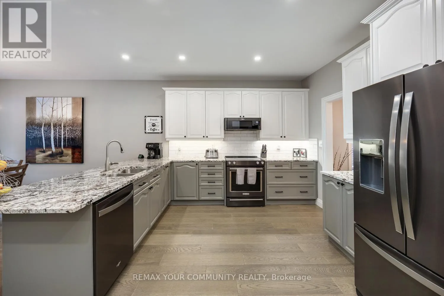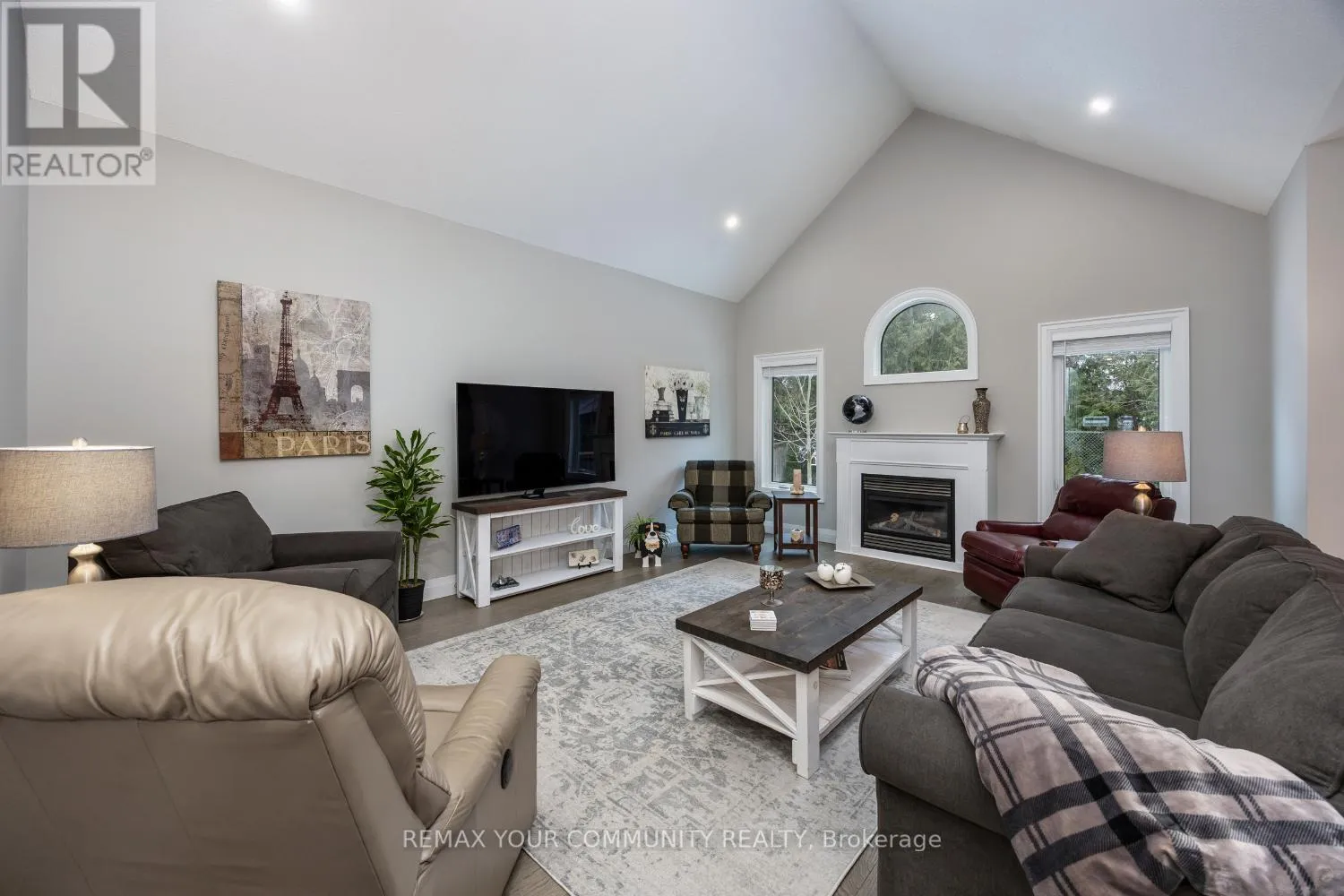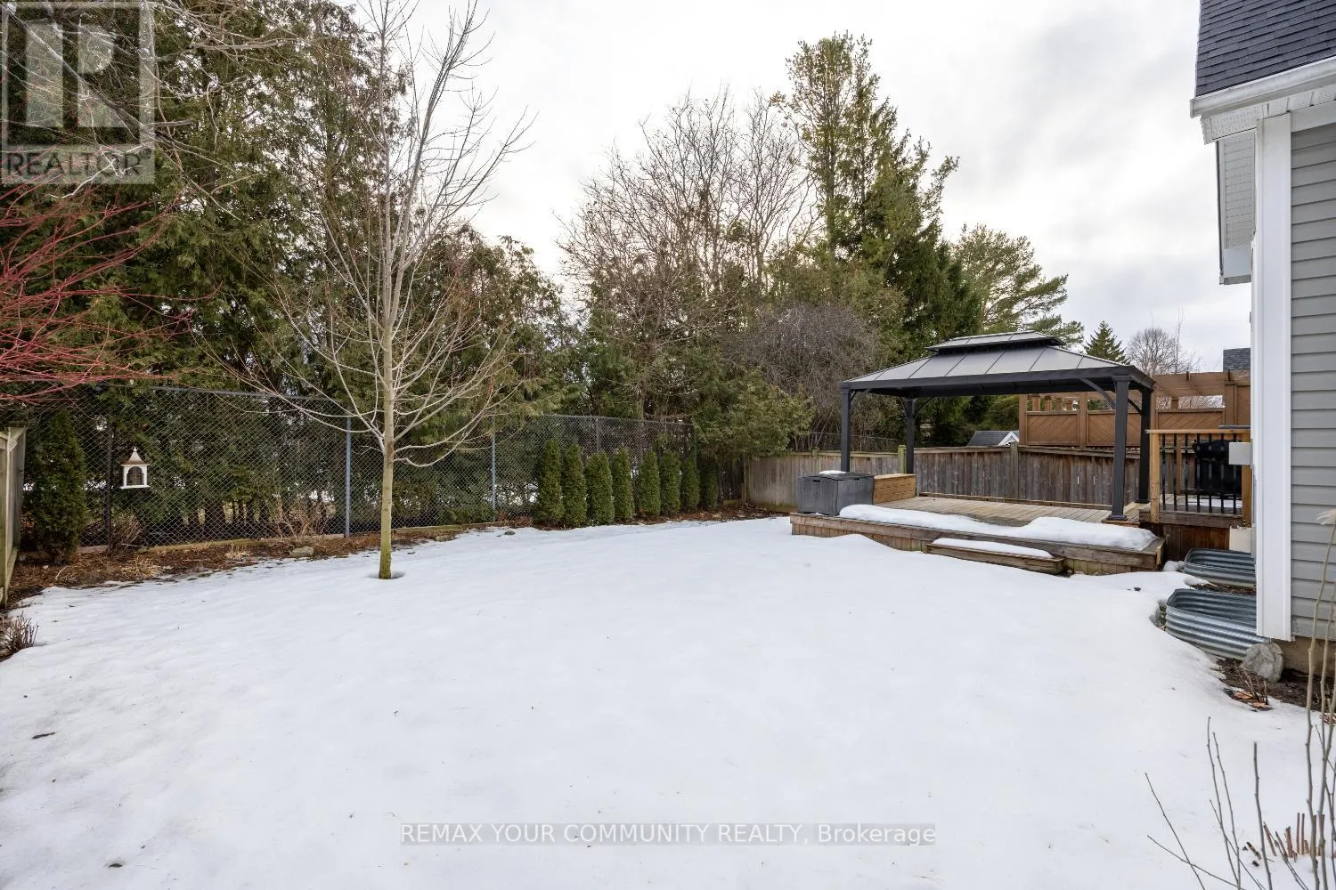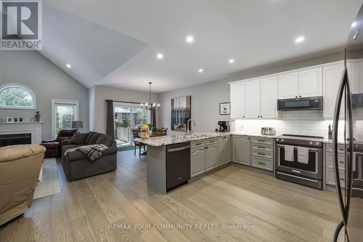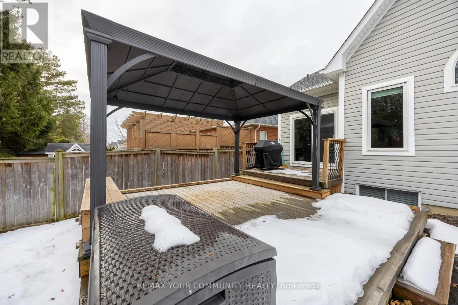 Carnwith Dr+Baldwin St Stunning bungalow with a crescent location in the heart of Brooklin offers close proximity to sought after schools, public transportation, major highway arteries (407/412) for commuters and still a gentle stroll from this home to Brooklin shops, restaurants and parks. This home features a private fenced backyard with manicured lawn, inground irrigation, newer large deck with gazebo and professionally landscaped front yard and walkway. The open concept design features great room with cathedral ceiling overlooking south facing yard with a walkout from the breakfast room. The adjoining renovated family size kitchen with large pantry features granite and engineered wood flooring for comfort. The main floor further offers a large master with walk-in closet and 5-piece ensuite, and the second bedroom overlook the front gardens. Two further large bedrooms are located on the lower level with additional bathroom. The large family room with gas fireplace is ideal for family living and entertaining. Come and enjoy. (id:27476)
