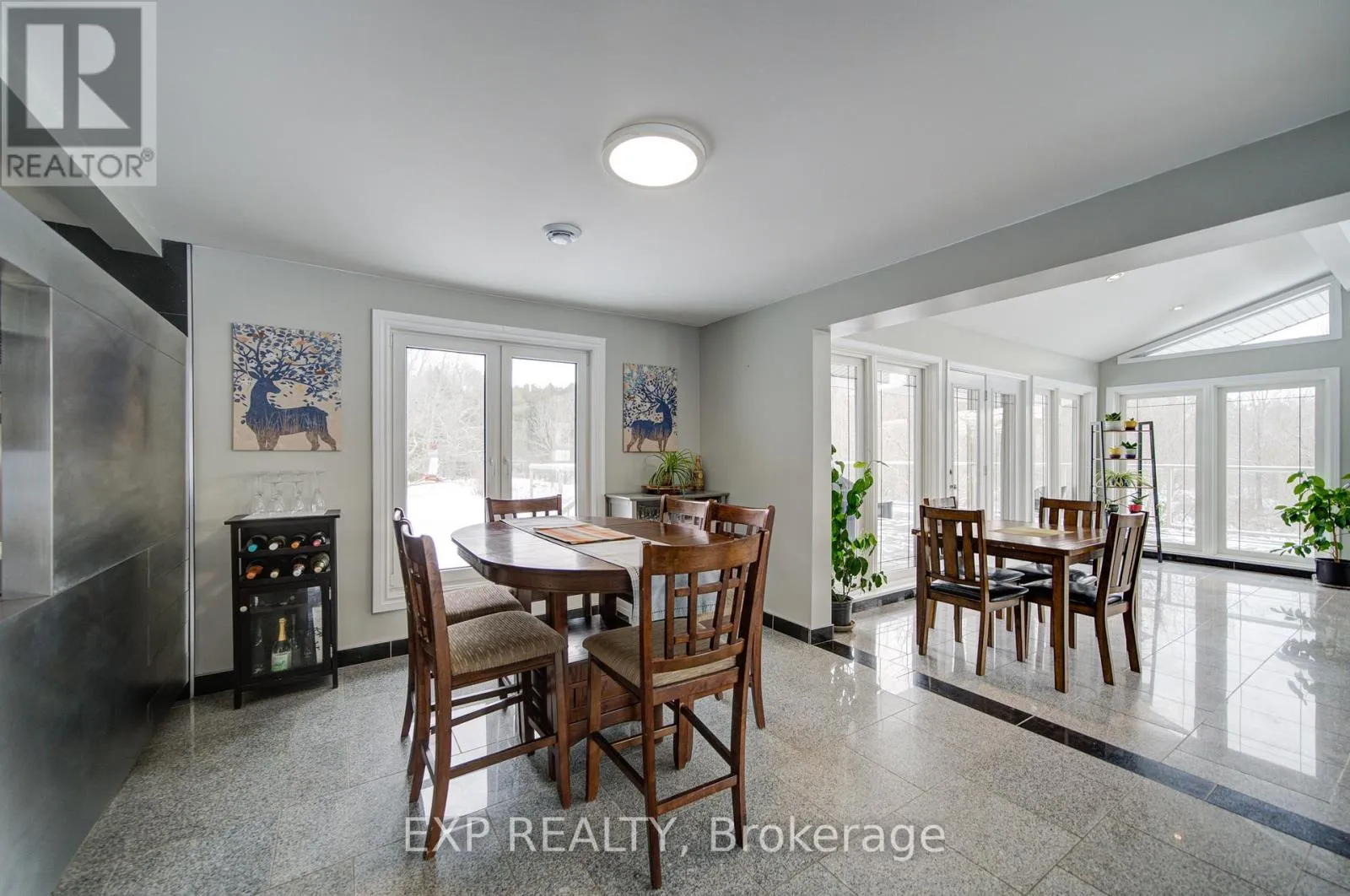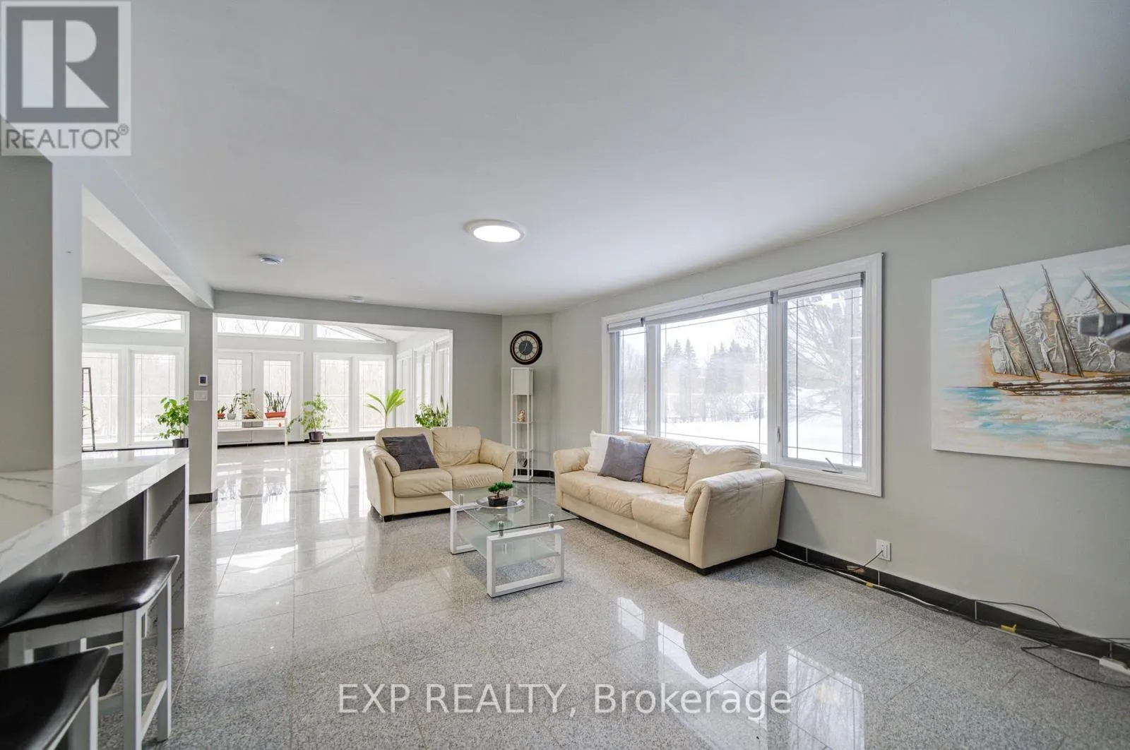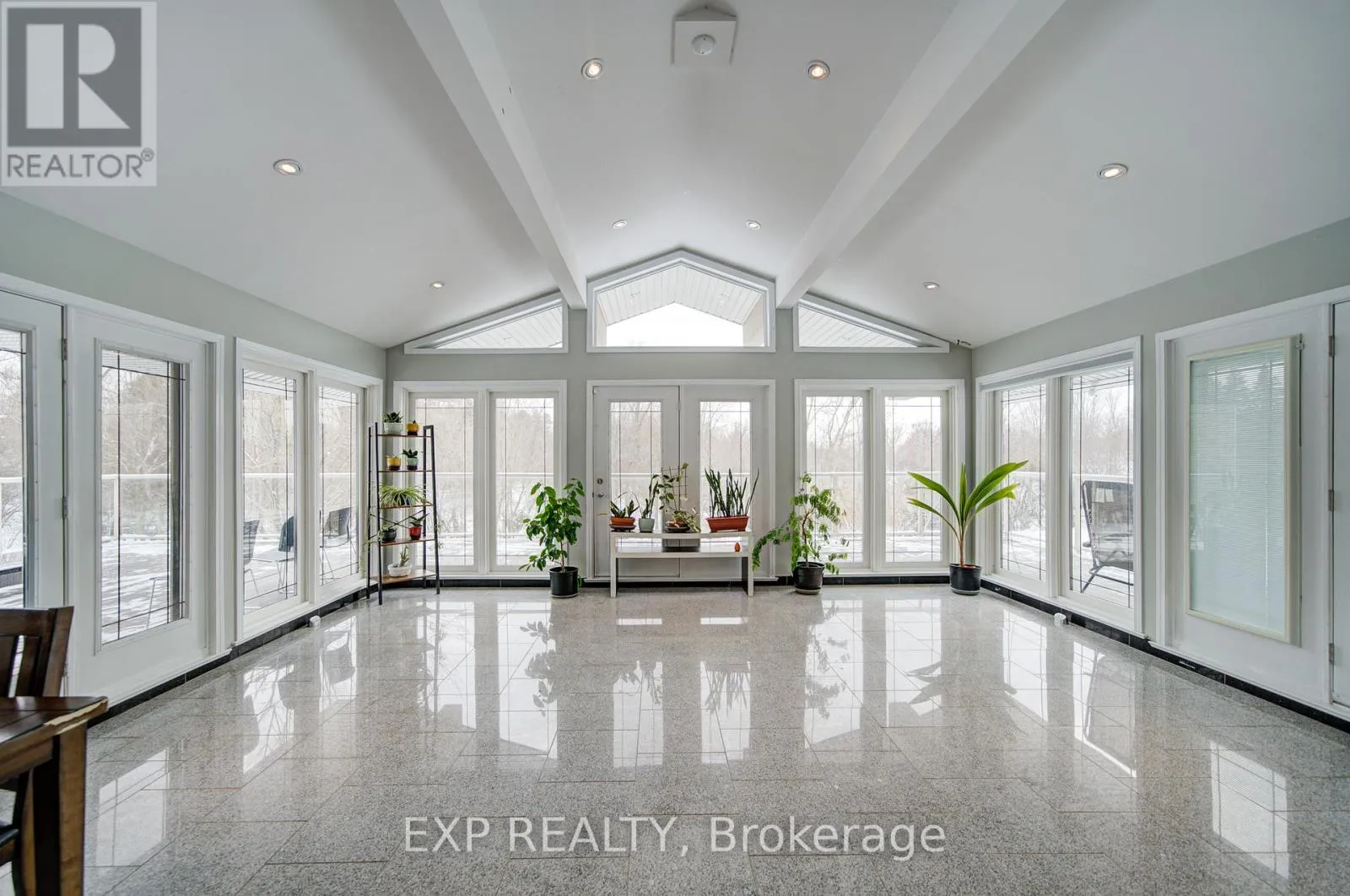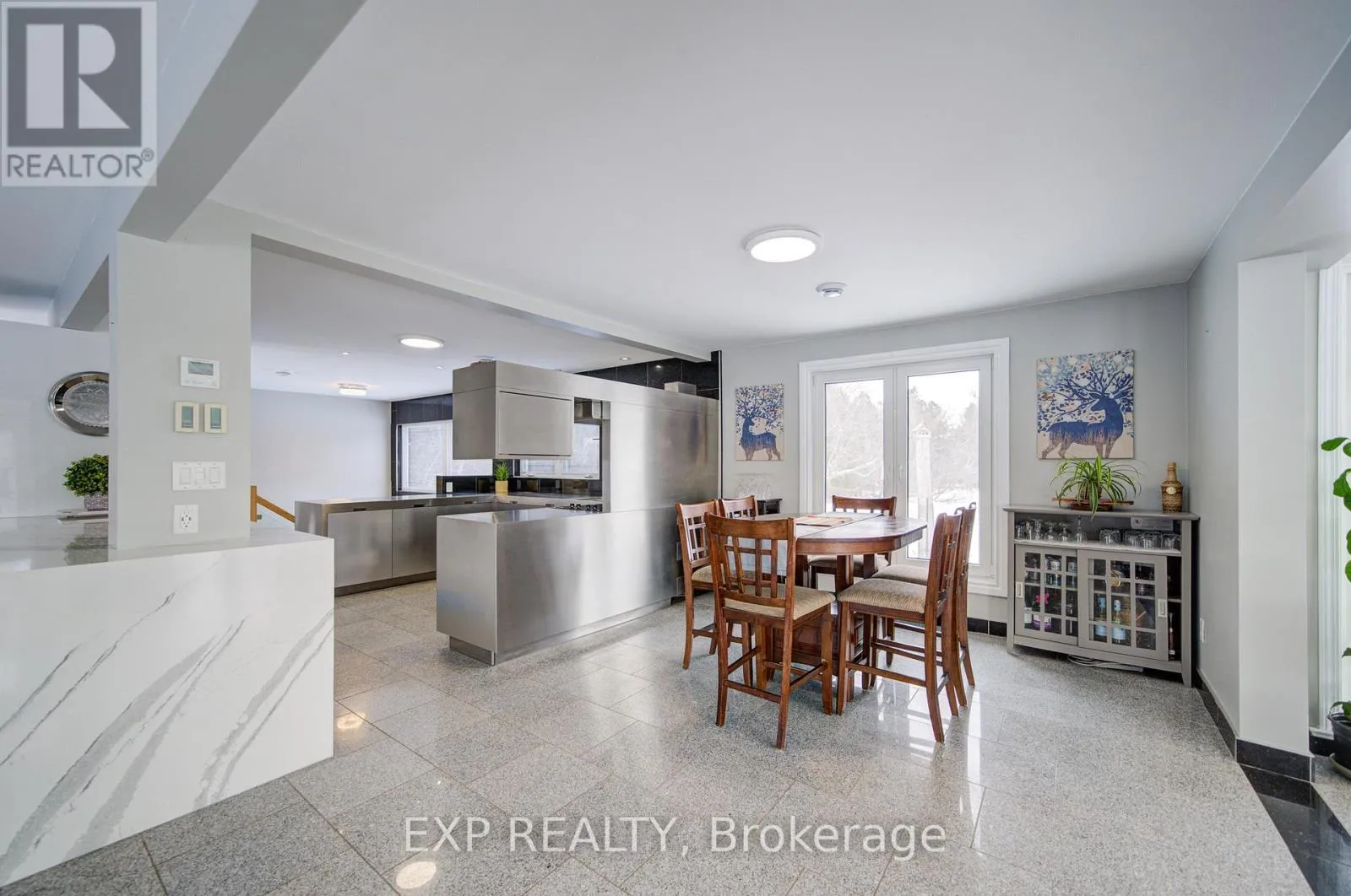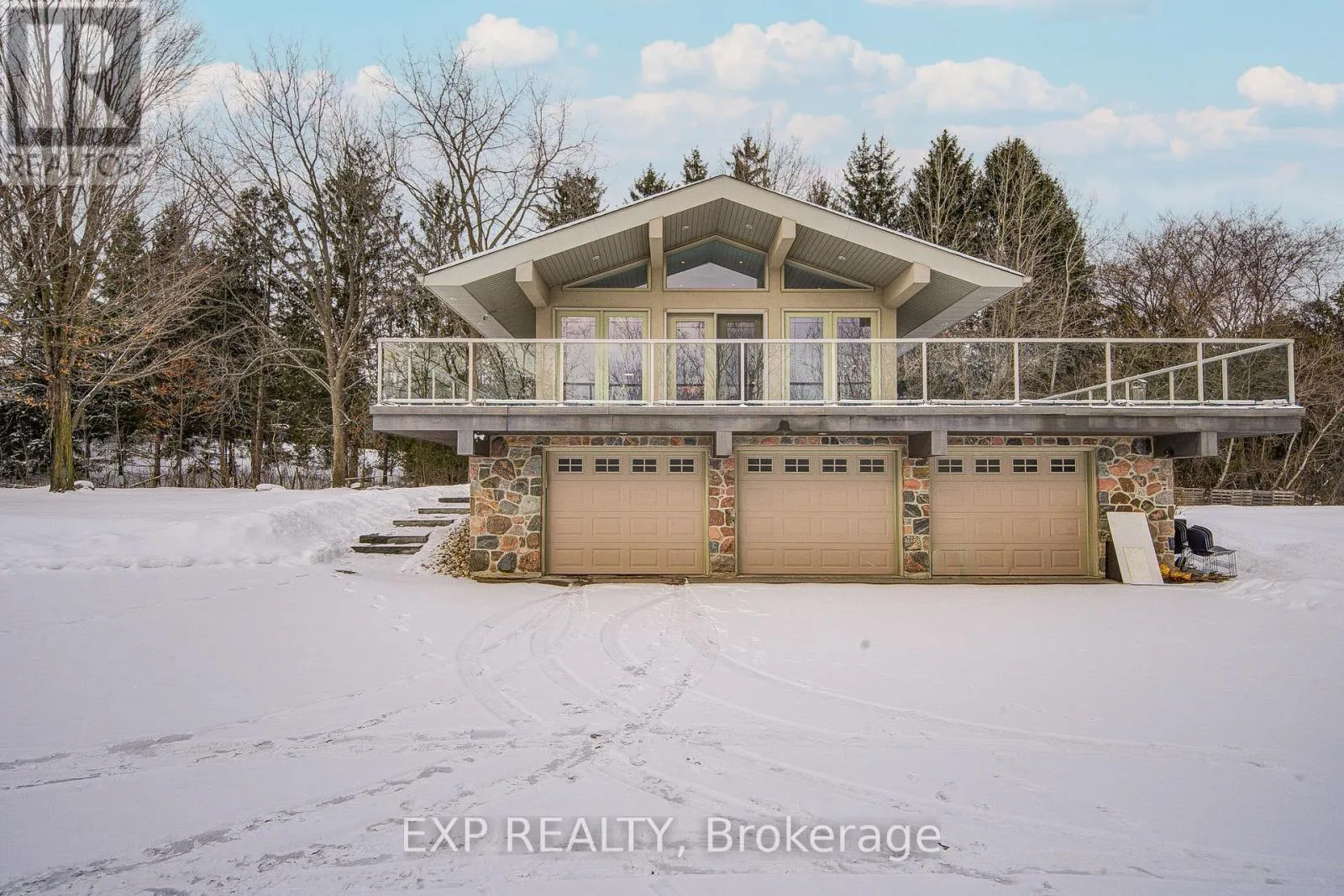 Rosland Rd W and Cochrane St Welcome To A Rare 1.9 Acre Estate Nestled In The Prestigious Williamsburg Neighbourhood Where Luxury Meets Serenity *This Uniquely Designed 2+3 Bed, 2-Bath Home Offers Stunning Floor-To-Ceiling Windows, Vaulted Ceilings, Radiant Heated Floors, And A Showstopping Sunroom Wrapped In Natural Light *The Chef's Kitchen Boasts Sleek Stainless Steel Finishes Ideal For Culinary Enthusiasts *A Striking Double-Sided Stone Fireplace Anchors The Open Living Area While The Expansive Wraparound Deck Offers Panoramic Views Of Mature Trees And A Flowing Creek With No Neighbours On One Side For Unmatched Privacy * The Lower Level Presents Rental Or In-Law Suite Opportunities *Enjoy A Peaceful Retreat Moments From Schools, Parks, And Urban Amenities. (id:27476)