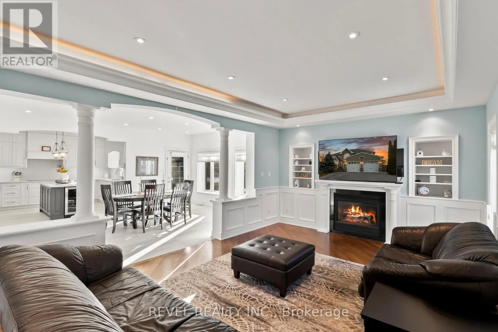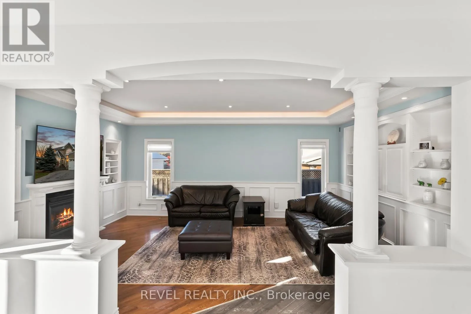 Thickson Rd & Applewood Ave A beautiful custom residence offering 2897 sqft of refined living space, perfectly situated on a quiet cul-de-sac in the highly desirable Blue Grass Meadows community. Thoughtfully designed with over $150,000 in premium upgrades, this home blends timeless craftsmanship with modern elegance to create a warm, sophisticated living experience. Step inside to soaring 18' ceilings in the foyer, an opulent chandelier and porcelain tile floors flowing seamlessly into a cozy living room complete with a gas fireplace, custom built-in shelving, and illuminated ceiling features. The chef-inspired kitchen stands at the heart of the home, offering generous prep space, quartz countertops, quality cabinetry and high end appliances. The sun-filled dining space provides direct access to the backyard patio, overlooking the mature gardens, offering a perfect setting for entertaining and peaceful evenings at home. Upstairs, you'll find three generously sized bedrooms, perfect for guests, children or a dedicated home office. The spacious primary bedroom includes a spa-like 4-piece ensuite and walk-in closet. A convenient second-floor laundry room enhances everyday living and can easily be converted back into a fourth bedroom if desired. This home features a two-car garage, landscaped grounds, and a full irrigation system for low-maintenance up keep. This is a rare opportunity to own a meticulously maintained custom home in an established neighbourhood loved for its quiet streets, strong community feel, and proximity to parks, schools, and major amenities. A residence that offers quality, comfort, and enduring design ready to be enjoyed for years to come. (id:27476)