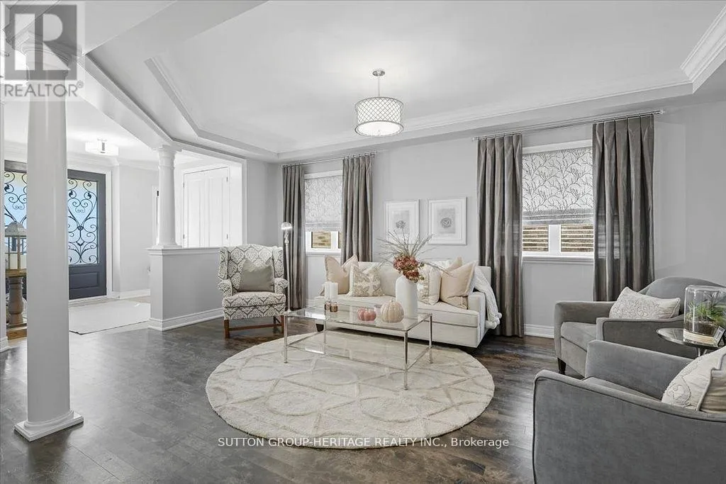 Cross Streets: Thickson / Taunton. ** Directions: Thickson/Tauntom. Beautifully crafted Highmark Home - four-bedroom, four-bathroom residence in one of Whitby's most exclusive neighbourhoods. Curb appeal is undeniable with a timeless brick and stone exterior, an asphalt driveway framed with tumbled stone pavers, new garage doors, and thoughtfully designed perennial gardens enhanced by maturing trees including columnar oak, spruce, and a Japanese maple. The fully fenced backyard is ideal for entertaining with a custom deck, pergola, and shed, while natural gas connections for both a barbecue and fire table make it the perfect space to gather year-round. An in-ground sprinkler system ensures the grounds are easy to maintain. Inside, the home showcases elegant details and functional design. The main floor features hardwood flooring throughout, extending up the hardwood staircase and across the upper hallway. Soaring nine-foot ceilings and extended eight-foot doors and doorways enhance the sense of space, while coffered ceilings in the living room and family room add architectural character. The kitchen is both stylish and practical, complete with quartz countertops, pantry, double sink with garburator, pot lights, pendant lighting, and a breakfast bar. The mudroom, with direct access to the garage, offers excellent storage and organization for busy households. Upstairs, the primary suite provides a private retreat with a large walk-in closet and a luxurious five-piece ensuite. The second bedroom includes its own four-piece ensuite, while the third and fourth bedrooms share a spacious five-piece Jack-and-Jill bath. Modern conveniences include electric vehicle readiness with a 240V outlet and breaker space for a level two charger. Located close to Highway 407 for easy commuting, and minutes to schools, parks, and shopping, this home offers the perfect blend of luxury, convenience, and community living. Detailed features room by room is attached. (id:27476)