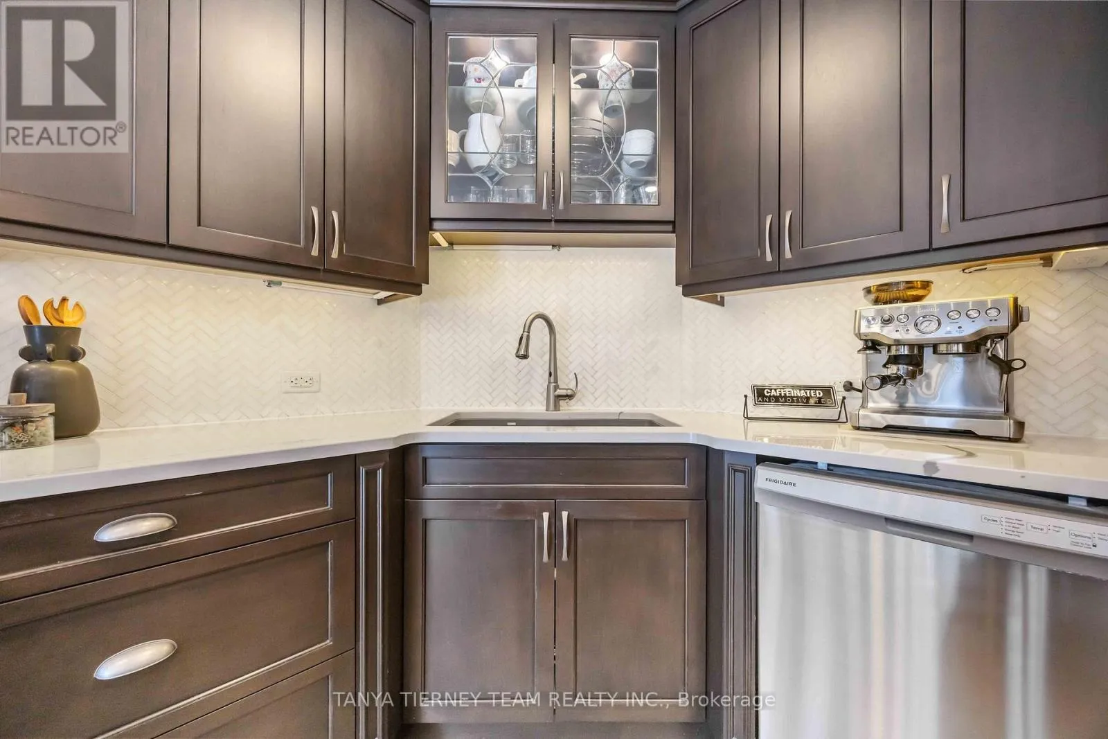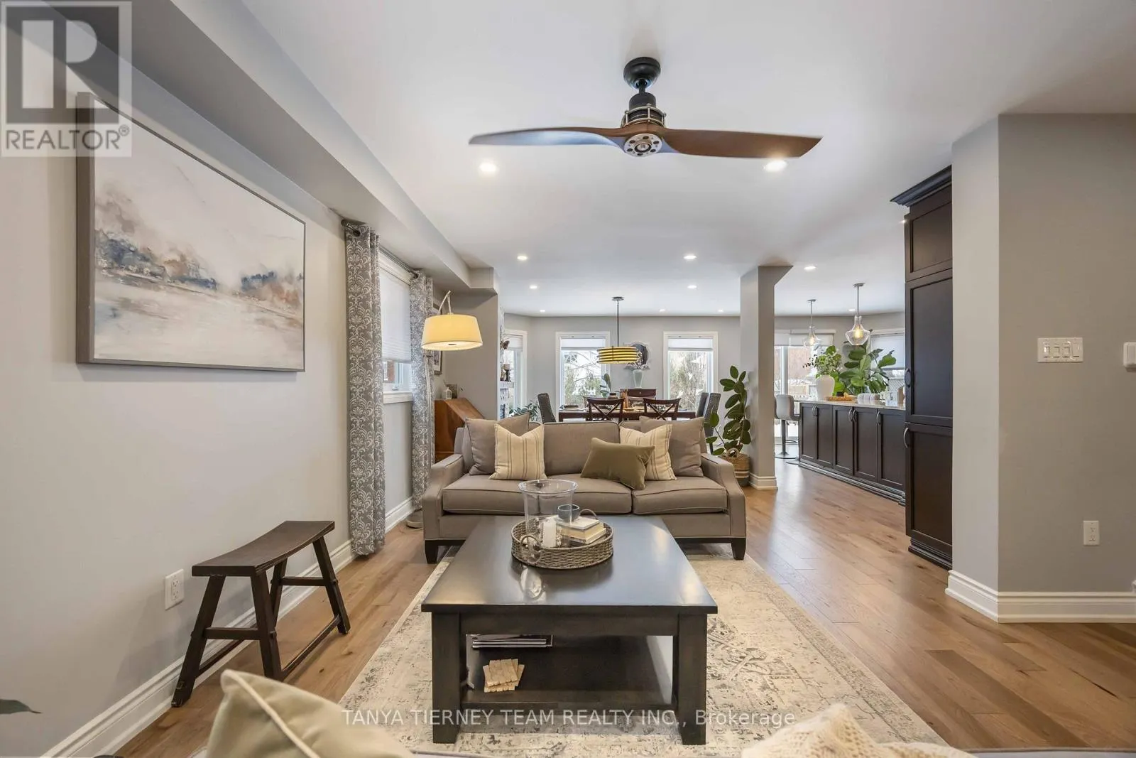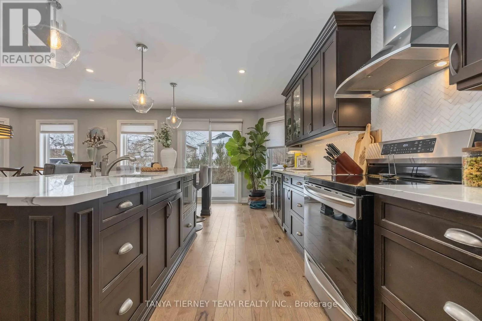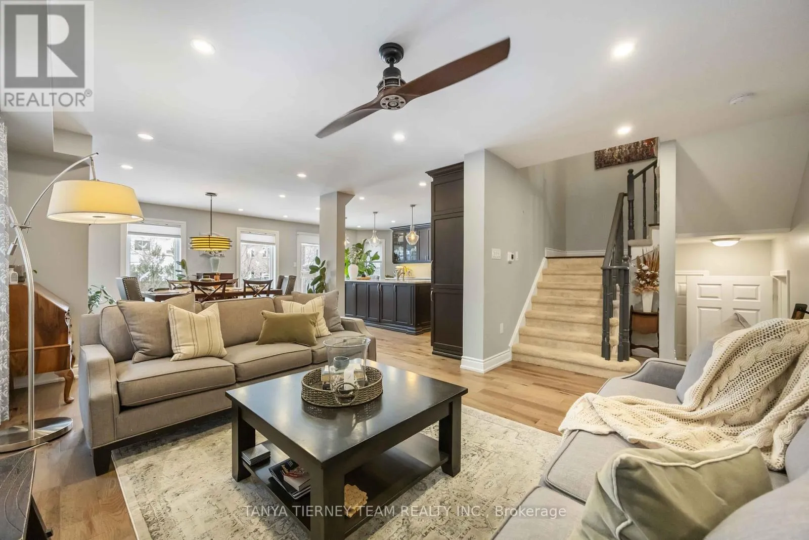 Whitby Shores Greenway & Four Winds This stunning Baycliffe-built Disney Wonder model offers approximately 2,070 sqft of beautifully updated living space with a custom open-concept floor plan designed for modern living! The professionally redesigned kitchen is the heart of the home, featuring an impressive 11-foot quartz island with seating, two sinks, custom cabinetry, under-cabinet lighting, and premium finishes throughout. The main floor has been fully redesigned with smooth ceilings and pot lights, creating a bright and elegant atmosphere. Hardwood flooring extends throughout the main and second floors, including all four spacious bedrooms. The primary suite features a walk-in closet, luxurious 4-piece ensuite complete with a relaxing soaker tub and balcony to enjoy your morning coffee in peaceful surroundings overlooking the beautifully landscaped front gardens. This home offers four bedrooms and three bathrooms, with numerous professionally renovated spaces including the main bathroom with double sinks, updated powder room, and renovated laundry room. The professionally finished basement is ideal for entertaining and relaxing, showcasing a wet bar, pot lights, large recreation room, and a dedicated exercise area with french doors. Additional highlights include new garage doors '26, closet organizers in bedrooms, and exceptional attention to detail throughout. Nestled in the demand Port Whitby community, steps to schools, parks, shops, scenic waterfront trails, Iroquois Sports complex, GO Train & hwy 401 access! (id:27476)