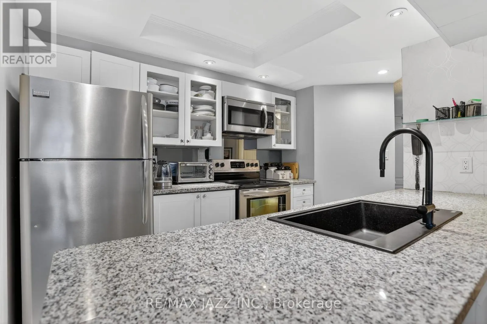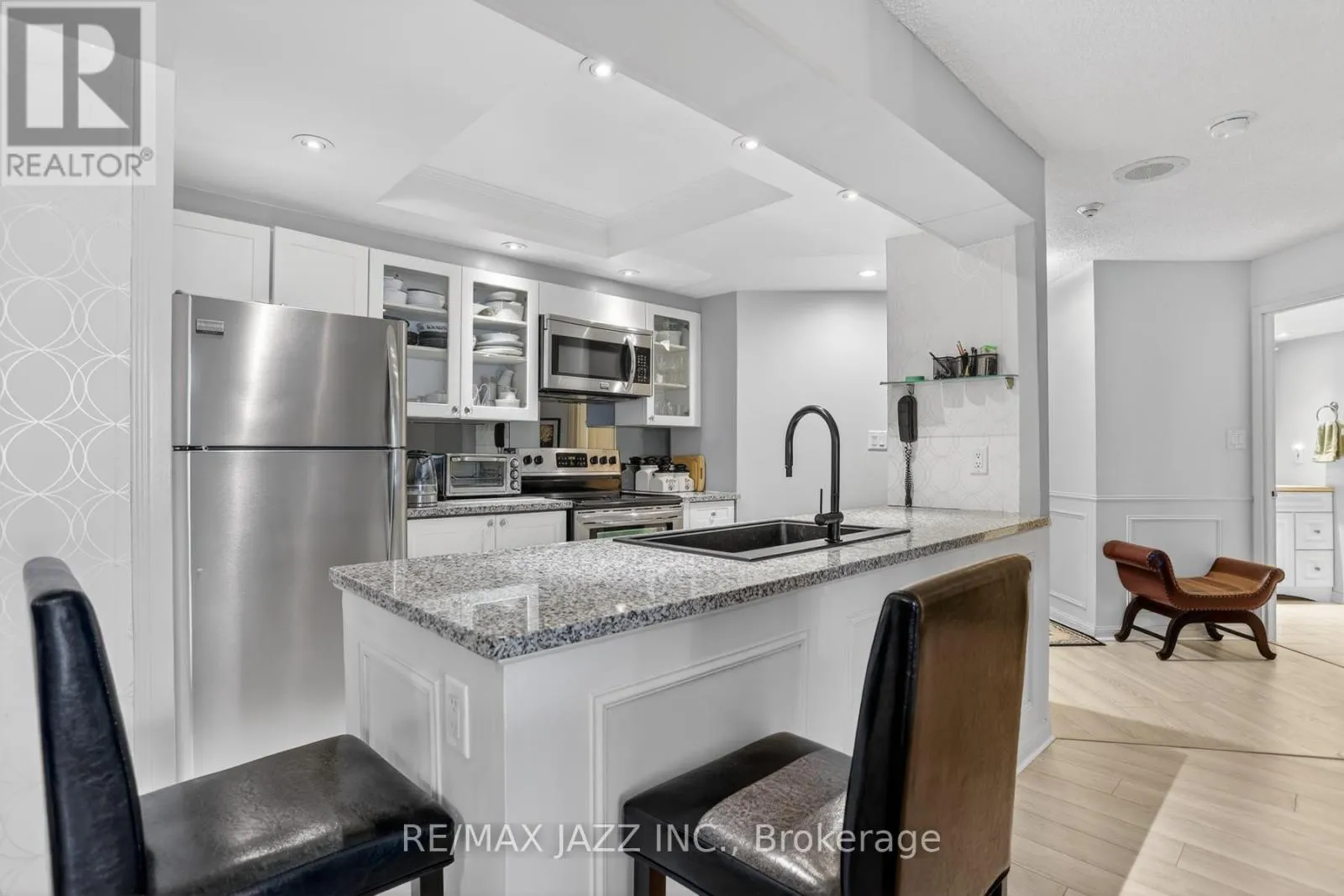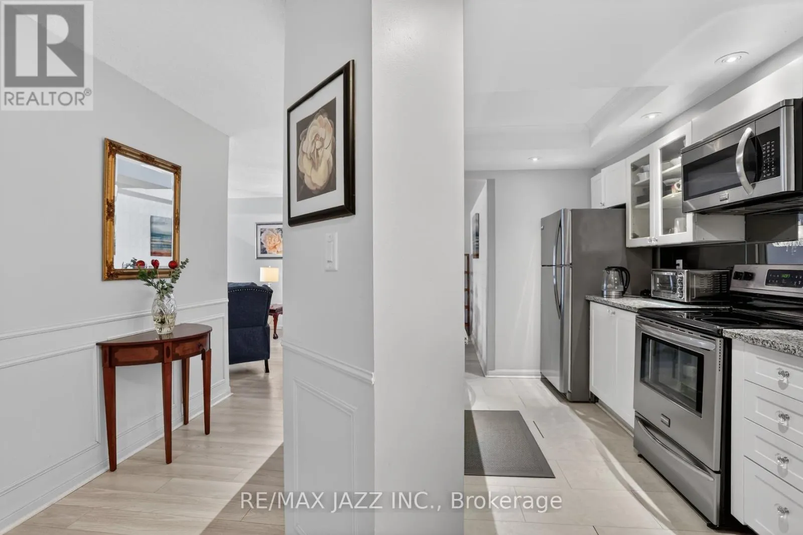 Cross Streets: Rossland & Garden. ** Directions: W on Rossland, past Garden, condo on North side of Rossland. Exceptional move-in-ready luxury condo in Whitby's sought-after Connoisseur building. This one bedroom + solarium suite provides a lavish interior featuring a spectacular modern kitchen with granite countertops, a large granite sink, and pot lights. The wall-to-wall windows, complete with California shutters, pour light into the open concept living space and into the solarium- perfect for a home office or study. Neutral colour palette, charming wainscotting, and newer laminate flooring. The large primary bedroom features a walk-through to the solarium, two closets, and a semi-ensuite bathroom complete with glass enclosed shower and laundry. This unit offers the very best of luxury and convenience and is within walking distance to shops, dining/restaurants, banking, library, recreation centre, parks, and transit. It is perfectly appointed and is move-in ready for you. Enjoy everything the Connoisseur has to offer while living in remarkable style. (id:27476)