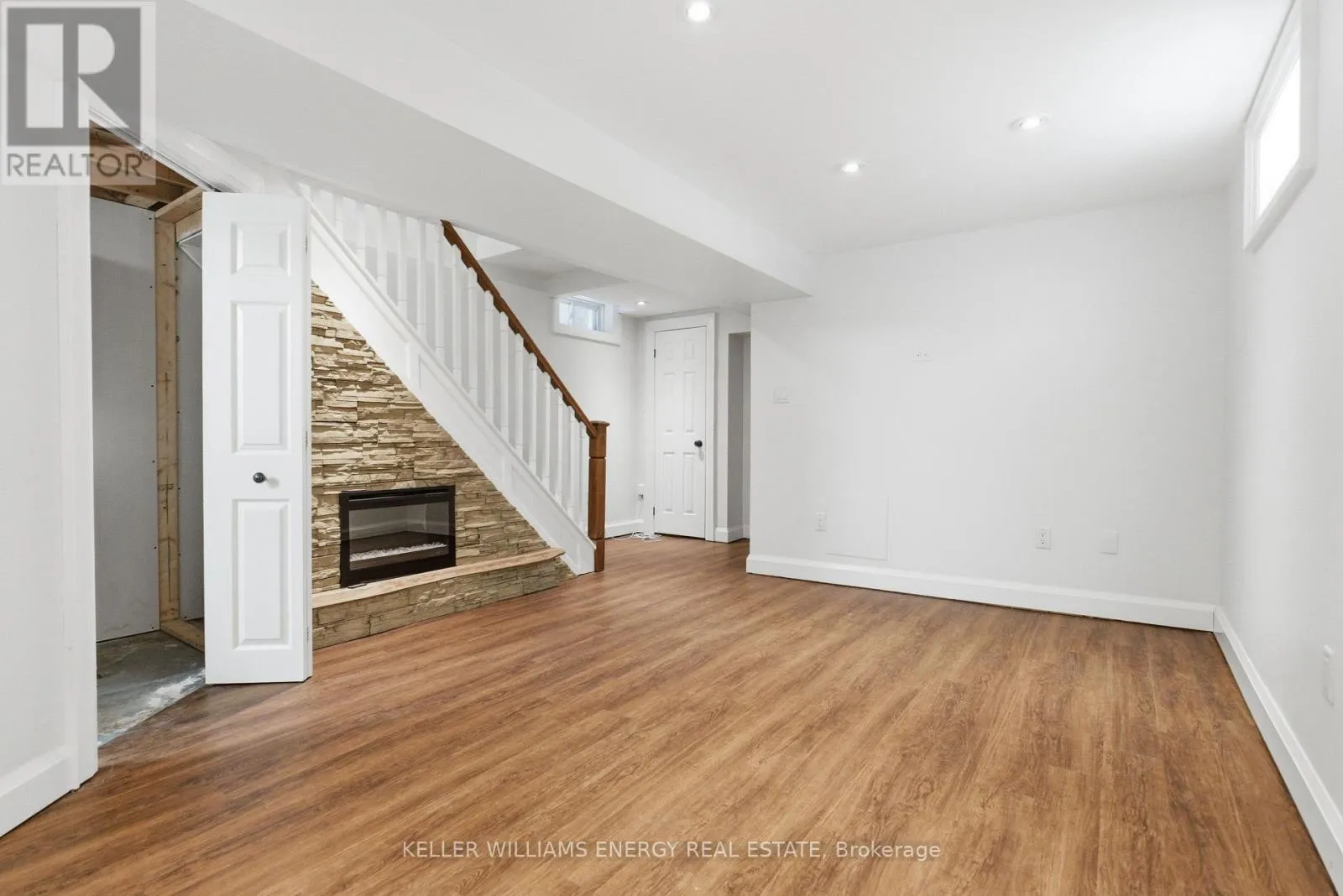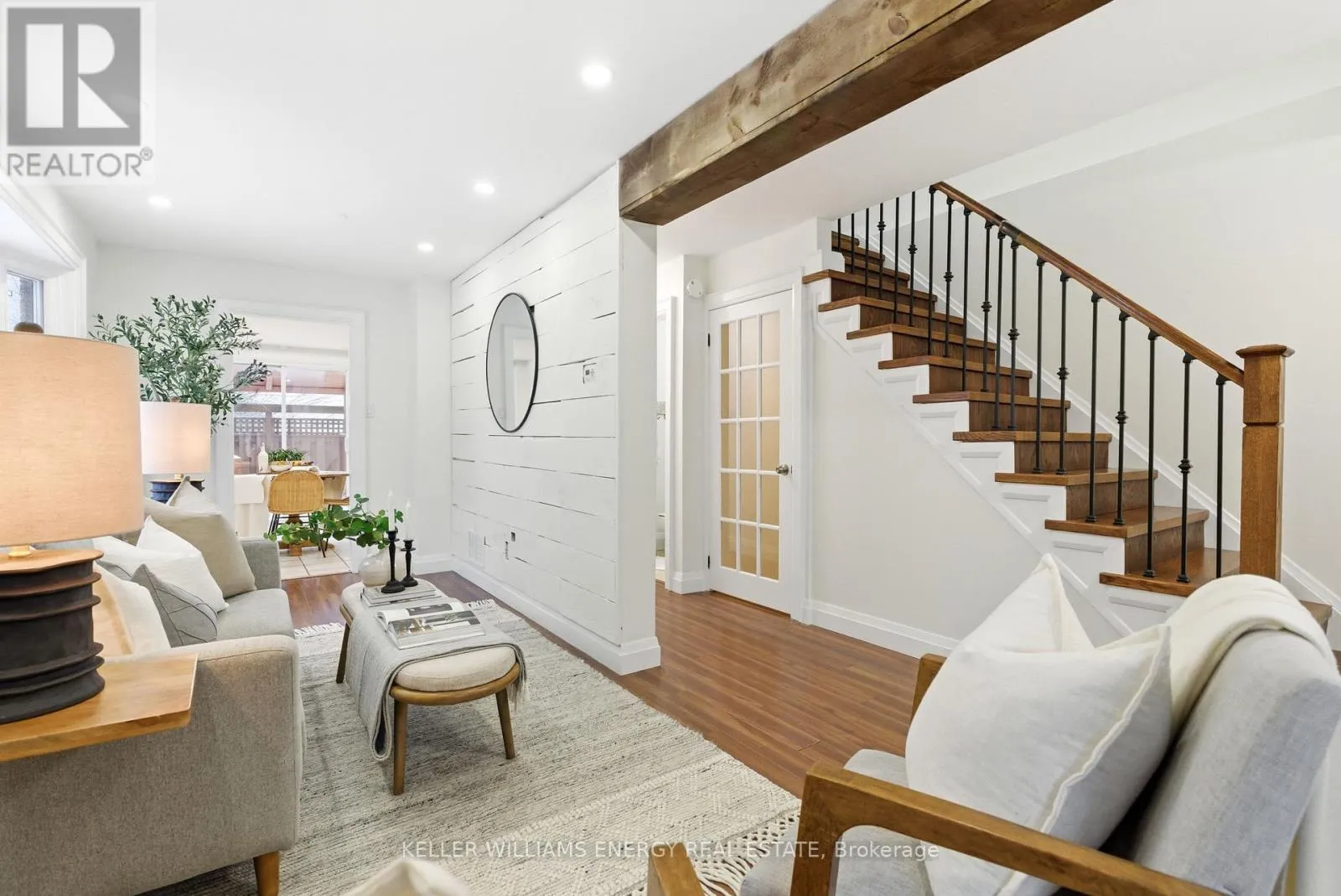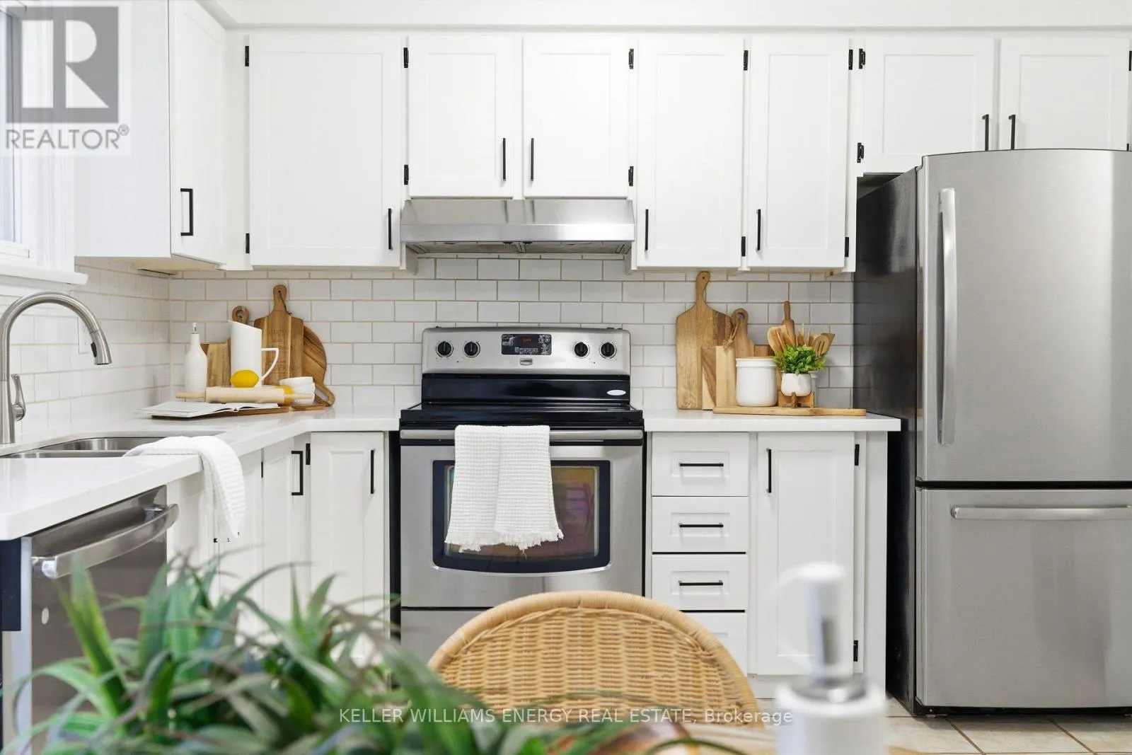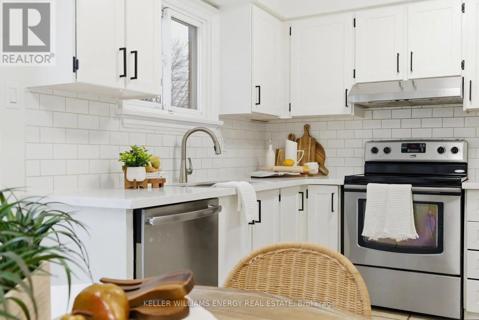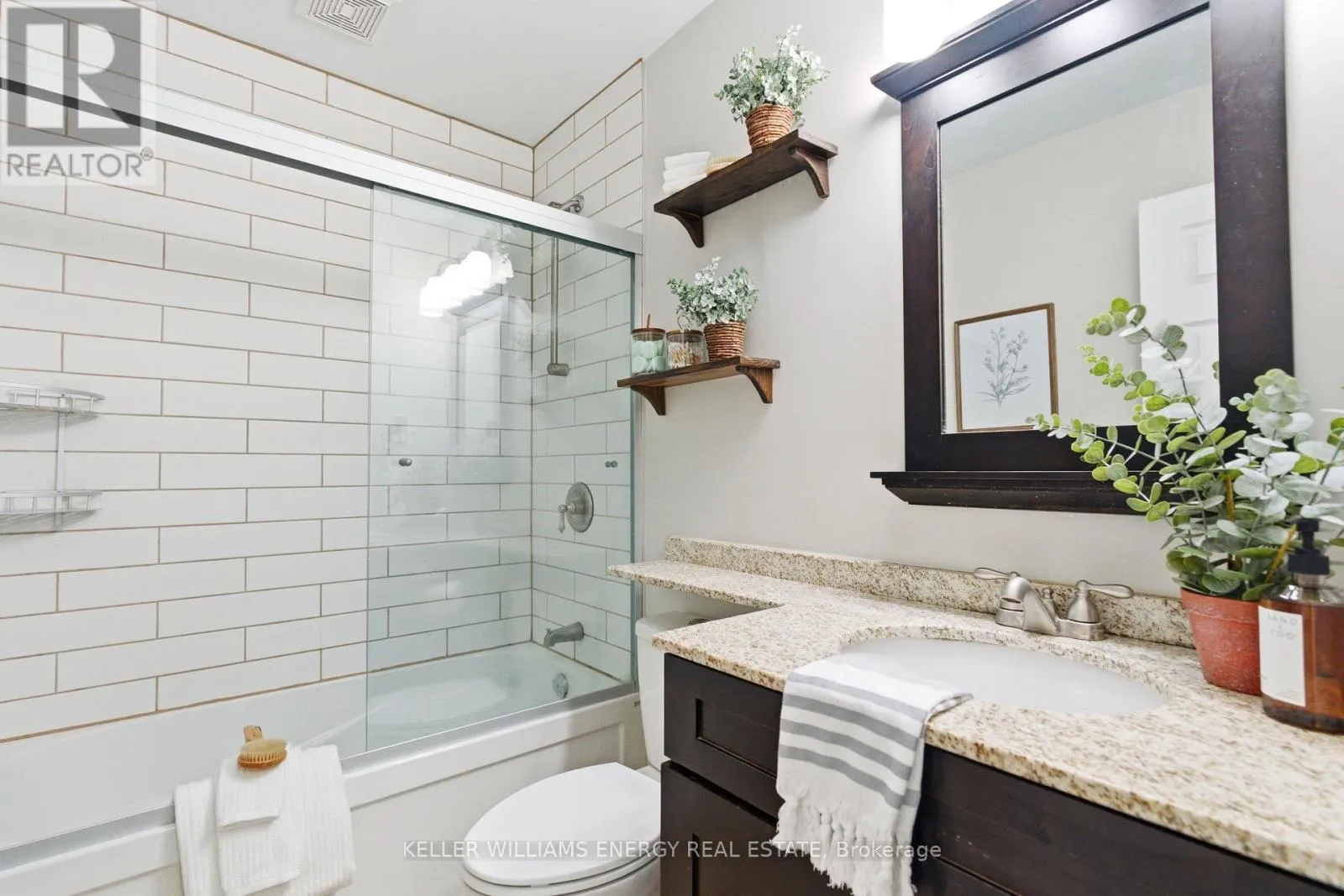 Dundas St E/ Glen Hill Dr Freshly Painted Throughout And Located In A Convenient, Family-Friendly Neighbourhood, This Home Is Ready For Its New Owner! The Main Floor Features Laminate Flooring, A Powder Room, And A Bright Living Room Complete With Pot Lights, A Wood Feature Wall, A Bay Window, And An Additional Large Window Overlooking The Front Yard. The Eat-In Kitchen Offers A Backsplash, Quartz Countertops, Newly Refinished Cabinets, And A Walk-Out To The Deck And Fully Fenced Backyard. Upstairs, You'll Find Three Bedrooms, All With Laminate Flooring, Along With The Main Four-Piece Bathroom. The Basement Features Laminate Flooring And Pot Lights Throughout, As Well As A Recreation Room With A Stone Feature Wall And Electric Fireplace. There Is Also A Fourth Bedroom, Ideal For Guests Or A Home Office, Featuring Its Own Convenient Three-Piece Bathroom With A Glass Shower. A Cold Cellar And Unfinished Laundry Room Provide Additional Storage And Utility Space. The Fully Fenced Backyard Includes A Deck With Covered Area, A Patio, And Plenty Of Space For Hosting Friends And Family. As An Added Bonus, The Heated Garage Features A Separate Electrical Panel, Built-In Workbench, And A 220-Volt Plug That Could Be Used For An EV Charger. Ideally Located In A Great Family-Friendly Area, This Home Is Close To Schools, Shopping, Transit, And Highway 401. EXTRAS: Upstairs Flooring (2022), Kitchen Backsplash (2022), Kitchen Countertops (2022), Freshly Painted Throughout (2026), Refaced Cabinets In Kitchen (2026). (id:27476)