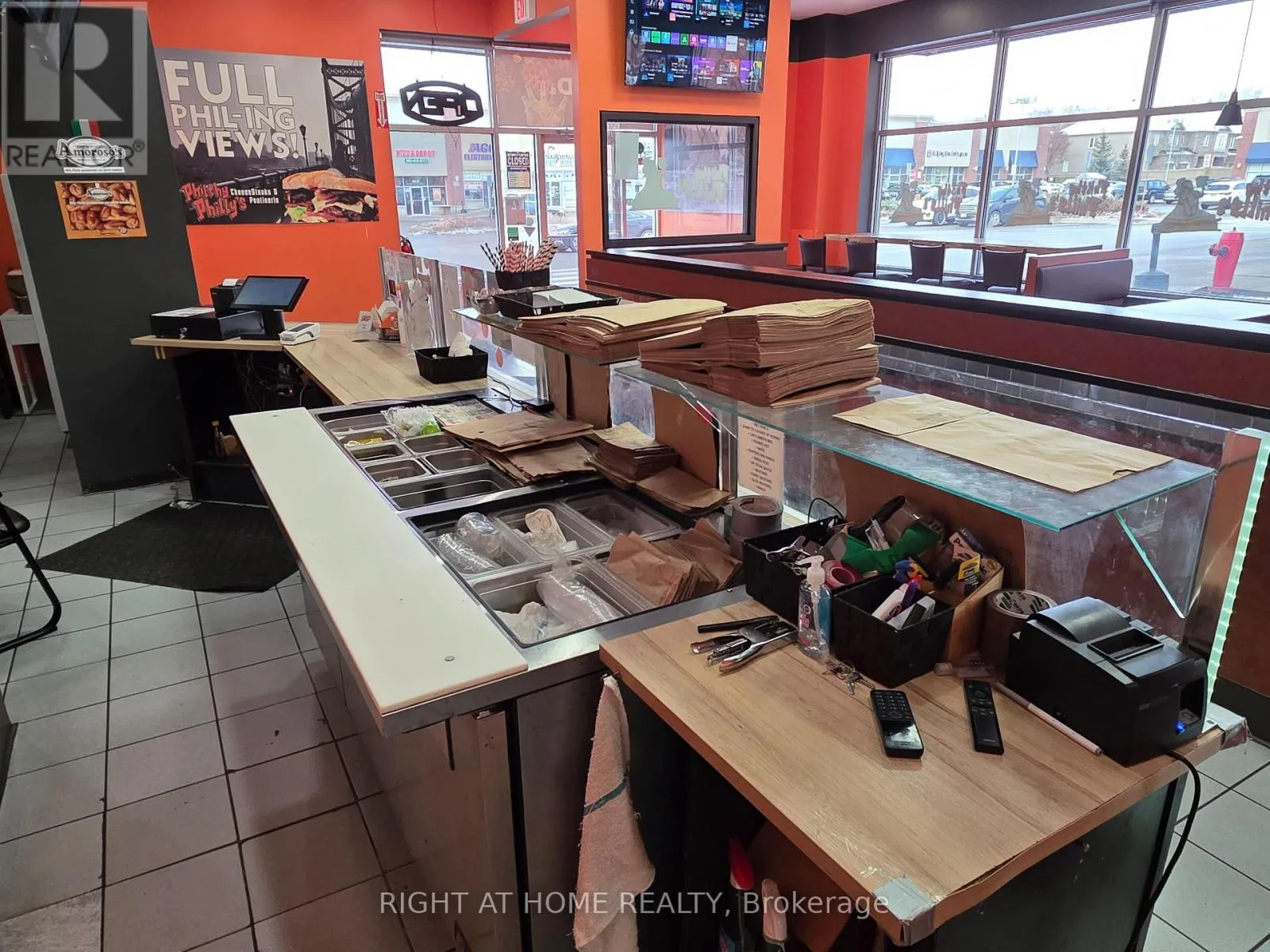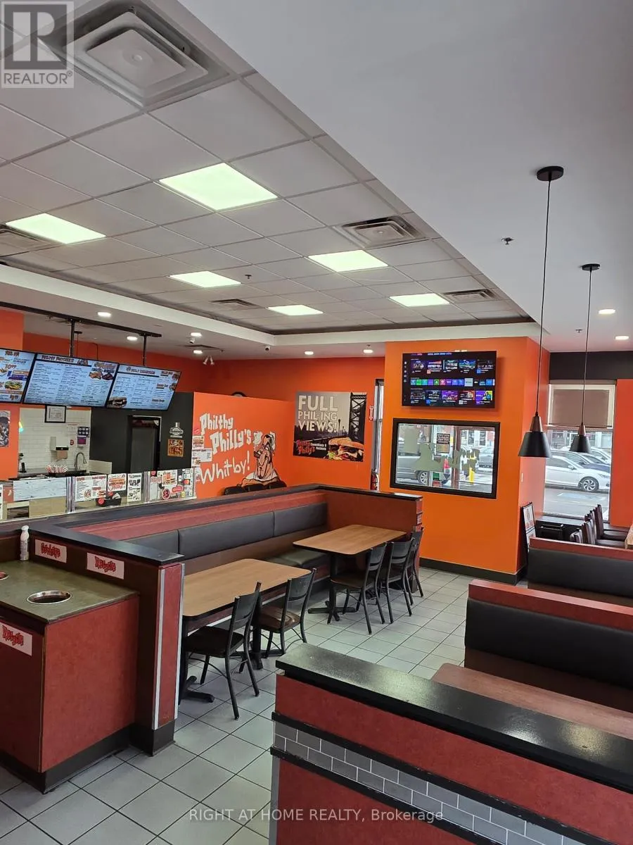 Cross Streets: Taunton Rd & Thickson Rd. ** Directions: North West Corner of Taunton Rd & Thickson Rd. Stop Dreaming and Start Making Money with this Prime Whitby Restaurant Opportunity! Perfectly situated as a high-traffic, high-visibility corner unit in an established plaza at the corner of Thickson & Taunton. This location offers a desirable patio potential with a favorable lease that secures your business future. Boost your revenue potential immediately by currently being the only one in the franchise for Durham to hold a liquor license. Leverage 5 established additional cloud kitchen lines to truly maximize revenue. Not only the current franchise line but 5 more income streams. The true value lies in the ultimate flexibility: skip the red tape and launch your own unique culinary concept or step into a cash-positive, turnkey operation with established supply chains and very low monthly fees. You are acquiring an asset-rich restaurant loaded with professional grade equipment including a 10ft exhaust hood, walk-in cooler, sandwich prep stations and much more, plus a complete furniture package with a custom floating bar and smart TVs that saves you a fortune in startup costs. Whether you are an ambitious owner-operator or a seasoned investor, first time restauranteur, this existing ready-to-dine restaurant is an exciting opportunity to truly make it your own. (id:27476)