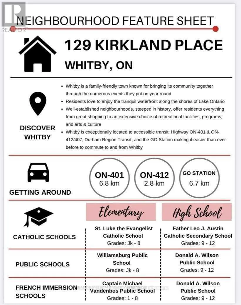 : Medland & Country Lane Welcome to this beautifully maintained 3-bedroom townhome in the highly desirable Williamsburg community of Whitby. Featuring great curb appeal and a charming covered front porch, this home offers a warm and inviting first impression.The bright main floor includes a welcoming foyer with convenient interior garage access and an open-concept living and dining area finished with laminate flooring and filled with natural light. The functional eat-in kitchen features stainless steel appliances, ample cabinetry and counter space, and a walk-out to the backyard, making it ideal for everyday living and entertaining.Step outside to a fully fenced backyard with a spacious two-tier deck and green space - perfect for summer barbecues, outdoor dining, or relaxing with family and friends.Upstairs, the primary bedroom offers a walk-in closet and semi-ensuite access to the main bathroom. Three additional well-sized bedrooms provide flexibility for children, guests, or a home office. The unfinished basement offers excellent potential for future living space or storage.Meticulously maintained and move-in ready, this home is ideally located close to schools, parks including Rocket Ship Park, shopping, transit, and quick access to Highways 401 and 412, as well as the GO Station. A fantastic opportunity for first-time buyers, families, or anyone looking to enjoy the convenience and community of Williamsburg. (id:27476)