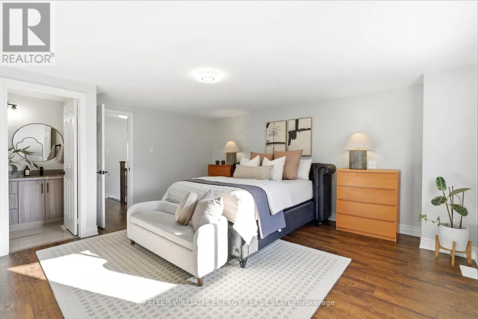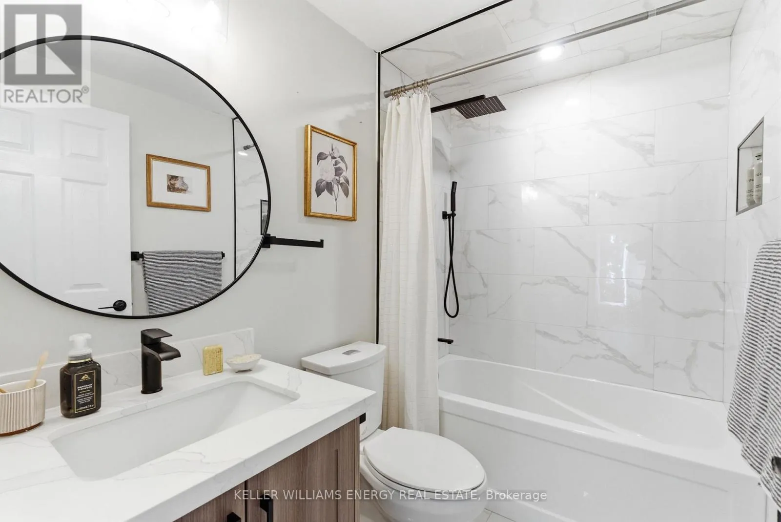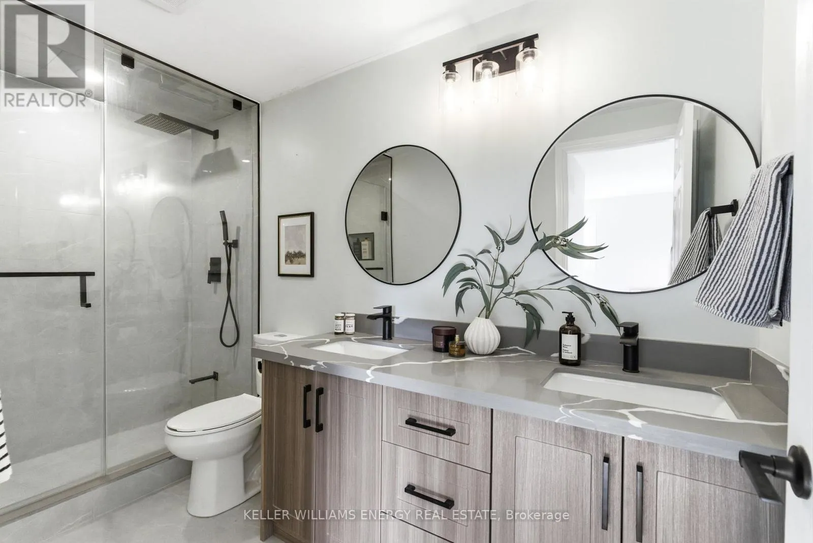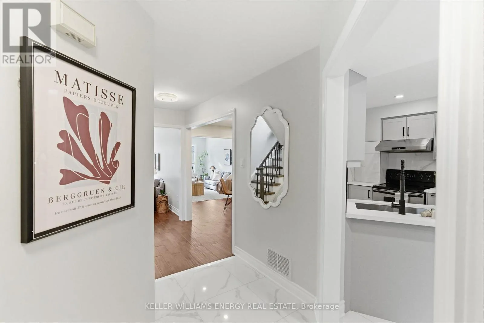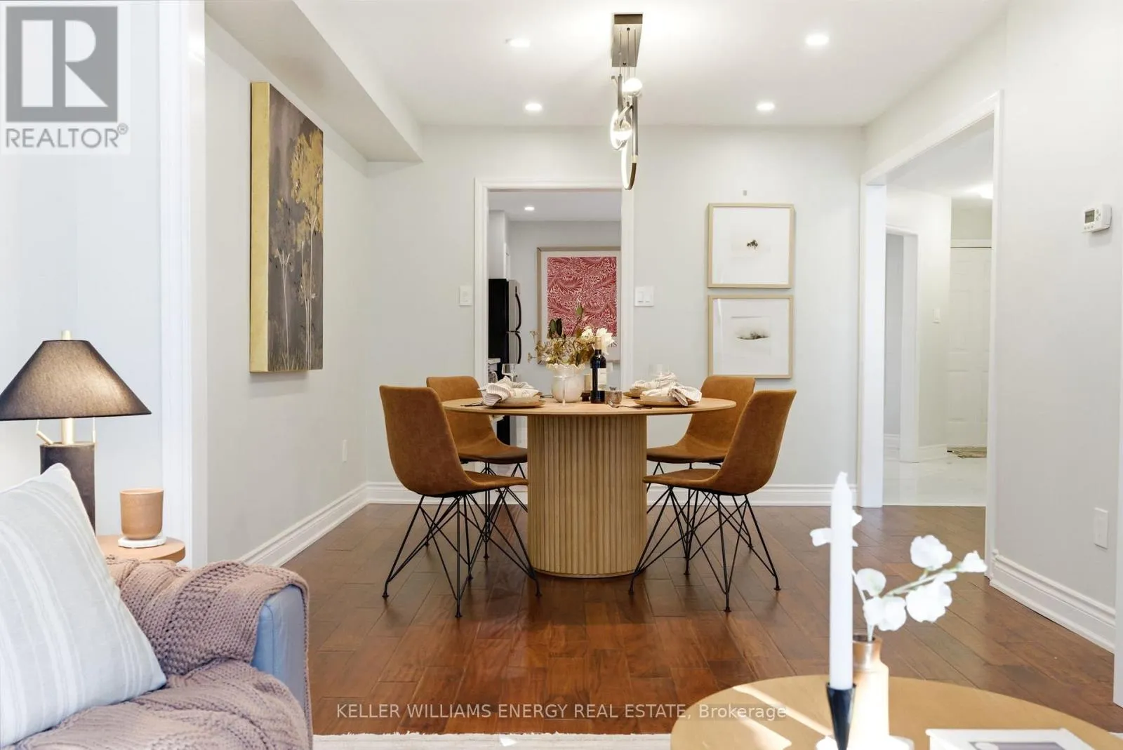 Bassett Blvd & Rossland Rd E Experience modern living in this stunning all-brick freehold end-unit townhouse offering nearly 1900 sq. ft. of beautifully upgraded living and outdoor space. From the moment you step through the inviting, private, and beautifully landscaped front entrance, you'll notice the meticulous top-to-bottom renovations, including brand-new hardwood floors, stylish contemporary lighting, and bright open-concept living and dining areas. Designed for both everyday living and effortless entertaining, the flow of the home feels spacious, welcoming, and thoughtfully planned. The renovated eat-in kitchen is a true showstopper, featuring quartz countertops, upgraded cabinetry with soft close functionality, undermount lighting, and a generous prep and gathering space! Upstairs, you'll find three generously sized bedrooms, including a massive primary retreat complete with a sitting area, a walk-in closet, and a spa-inspired ensuite with quartz countertops, double sinks, and a full glass shower. With three bathrooms in total, comfort and convenience are built into every level. As an end unit, this home enjoys exceptional privacy and sits on a large, serene, treed lot with a fully landscaped backyard, ideal for outdoor dining, relaxing evenings, or summer BBQs. The expansive lower level offers incredible flexibility. Currently enjoyed as an entertainment zone, can be envisioned as a home theatre, gym, guest suite, office, or additional living space in the future. The space is versatile and ready to adapt to your lifestyle. This property is a rare find that blends size, style, and functionality in one of Whitby's most desirable neighbourhoods. Located in sought-after Pringle Creek, you'll enjoy a family-friendly community known for excellent schools, green spaces, and convenient access to shopping and commuter routes. This home is move-in ready, beautifully upgraded, completely landscaped, and designed to grow with you. This is more than a home. It's where your next chapter begins! (id:27476)