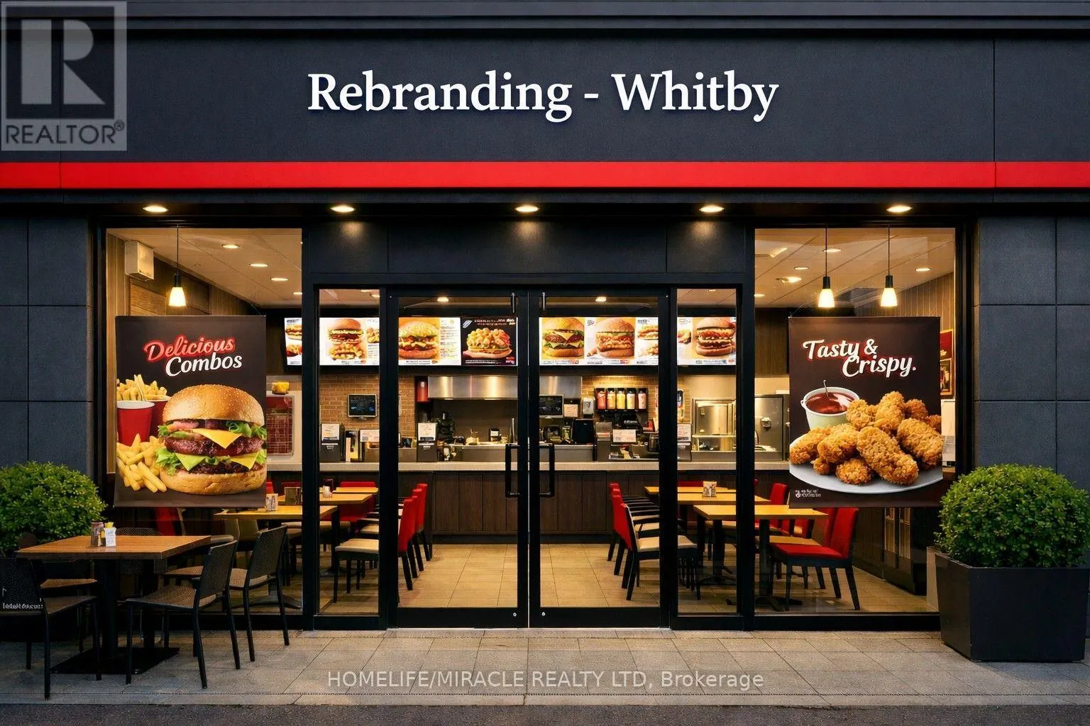 Taunton Rd W And Baldwin St S Exceptional Rebranding Opportunity in Prime Taunton Rd Location. Prime rebranding opportunity in a busy plaza at the high-traffic Intersection of Taunton Rd W & Baldwin St S. Approximately 1,000 sq. ft. with an ideal QSR layout, including walk-in cooler and freezer.Surrounded by major big box retailers such as Walmart and Canadian Superstore, generating strong daily traffic and excellent exposure.High customer volume in a proven retail node.Turn-key setup, ideal for rebranding, owner-operators, or franchise concepts.Excellent opportunity in a high-demand area. (id:27476)