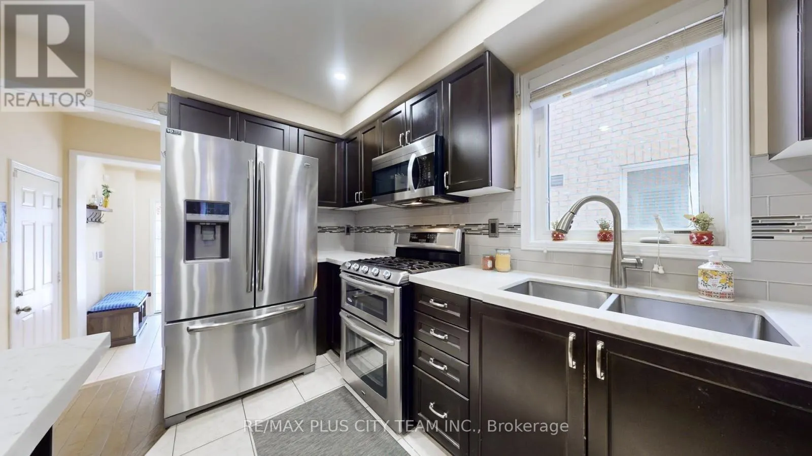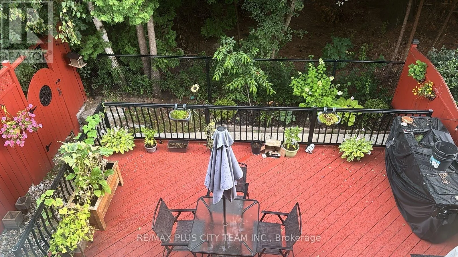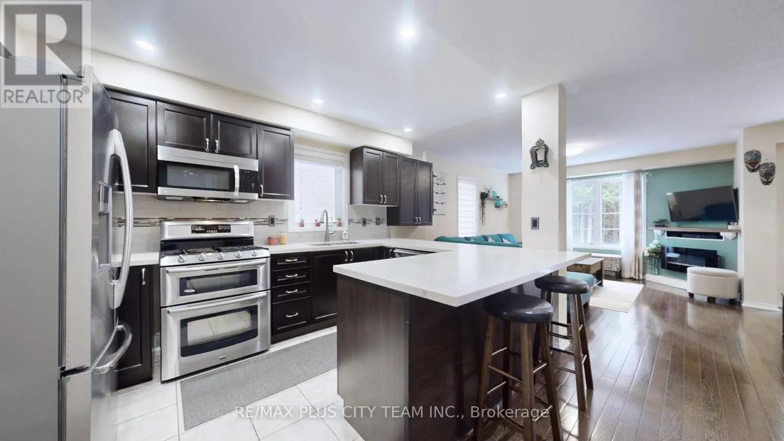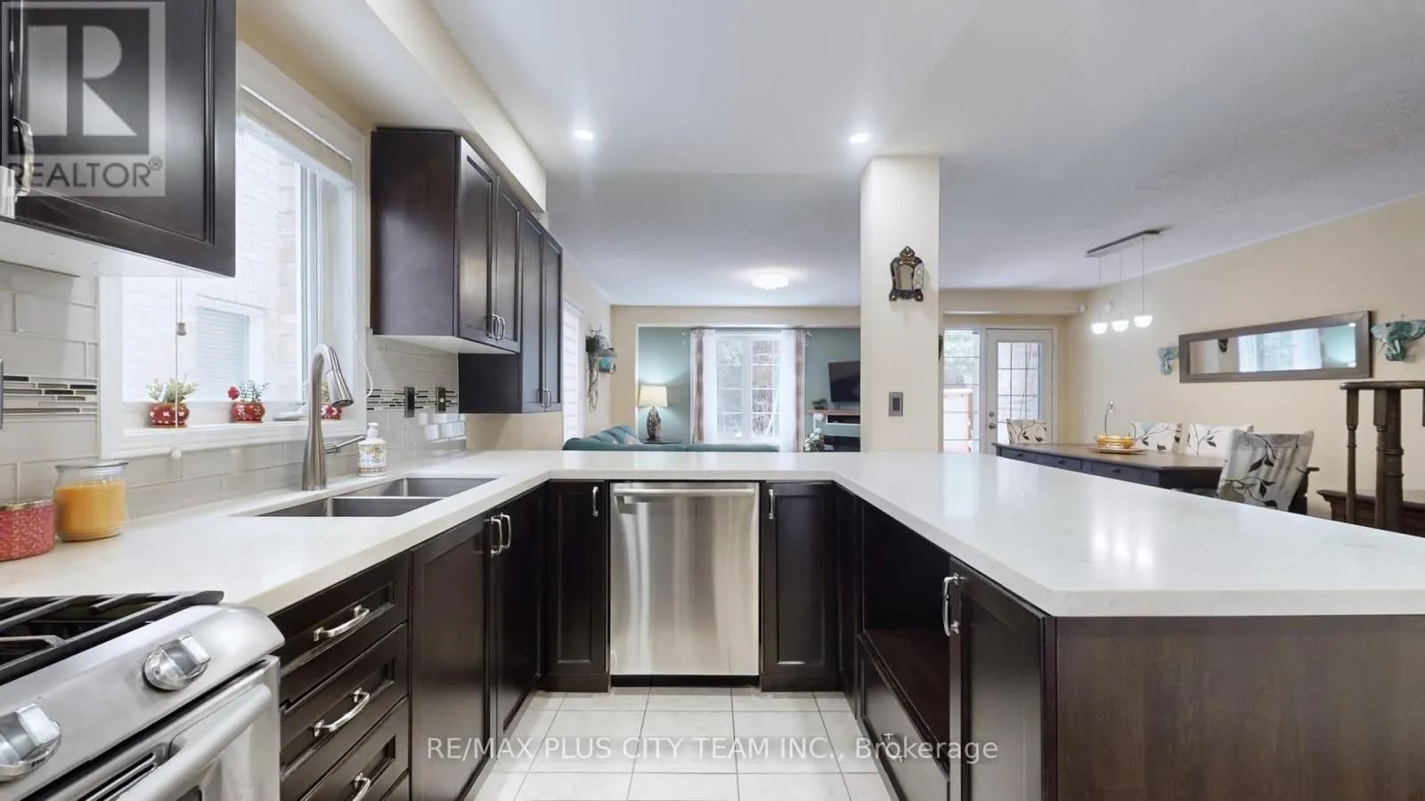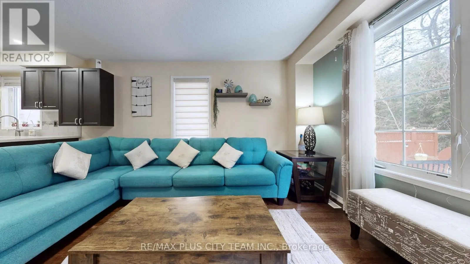 Cross Streets: Thickson Rd / Taunton Rd E. ** Directions: Thickson Rd N / Edison Way. Stunning all-brick end-unit townhome backing onto a private ravine in one of Whitby's most sought-after family-friendly communities. This bright 2-storey home offers exceptional natural light and added privacy, with a beautifully landscaped backyard featuring a large deck perfect for outdoor entertaining and relaxing among mature trees. The open-concept main floor showcases hardwood flooring throughout, a convenient 2-piece powder room, and a spacious combined living and dining area ideal for gatherings. The updated kitchen features granite countertops, stainless steel appliances, including a gas stove, ample cabinetry, and a breakfast area with a walkout to the deck for seamless indoor-outdoor living. Upstairs, generously sized bedrooms provide comfortable retreats, including a well-appointed primary suite. The finished lower level adds valuable additional living space, ideal for a recreation room, home office, or family area. Added an interlock at the front to provide extra parking alongside the garage and private driveway. A rare opportunity to own a move-in-ready home backing onto green space in a prime Whitby location close to parks, schools, shopping, and commuter routes. (id:27476)