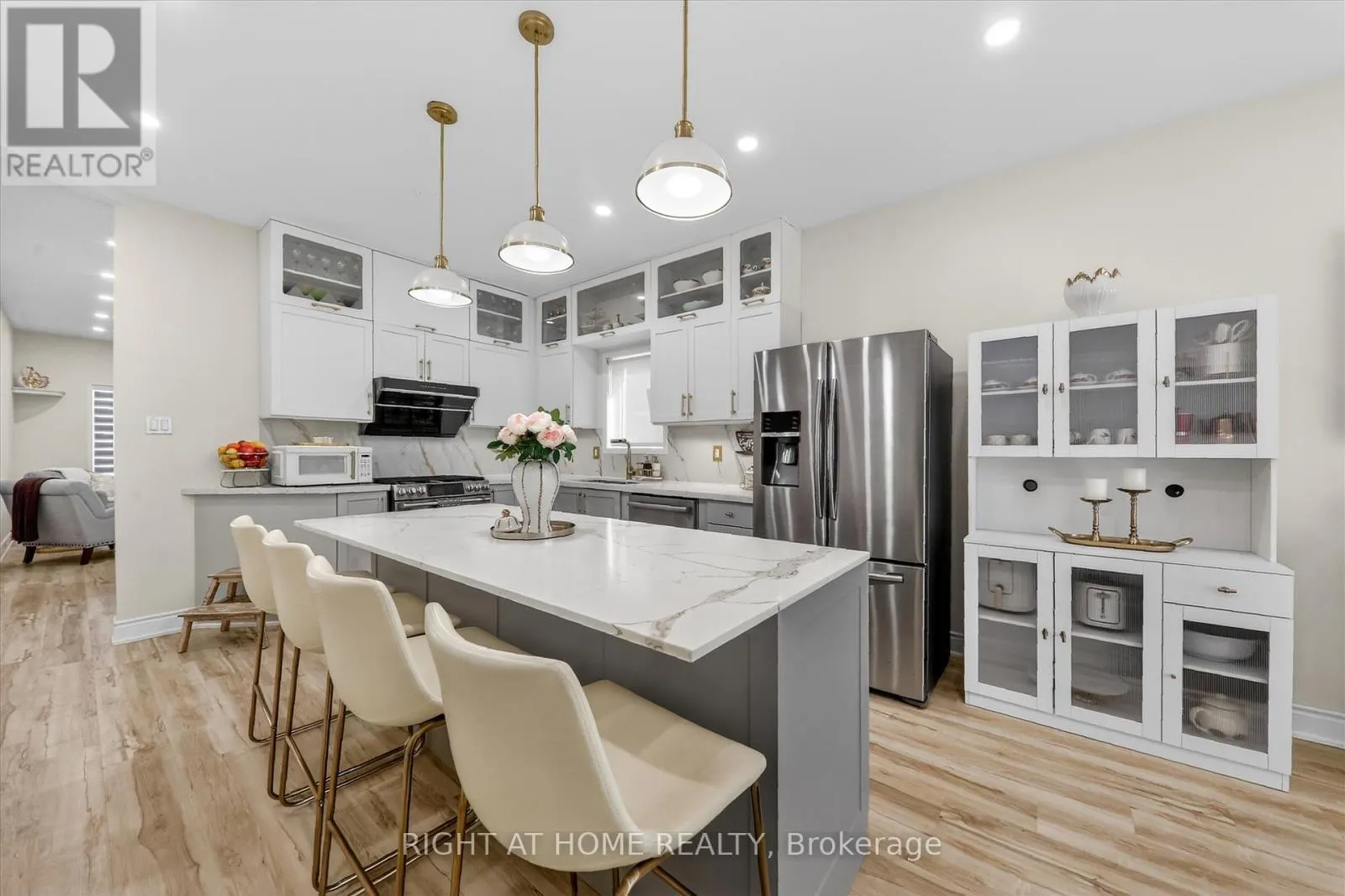Thickson/Rossland Welcome to 75 Fencerow Drive, a beautiful detached home nestled in one of Whitby's most sought-after neighbourhoods. Thoughtfully updated from top to bottom, this home offers the perfect blend of luxury, comfort, and modern living. The sun-filled open-concept main floor features large windows, elegant flooring throughout, and a spacious layout ideal for everyday living and entertaining. The stunning kitchen is a chef's delight, complete with quartz countertops, high-quality stainless steel appliances, ample cabinetry for storage and functionality. Primary bedroom is a true retreat, featuring a luxurious modern ensuite and a walk-in closet with built-in organizers. Two additional generously sized bedrooms provide comfortable space for family members or guests. The beautifully finished basement includes a stylish bar, making it perfect for movie nights and entertaining. Step outside from the kitchen to the deck, ideal for outdoor gatherings and BBQs. The large, fully fenced and landscaped backyard features a charming gazebo and plenty of space for relaxation and enjoyment.Conveniently located just minutes from major highways, shopping, schools, parks, and public transit, this home offers both comfort and convenience in an unbeatable location.This is the perfect family home offering modern elegance, functional living, and exceptional accessibility. Simply move in and start enjoying! (id:27476)