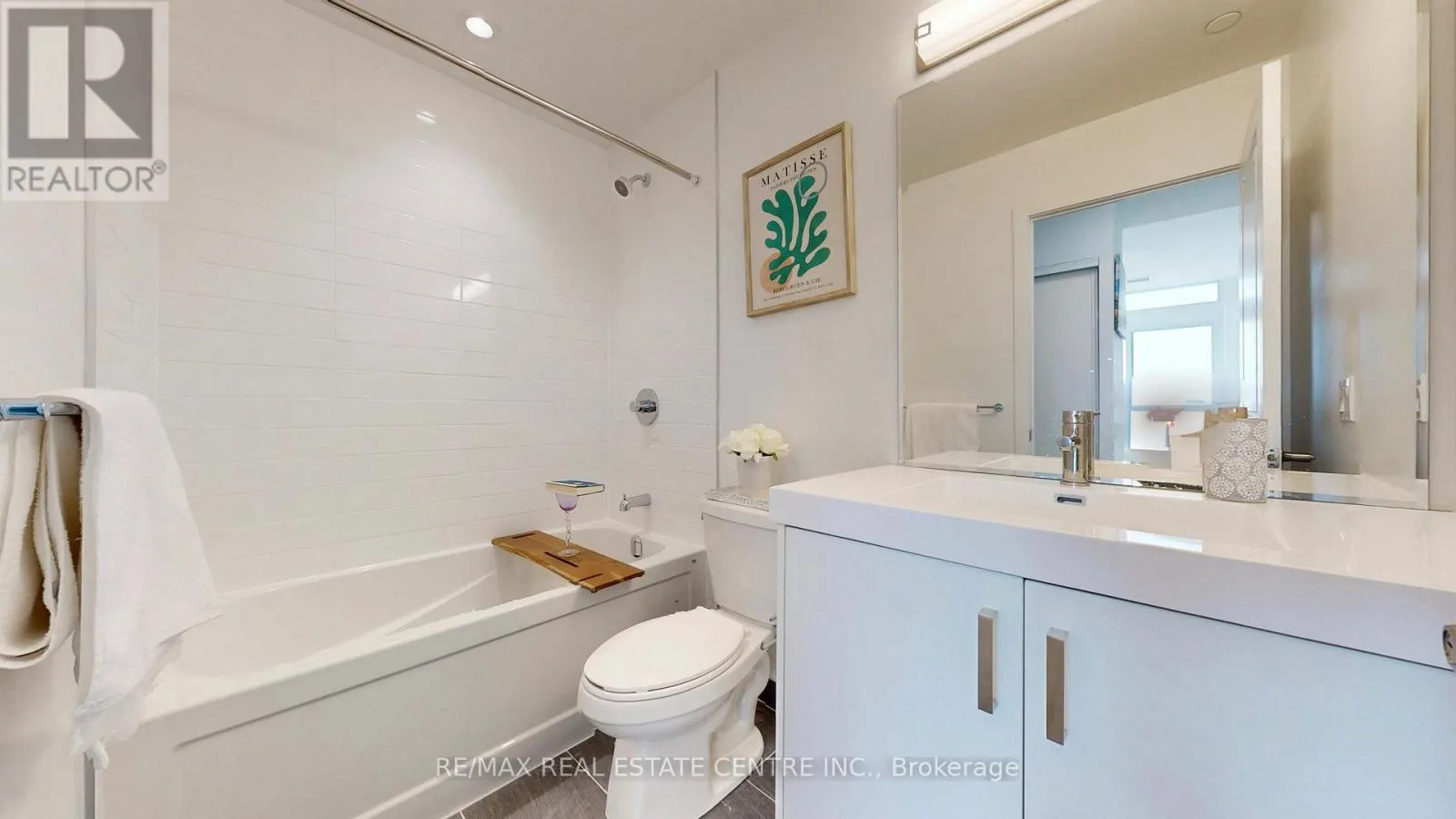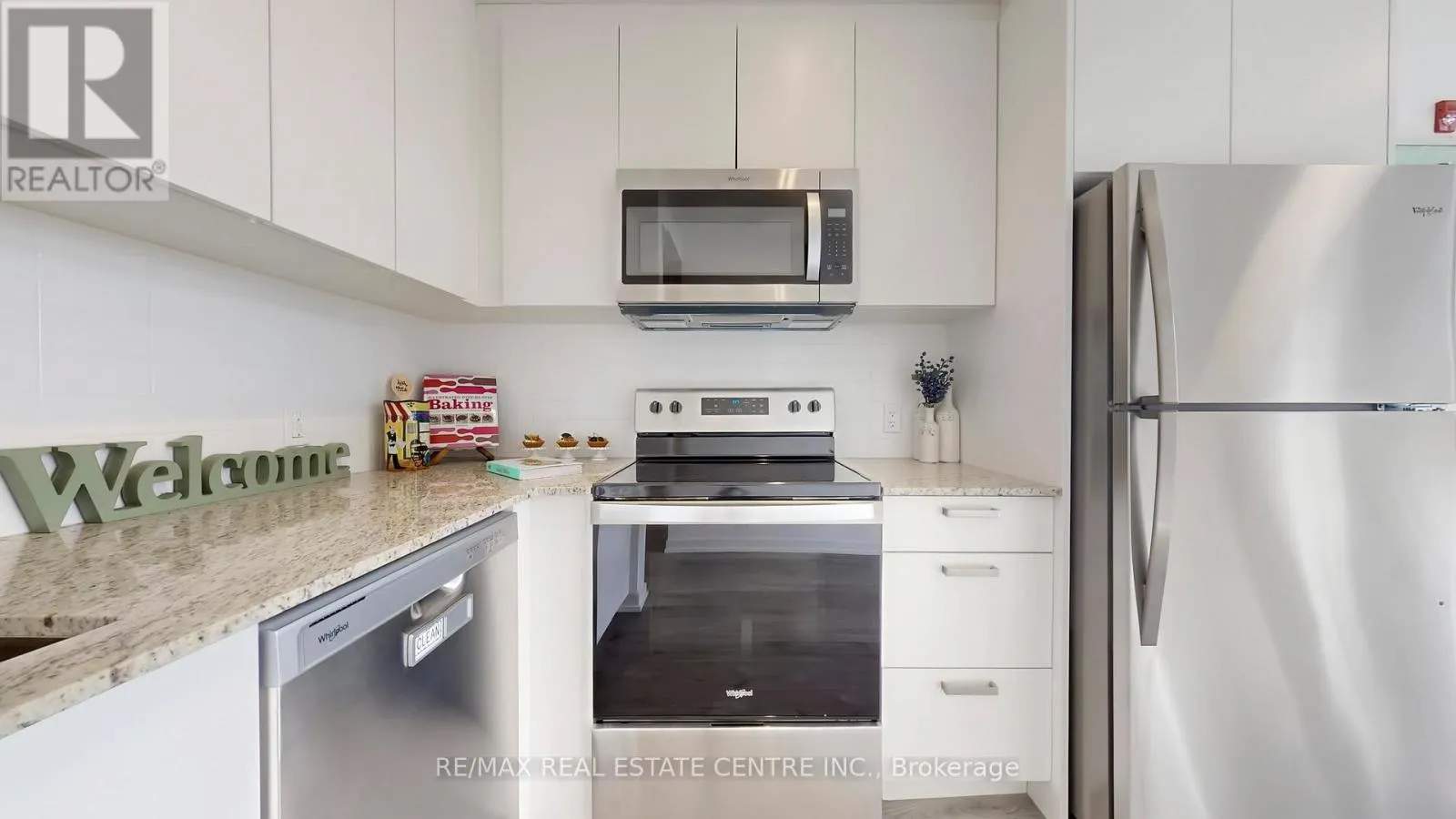 Cross Streets: Legacy Management. ** Directions: North East. Brand-New 2+1 Bedroom Condo - 992 sq. ft. - Modern & Bright Welcome to this never-lived-in 2+1 bedroom condo, offering approximately 992 sq. ft. of contemporary living space. This spacious unit features an open-concept layout with 9-foot ceilings and large windows that fill the home with natural light. The south-facing exposure provides stunning panoramic views, enhancing the bright and airy atmosphere of the living area. The sleek, fully equipped kitchen is the heart of the home, featuring high-end stainless steel appliances, including a stove, fridge, dishwasher, and microwave, along with ample storage space. A stackable washer and dryer are conveniently included, adding to the ease of daily living. Step outside onto your large private balcony to enjoy fresh air and breathtaking views. The condo offers two generously sized bedrooms and a den, perfect as a home office or versatile living space. With two full bathrooms, this home provides comfort and privacy for both residents and guests. Residents have access to a wide range of amenities, including a games room, lounge/event space, yoga/party room, Zen studio, and a modern fitness center. The unit also comes with one underground parking spot and a locker, with additional parking available for $150/month. Located in a prime area, this condo is steps from dining, shopping, and parks, with quick access to major highways (407/401/412) for an easy commute. Whitby GO Station is nearby, offering convenient public transit access. You'll also be close to the University of Ontario Institute of Technology (UOIT) and the luxurious Thermea Spa Village. (id:27476)