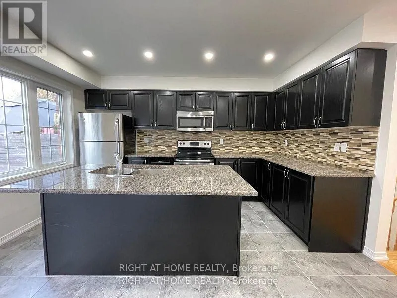 Dundas St E & Nichol Ave This modern townhouse in Whitby is a perfect mix of comfort and style. It offers 1803 sq ft of living space, perfect for a growing family and is nestled in a quiet community. It has spacious 3 + 1 bedroom, 4 bathroom, pot lights and Hardwood on main floor and carpet on upper floor. Kitchen with granite counter tops, large island, stainless steel appliances and dining room with walk out to backyard. Large windows bring in lots of natural light. Master bedroom with ensuite washroom and walk-in closet. Upstairs there is also a 3-piece bathroom and laundry. Walking distance to park, grocery store, doctors office and all amenities. This move-in ready home is perfect for families and professionals alike. Tenant responsible for all utilities (electricity, gas, water and hot water tank rental). (id:27476)