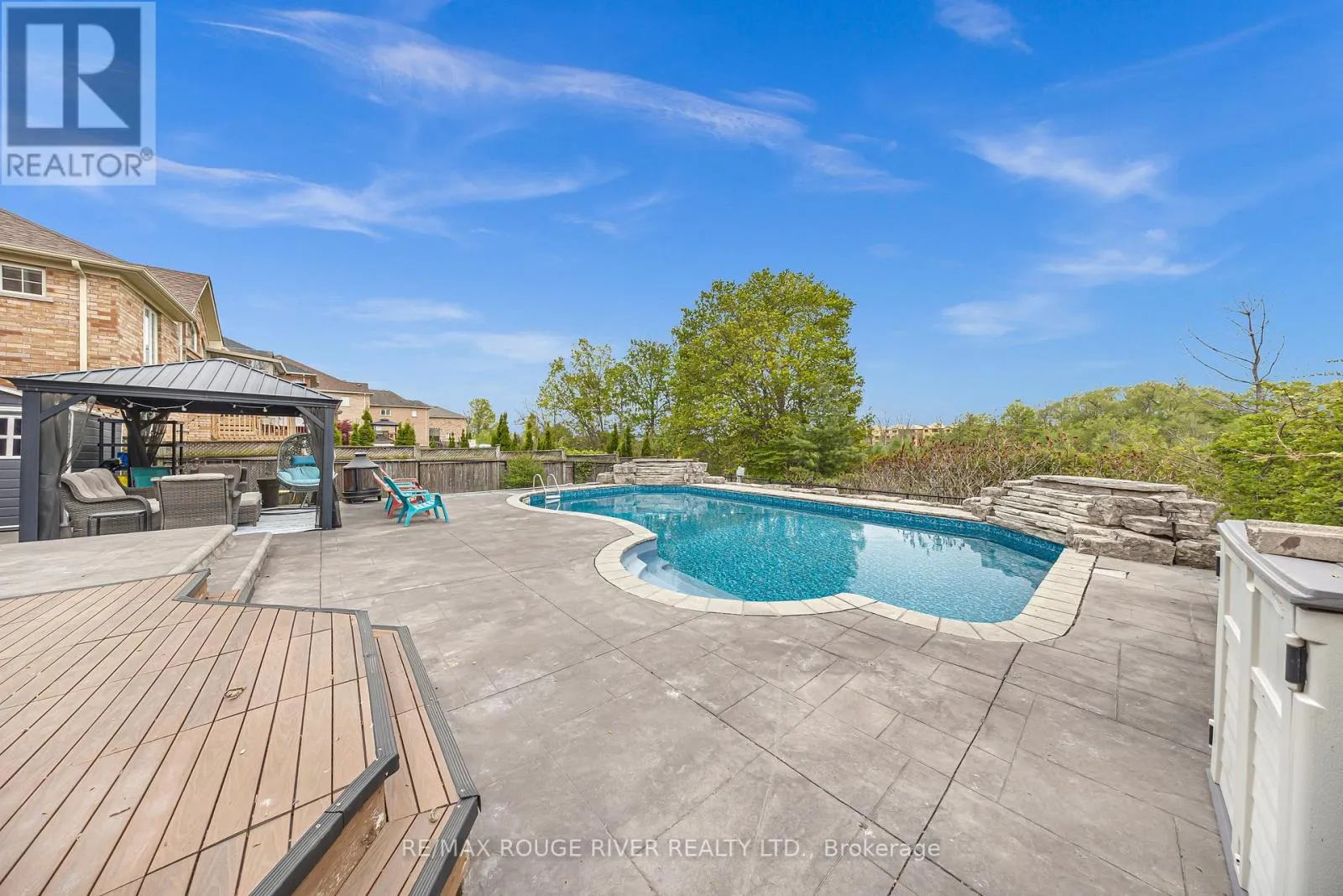 Taunton & Baycliffe Absolutely Stunning Detached Home Situated In The Heart Of The Prestigious Williamsburg Neighbourhood, Boasting Over 3,000 Sq Ft Of Luxurious Living Space On A Rare And Serene Ravine Lot With A Spectacular Inground Pool, Double Waterfall Features, And Breathtaking Western Exposure For Sunset Views Plus This Family Home Perfectly Positioned Steps Away From The Iconic Rocketship Park Truly A Dream Location For Families! The Exterior Is Fully Landscaped With Stamped Concrete, Offering A Low-maintenance Lifestyle. Step Inside To An Inviting Open-concept Layout Enhanced By New Gleaming Hardwood Floors And An Upgraded Staircase. The Combined Living And Dining Areas Are Bathed In Natural Light From Oversized Windows. The Spacious Family Room Is Perfect For Entertaining Or Relaxing, Highlighted By Crown Moulding, Large Windows With Ravine Views, And A Coffered Ceiling That Adds Architectural Elegance. The Upgraded Kitchen With Stainless Steel Appliances, A Large Centre Island, Granite Countertops, Stylish Backsplash, And A Breakfast Area With Walk-out To The Elevated Deck Overlooking Your Backyard Paradise. Upstairs, You'll Find Five Spacious Bedrooms, Perfect For A Growing Family. The Primary Suite Offers A 5-piece Ensuite, Walk-in Closet, And Ravine Views. The 4th Bedroom Also Features Its Own 4-piece Ensuite And Walk-in Closet. The Remaining Bedrooms Are Spacious, Each With Large Windows And Ample Closet Space, Providing Comfort And Functionality For Everyone. The Fully Finished Walk-out Basement With A Separate Entrance Offers Endless Possibilities An Ideal Setup For Extended Family, Guests, Or Potential Rental Income. This Home Truly Has It All. Located Steps Away From Top-rated Schools Like Williamsburg Public, Parks, Shopping, Restaurants, Hwy 401, 412, And The Go Station. Truly A Forever Home. Property Was Previously Staged. (id:27476)