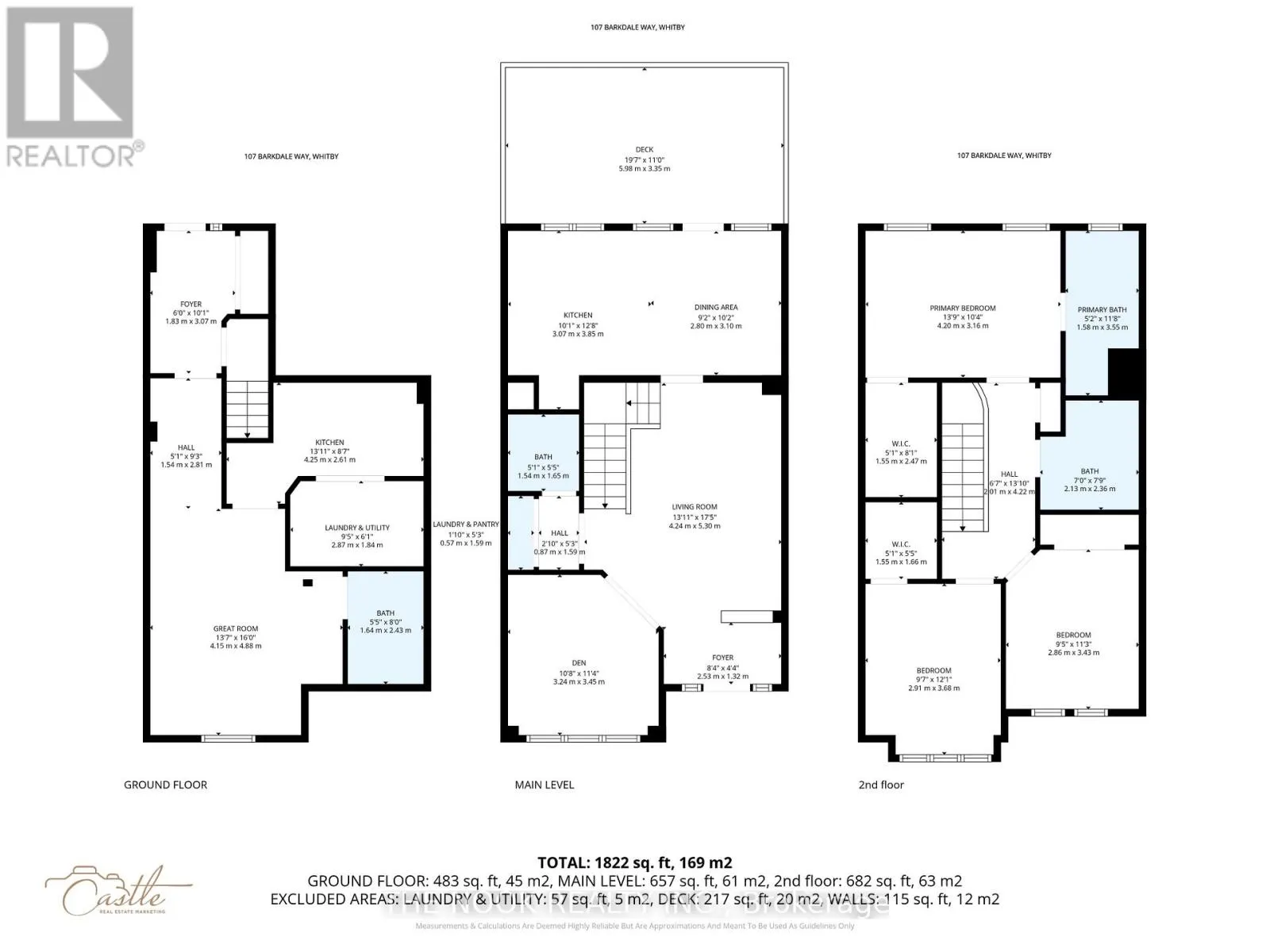 Cross Streets: Brock Rd. & Rossland Rd., E. ** Directions: Brock Rd. north to Wallace Dr. to Palisades Ct., to Latchford Way to Barkdale Way. This one-of-a-kind Townhome is the 2nd largest model in this development. It's been beautifully updated to include a completely private in-law suite or for extended family. This home shows pride of ownership with an updated chef's kitchen boasting quartz counters, ample storage with Reva pull-out shelves in lower kitchen cabinets, plus a Moveable Island. Coinvent Dining area combined with kitchen also has bright windows and patio door to a large spacious entertaining deck. The spacious Primary Suite has a large walk-in closet, ensuite bathroom with soaker tub and separate standup shower. The 2nd bedroom offers a large bay window nook and it's own walk-in closet. The 3rd bedroom comes complete with a Murphy Bed which tucks away when not in use. This home is conveniently located Close all the great schools & amenities plus easy access to Hwy 401/407 & Whitby GO Station. (id:27476)
