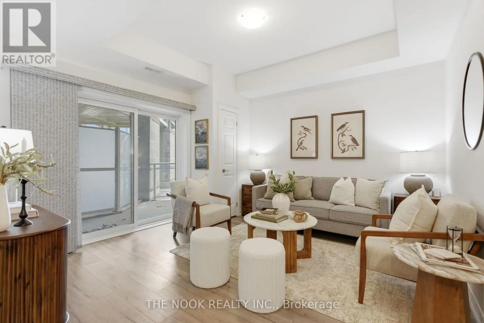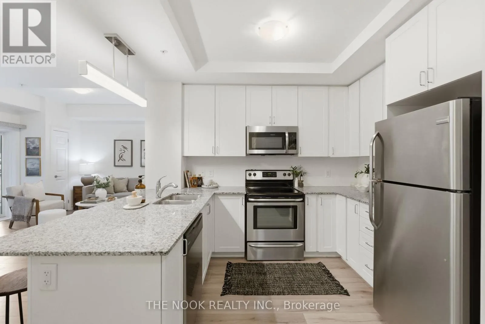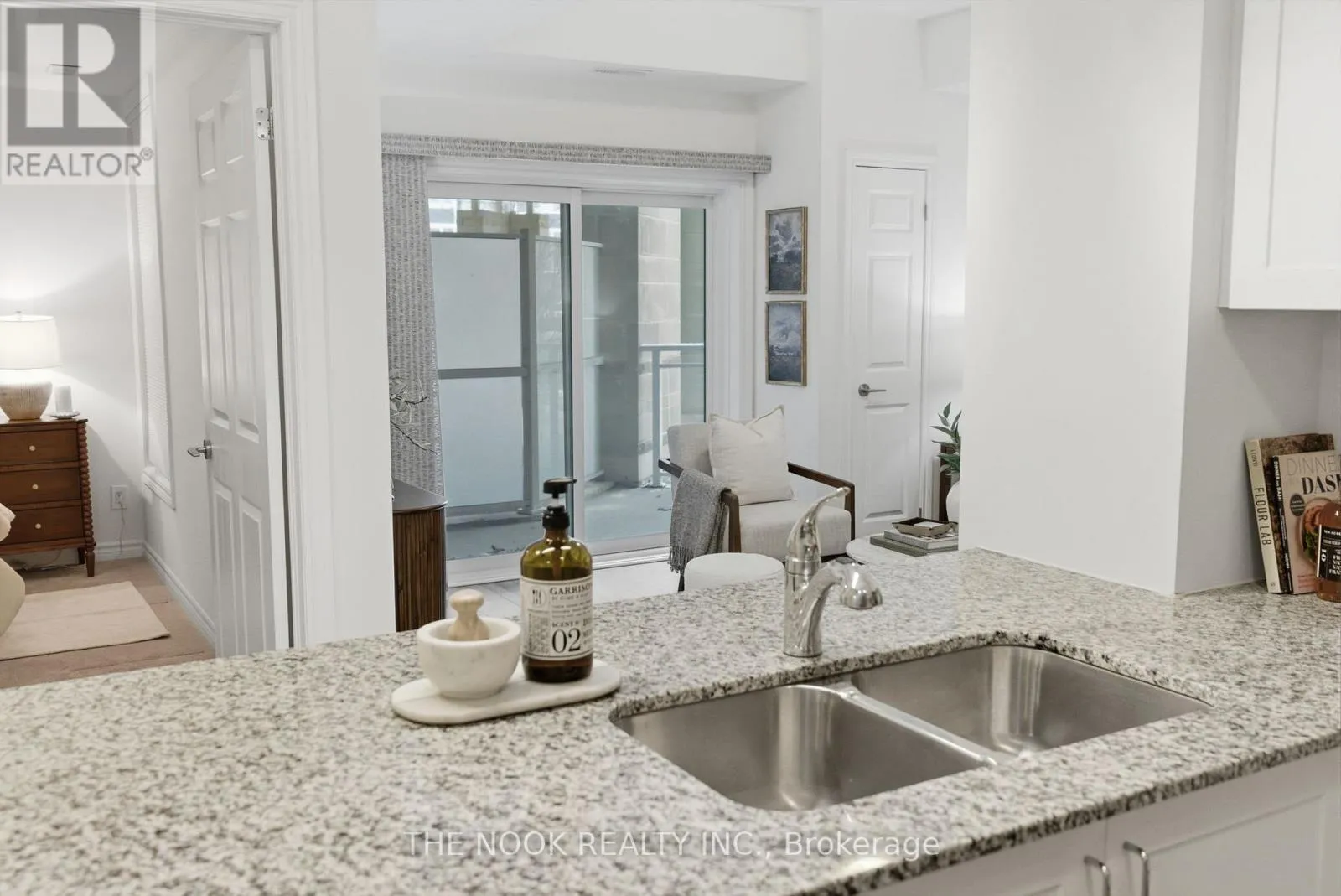 Cross Streets: Victoria/Gordon. ** Directions: Victoria to Gordon St. Stunning Main Floor Condo At Whitby's Harbourside Condominiums. 775 Sq Ft + Terrace. This One Bedroom Plus Den Shows Like A Model Suite. Coffered Ceilings, Spacious Kitchen With Granite Counters, Combined Living/Dining Room With W/O To private Terrace. Separate Den Perfect For A 2nd Bedroom Or Office. 1 Owned Parking Space And Locker. Includes Fridge, Stove, Dishwasher, B/I Microwave, Stackable Washer/Dryer, All Existing Light Fixtures And Window Coverings. Excellent Lakeside Location, Close To Marina, Park, Shopping, Health Care Facilities, The Abilities Centre, Whitby Go And 401. (id:27476)