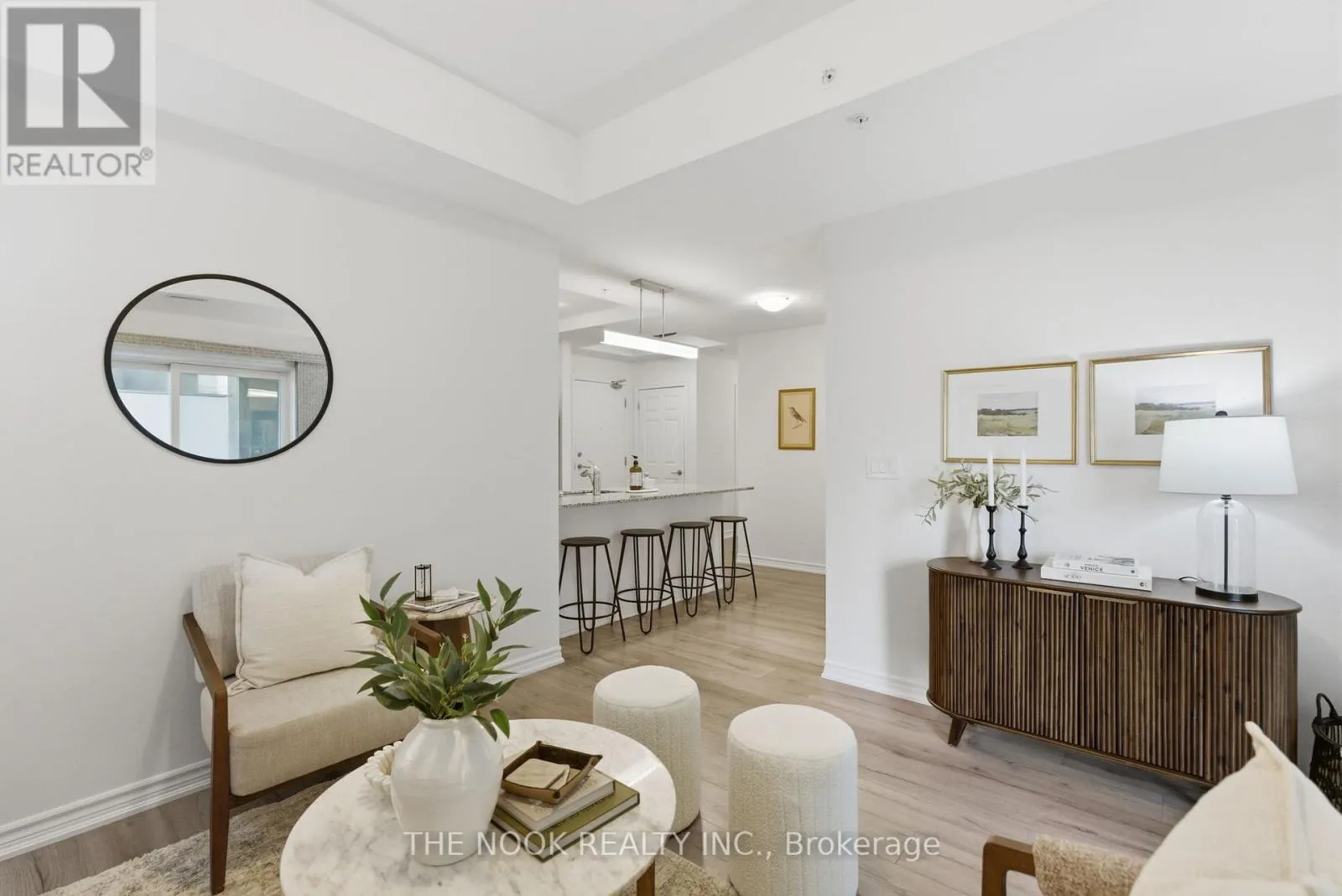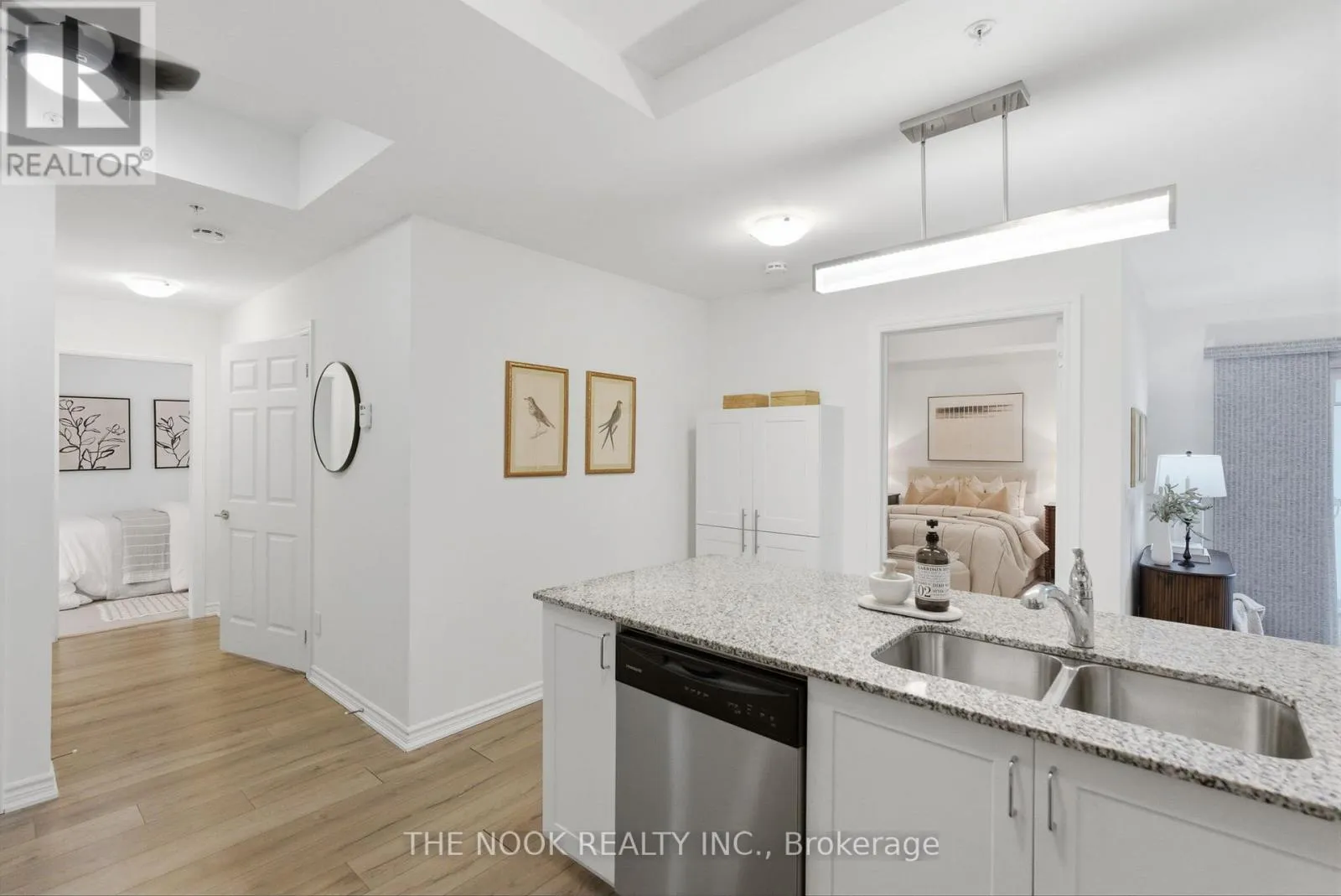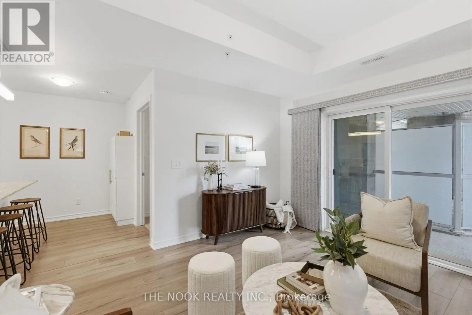 Cross Streets: Victoria/Gordon. ** Directions: Victoria to Gordon St. Stunning Main Floor Condo At Whitby's Harbourside Condominiums. 775 Sq Ft + Terrace. This One Bedroom Plus Den Shows Like A Model Suite. Coffered Ceilings, Spacious Kitchen With Granite Counters, Combined Living/Dining Room With W/O To private Terrace. Separate Den Perfect For A 2nd Bedroom Or Office. 1 Owned Parking Space And Locker. Includes Fridge, Stove, Dishwasher, B/I Microwave, Stackable Washer/Dryer, All Existing Light Fixtures And Window Coverings. Excellent Lakeside Location, Close To Marina, Park, Shopping, Health Care Facilities, The Abilities Centre, Whitby Go And 401. (id:27476)