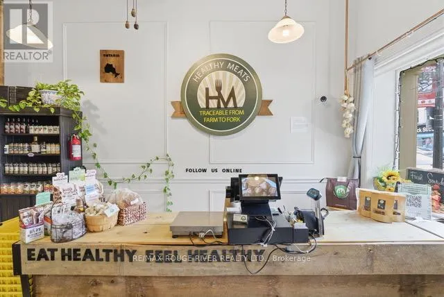 Cross Streets: Brock and Dundas. ** Directions: North East side of Brock and Dundas. Exceptional opportunity to own a well-established and highly reputable retail business in the heart of downtown Whitby. Healthy Meats, the GTAs largest retailer of organic and traditionally raised meats, has been serving a devoted customer base for over 22 years. Known for its premium selection of antibiotic and hormone free meats from trusted local farms, this business is perfectly positioned in the booming market for sustainable, health-conscious food. With increasing consumer demand for ethically sourced, clean food products, Healthy Meats offers a strong foundation for future growth. A new owner will take over a recognized brand with deep community roots, steady revenue, and exciting franchise potential. Poised for continued success, this turnkey operation offers strong growth potential with opportunities to expand into meal kits, delivery services, and an extended product line. Ideal for entrepreneurs or investors looking to enter the thriving health food sector with a proven, established business. Water is included in the lease. Basement storage permitted. Hot water tank is owned and maintained by the landlord adding further value and ease of operation. Don't miss this rare chance to acquire a thriving business with franchise potential in a prime location. (id:27476)