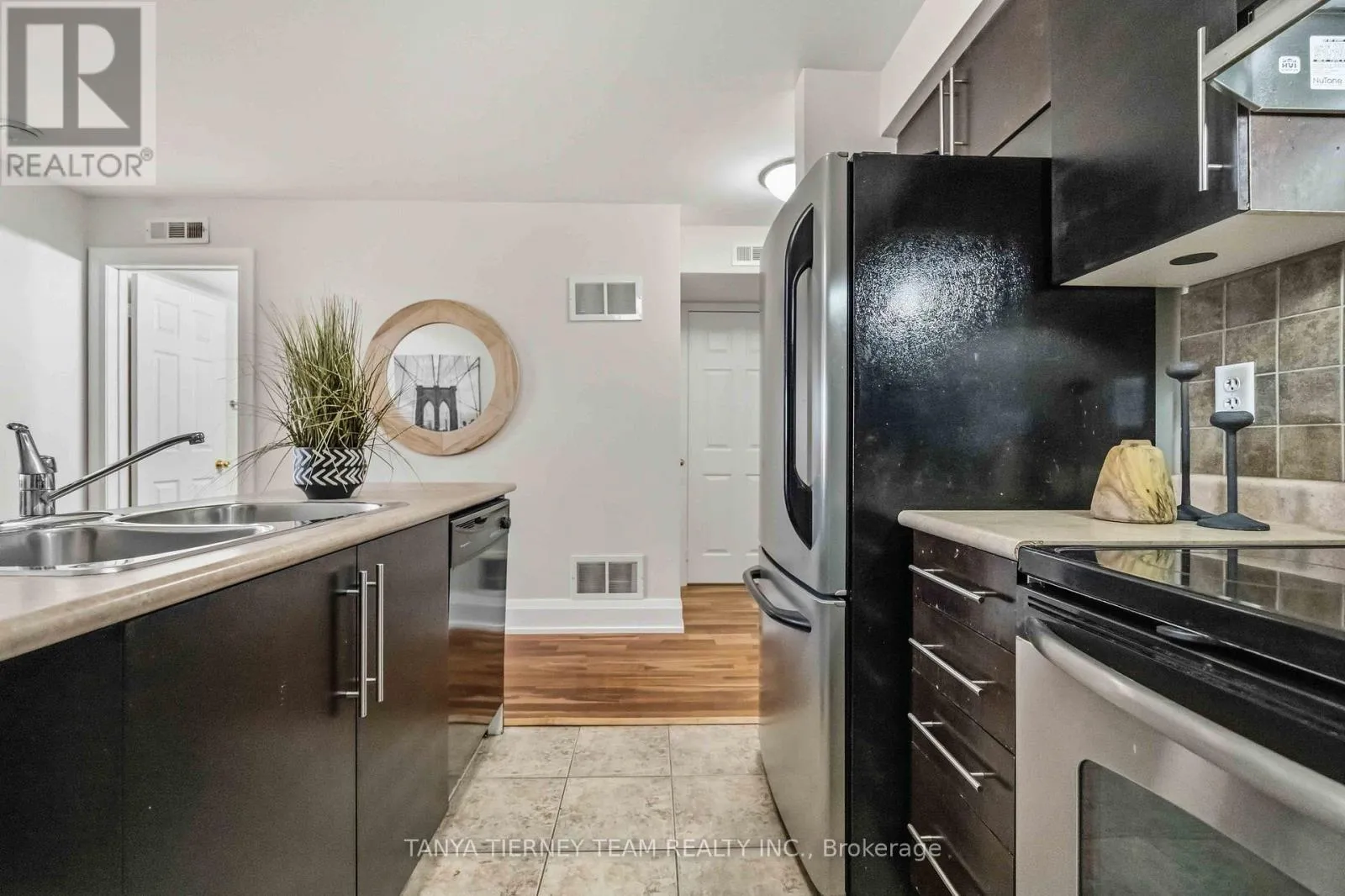 Dryden Blvd & Brock St Updated and well-maintained condo stacked townhome featuring a bright, open-concept layout ideal for comfortable family living and effortless entertaining. The spacious living and dining areas flow seamlessly together and showcase soaring vaulted cathedral ceilings, hardwood flooring, and a sliding glass walkout to the patio-perfect for relaxing outdoors or hosting guests. The kitchen is both stylish and functional, complete with ceramic flooring and a custom backsplash. The primary bedroom offers a peaceful retreat with a walk-in closet and sunny south-facing views. The second bedroom is generously sized and features a double closet, making it ideal for family, guests, or additional living space. Convenient second-level loft provides excellent flexibility as a home office, family room, or reading area. A rare bonus: this home includes two underground parking spots, offering year-round convenience and protection. Move-in ready and located in a desirable neighbourhood close to parks, schools, recreation centres, transit, and all major amenities. Low maintenance fees include water, snow removal, and grass cutting. (id:27476)