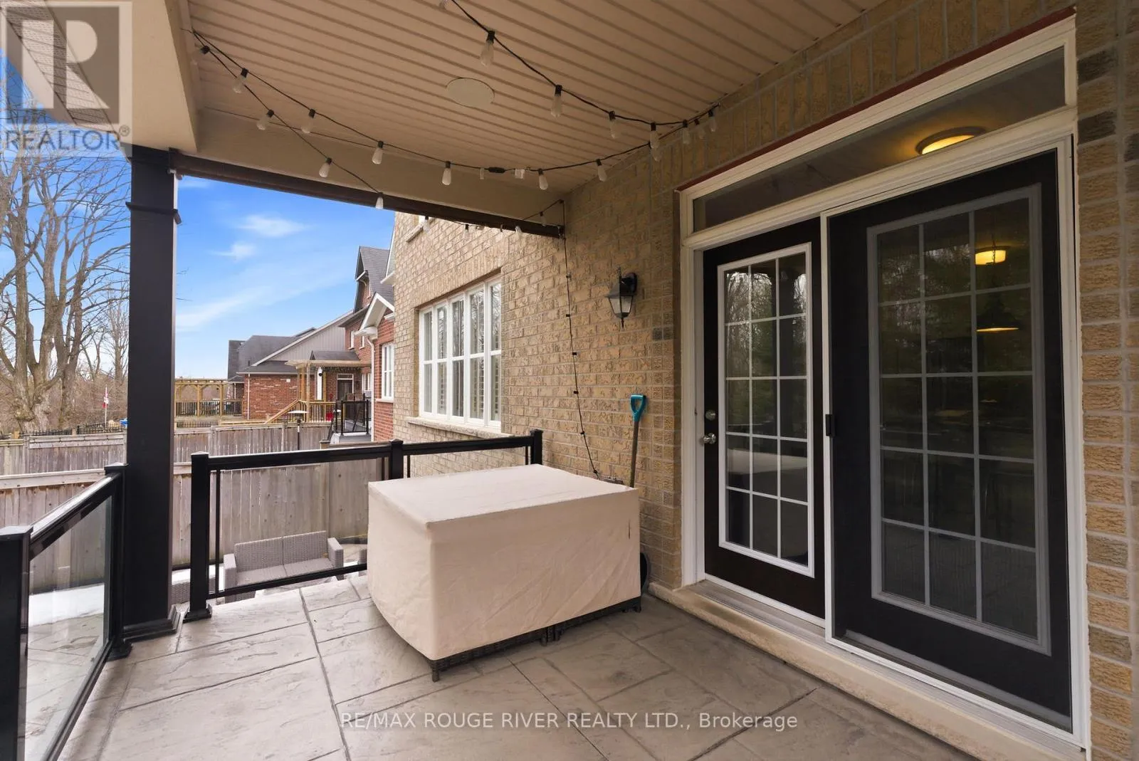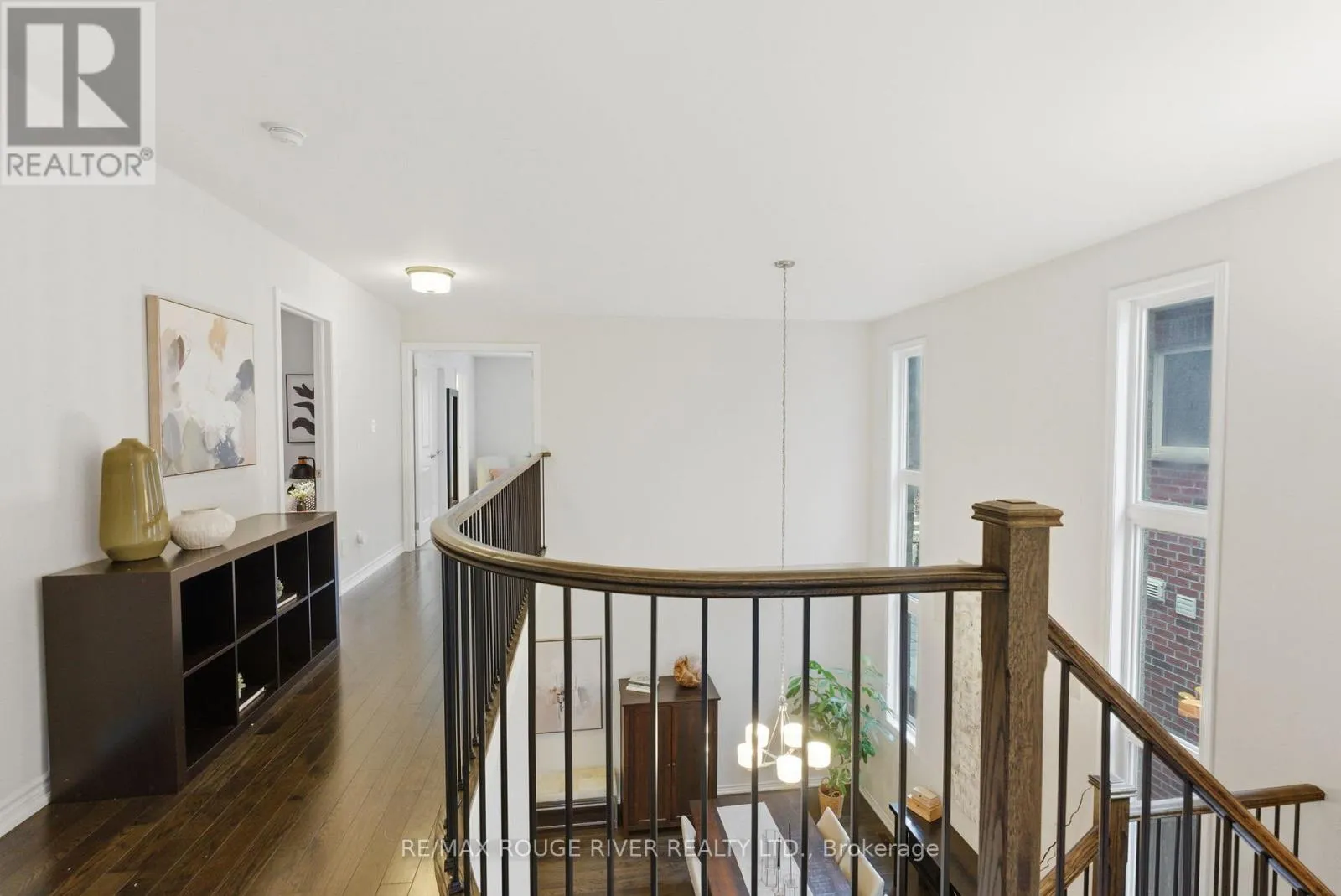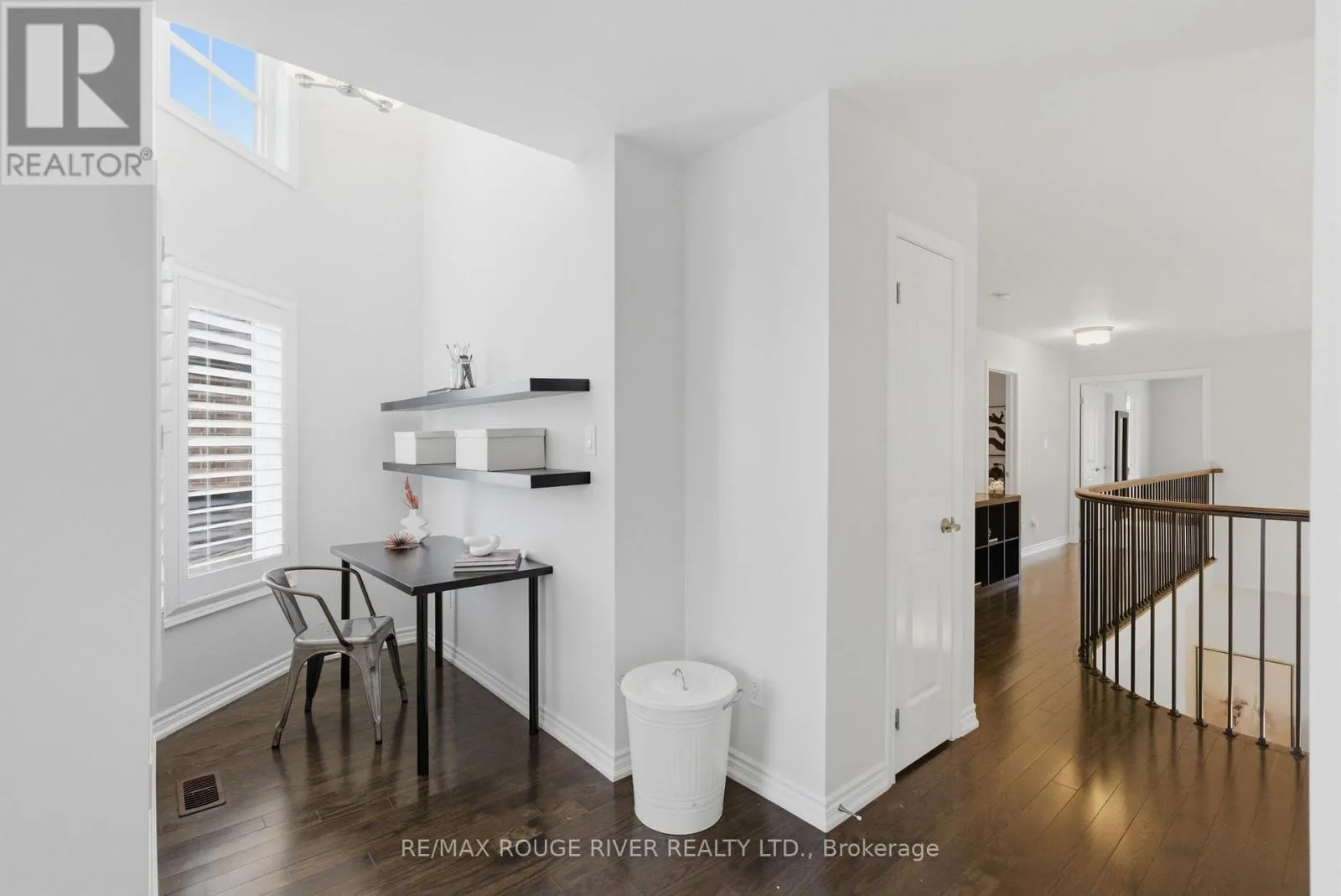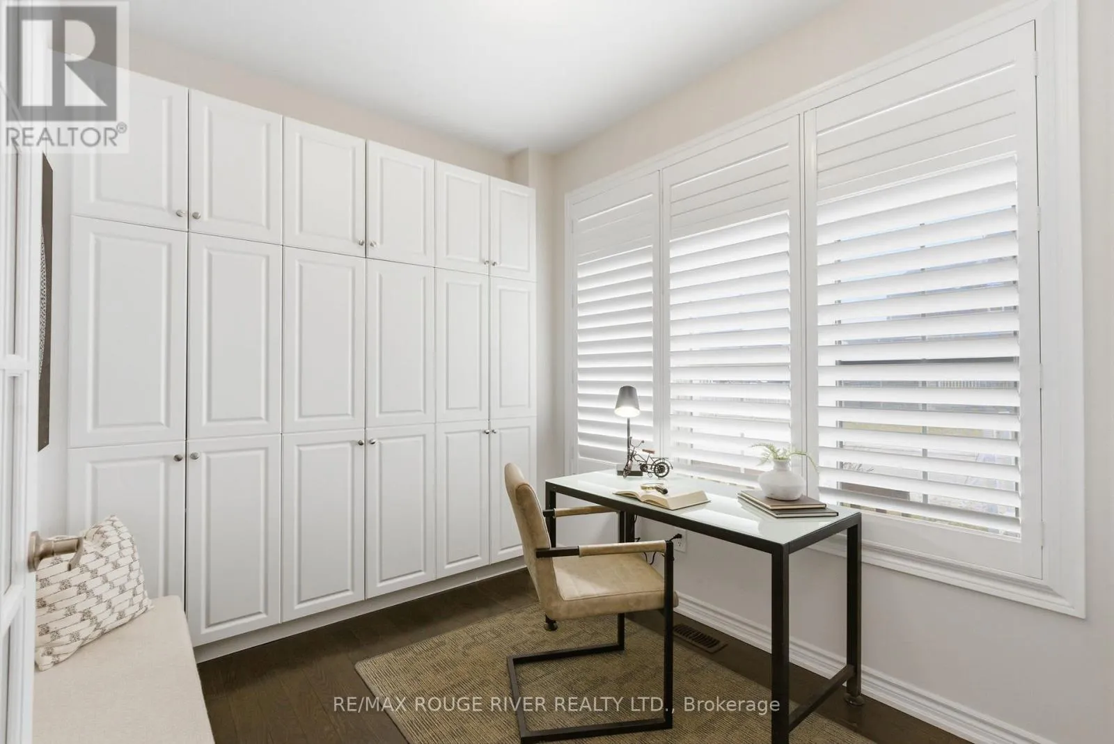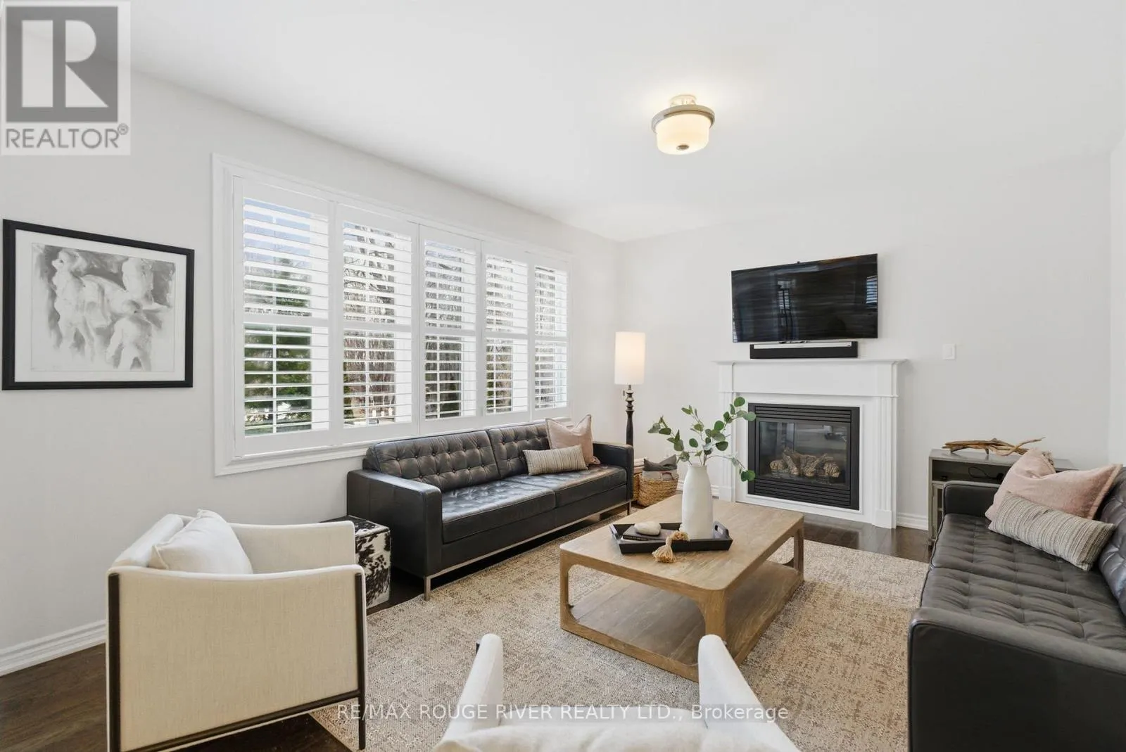 Cross Streets: Columbus Rd E/Wycombe St. ** Directions: From Columbus go South on Wycombe then East on Burning Springs Pl. Welcome to this beautiful home nestled in a quiet, family-friendly neighbourhood with no neighbours behind, offering privacy and a peaceful setting. This home impresses with its inviting curb appeal and thoughtfully designed interior, featuring hardwood flooring and California shutters throughout. Step inside to a welcoming main floor where a private front office overlooks the front yard, complete with a French door and built-in storage. The elegant dining room features large windows and soaring ceiling height. At the heart of the home is the spacious family-sized kitchen, designed for gathering and functionality. It features an extra large centre island with a breakfast bar that comfortably seats six, stainless steel appliances, a custom backsplash and a walkout to the backyard. The adjoining living room offers a warm and inviting space with a cozy fireplace, creating the perfect place to relax. The primary bedroom provides a peaceful retreat with broadloom flooring, a walk-in closet and a luxurious 5-piece ensuite. Two additional bedrooms offer double closets and share a convenient 5-piece semi-ensuite. A versatile loft area with hardwood flooring provides the perfect space for a study nook and features a walkout to a private balcony. The upper-level laundry room adds everyday convenience. The finished lower level extends the living space with a large recreation room featuring broadloom flooring, a window for natural light, and a full 4-piece bathroom. An additional bedroom with a closet and window makes an ideal guest room. Step outside to a private backyard with no neighbours behind-an ideal setting for relaxing or entertaining. Interior and exterior Sonos speakers allow you to enjoy music throughout the home and yard. Two natural gas connections-one on the porch for a barbecue and another at the rear of the yard for a gas outdoor fireplace make outdoor gatherings effortless. Set in a quiet, family-friendly community, this home blends comfort and functionality. (id:27476)