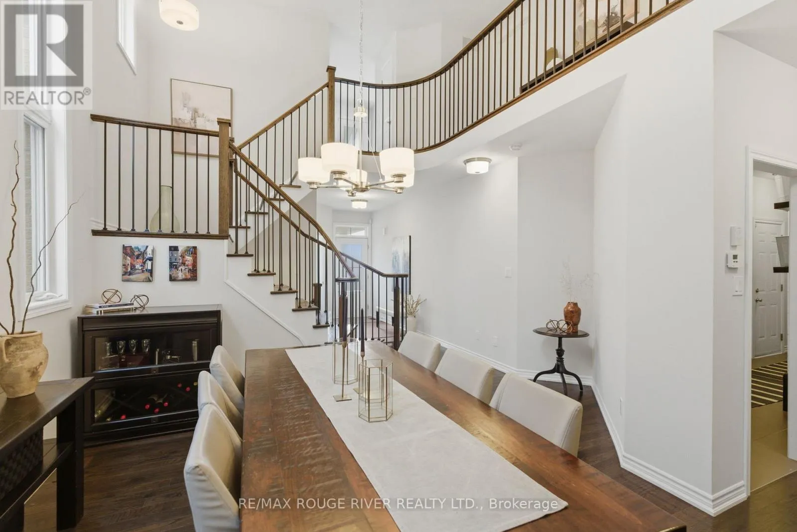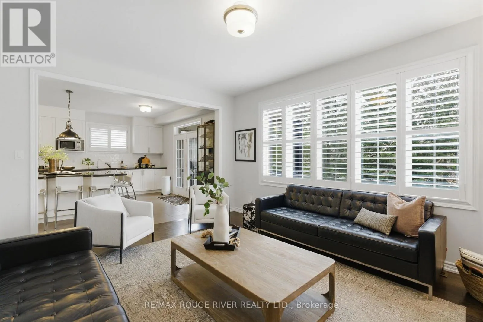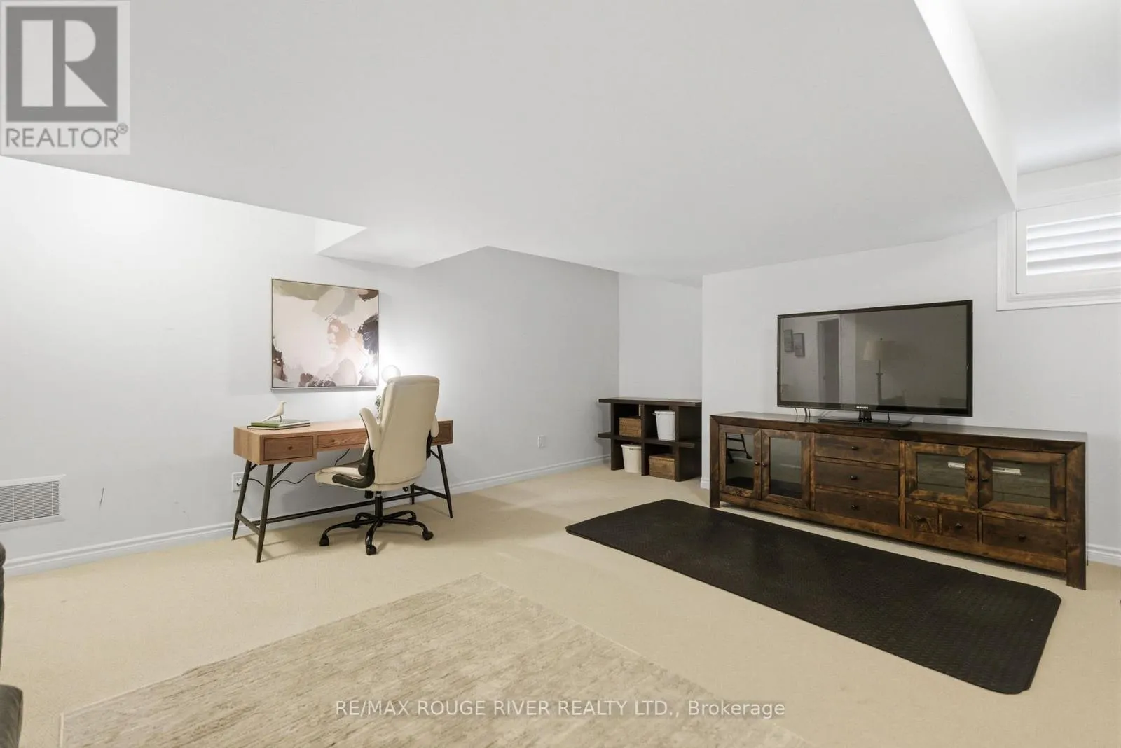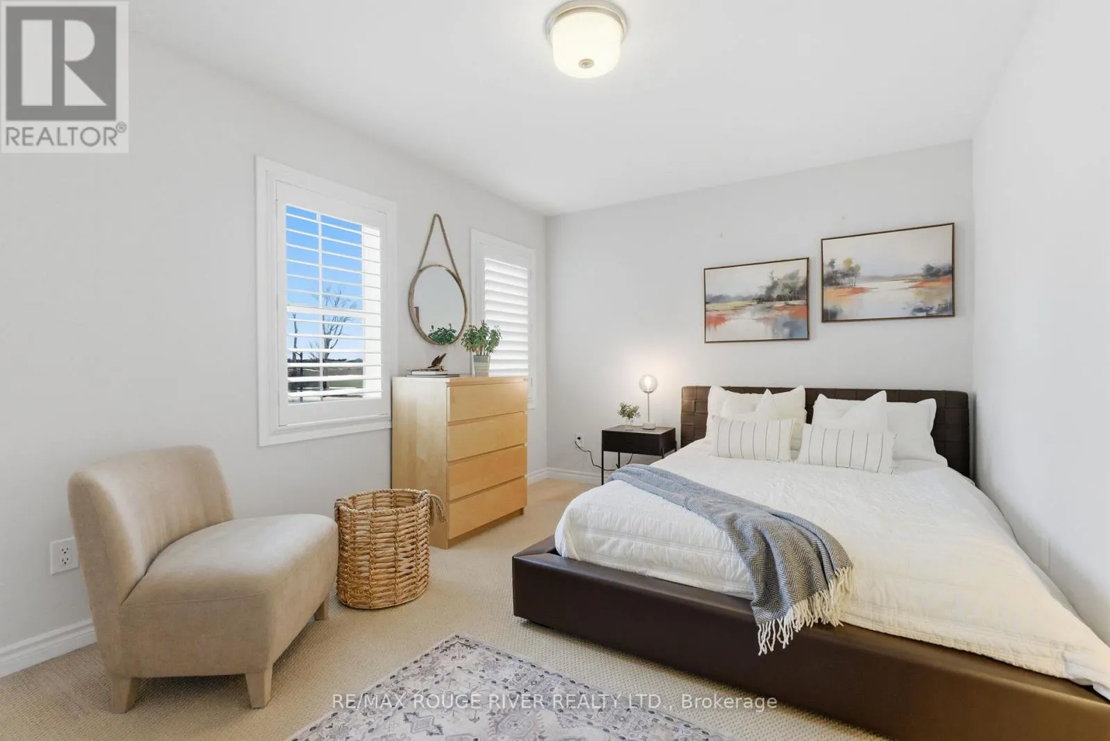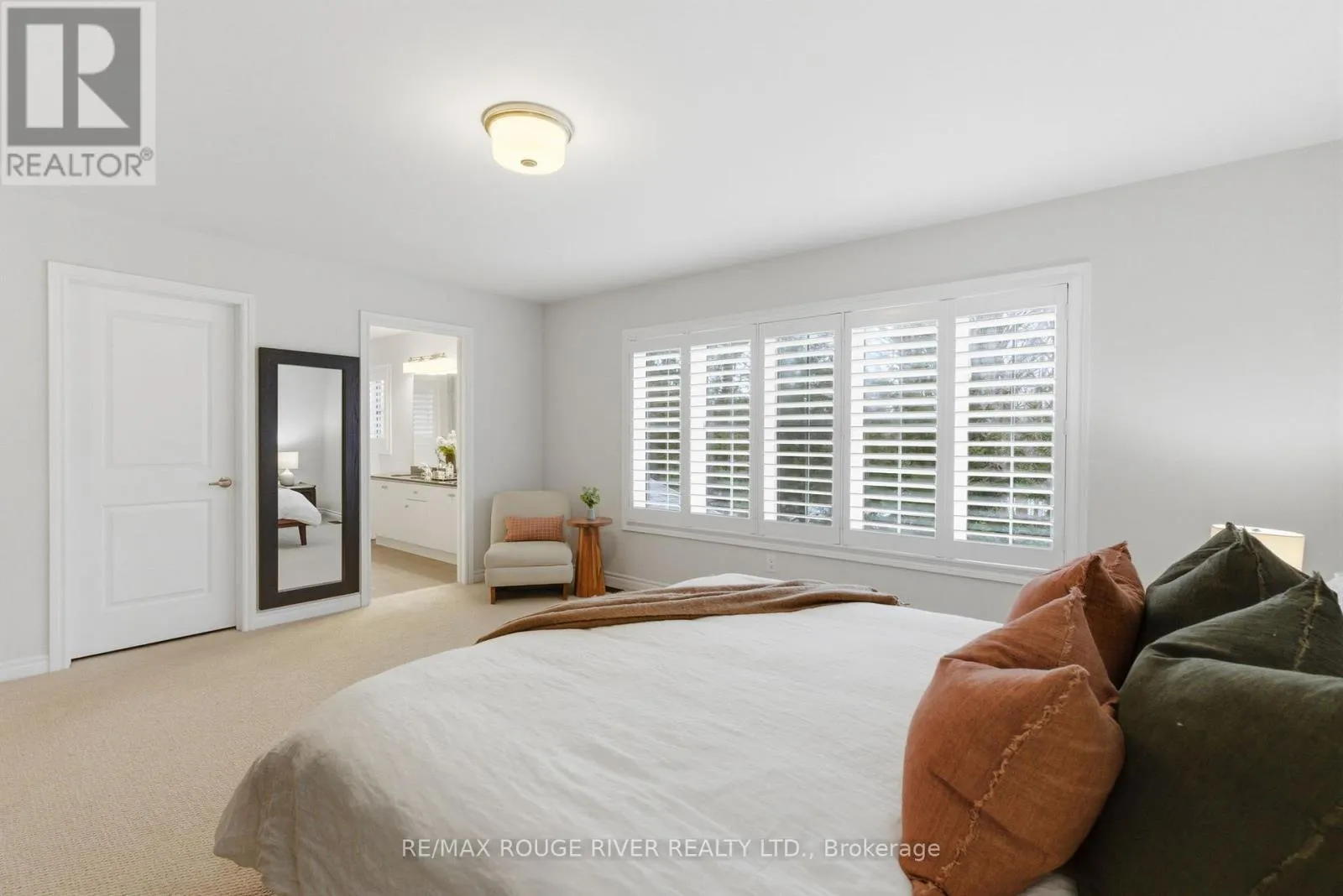 Cross Streets: Columbus Rd E/Wycombe St. ** Directions: From Columbus go South on Wycombe then East on Burning Springs Pl. Welcome to this beautiful home nestled in a quiet, family-friendly neighbourhood with no neighbours behind, offering privacy and a peaceful setting. This home impresses with its inviting curb appeal and thoughtfully designed interior, featuring hardwood flooring and California shutters throughout. Step inside to a welcoming main floor where a private front office overlooks the front yard, complete with a French door and built-in storage. The elegant dining room features large windows and soaring ceiling height. At the heart of the home is the spacious family-sized kitchen, designed for gathering and functionality. It features an extra large centre island with a breakfast bar that comfortably seats six, stainless steel appliances, a custom backsplash and a walkout to the backyard. The adjoining living room offers a warm and inviting space with a cozy fireplace, creating the perfect place to relax. The primary bedroom provides a peaceful retreat with broadloom flooring, a walk-in closet and a luxurious 5-piece ensuite. Two additional bedrooms offer double closets and share a convenient 5-piece semi-ensuite. A versatile loft area with hardwood flooring provides the perfect space for a study nook and features a walkout to a private balcony. The upper-level laundry room adds everyday convenience. The finished lower level extends the living space with a large recreation room featuring broadloom flooring, a window for natural light, and a full 4-piece bathroom. An additional bedroom with a closet and window makes an ideal guest room. Step outside to a private backyard with no neighbours behind-an ideal setting for relaxing or entertaining. Interior and exterior Sonos speakers allow you to enjoy music throughout the home and yard. Two natural gas connections-one on the porch for a barbecue and another at the rear of the yard for a gas outdoor fireplace make outdoor gatherings effortless. Set in a quiet, family-friendly community, this home blends comfort and functionality. (id:27476)