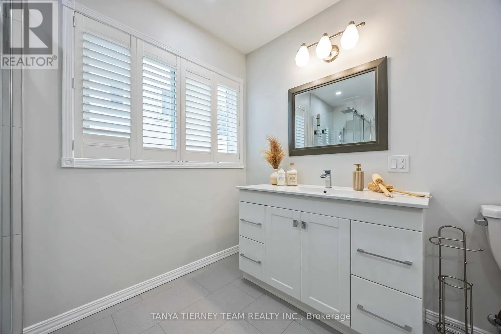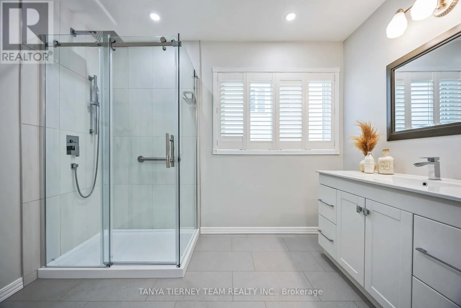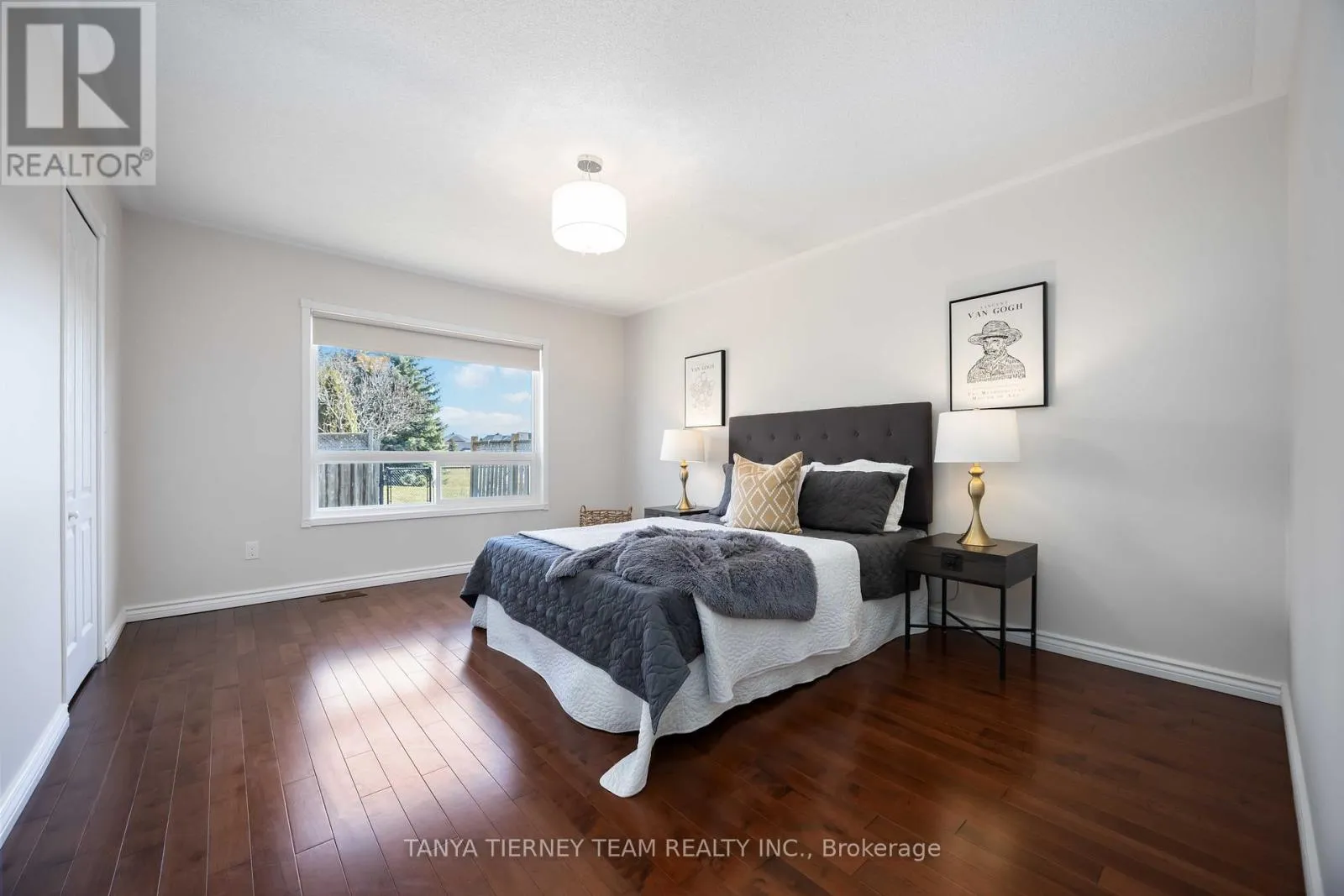Thickson Rd & Blackfriar Ave Nestled in a highly sought-after Brooklin community & backing onto Kinross Park! This all brick Cachet built bungalow showcases 'The Thickson Estate' model & offers 2+1 bedrooms, 2 bathrooms & a finished basement with exceptional storage. It's inviting curb appeal leads into a sun-filled, open-concept interior featuring hardwood floors throughout the formal living/dining rooms & family room with sliding glass door to the fully fenced backyard with interlocking patio & gated access to the park behind - perfect for entertaining. The family sized kitchen is complete with a pantry, ceramic floors, ceramic backsplash, breakfast bar & breakfast area. The main floor primary retreat features a walk-in closet & a recently renovated 3-piece ensuite with a large glass rain shower, california shutters & pot lights. The second bedroom offers a large window, double closet & semi-ensuite access to a 4-piece bath. The finished basement adds even more living space with a spacious rec room with electric fireplace, a third bedroom, laundry/utility room & tons of storage. Just steps to schools, parks, transit, downtown Brooklin shops & with easy access to Highway 407, this is an ideal home for commuters & families alike! (id:27476)