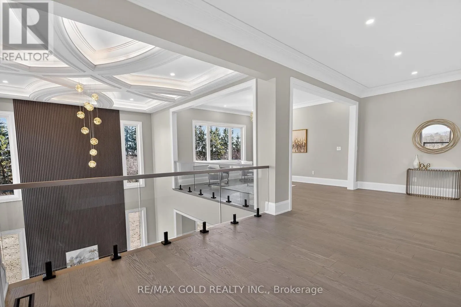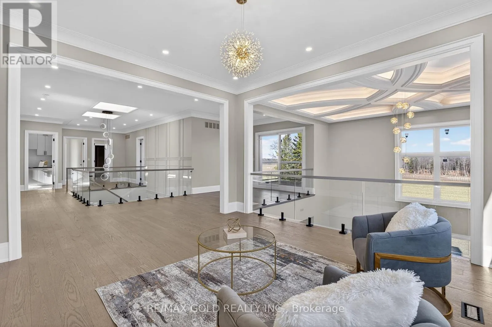 Coronation Road/ Columbus Road Brand New Custom-Built Luxury Estate On Premium 2.25-Acre East-Facing Lot !! Approx. 8,500 Sq Ft Of Finished Living Space. Featuring 4+1 Bedrooms And 8 Bathrooms With Exceptional Craftsmanship And High-End Finishes Throughout. Main Floor Offers 12-Ft Ceilings And Grand Open-Concept Layout With Stunning 24-Ft Coffered Ceiling In Living Room. Gourmet Kitchen With Premium Appliances And Modern Finishes Open To Spacious Family Room With Fireplace And Backyard Views. Main Floor Office Or Bedroom With Ensuite. Second Floor Boasts 10-Ft Ceilings. Luxurious Primary Suite With Private Balcony, 6-Piece Spa-Like Ensuite And Custom Walk-In Closet. All Additional Bedrooms Feature Ensuites And Walk-In Closets. Includes Sitting Area, Walkout Balcony And Second-Floor Laundry. Fully Finished Basement With 10-Ft Ceilings Featuring Bar, Media Room, Gym And Additional Bedroom With Ensuite. Upgrades Include Heated Floors In All Bathrooms, Spray Foam Insulation On Exterior Walls And Modern Flat Roof Design. 3-Car Garage With Extra-Height Doors And Extended Driveway Accommodating 15-20 Vehicles. Conveniently Located Near Hwy 407/412 And Golf Courses. Must See..... (id:27476)