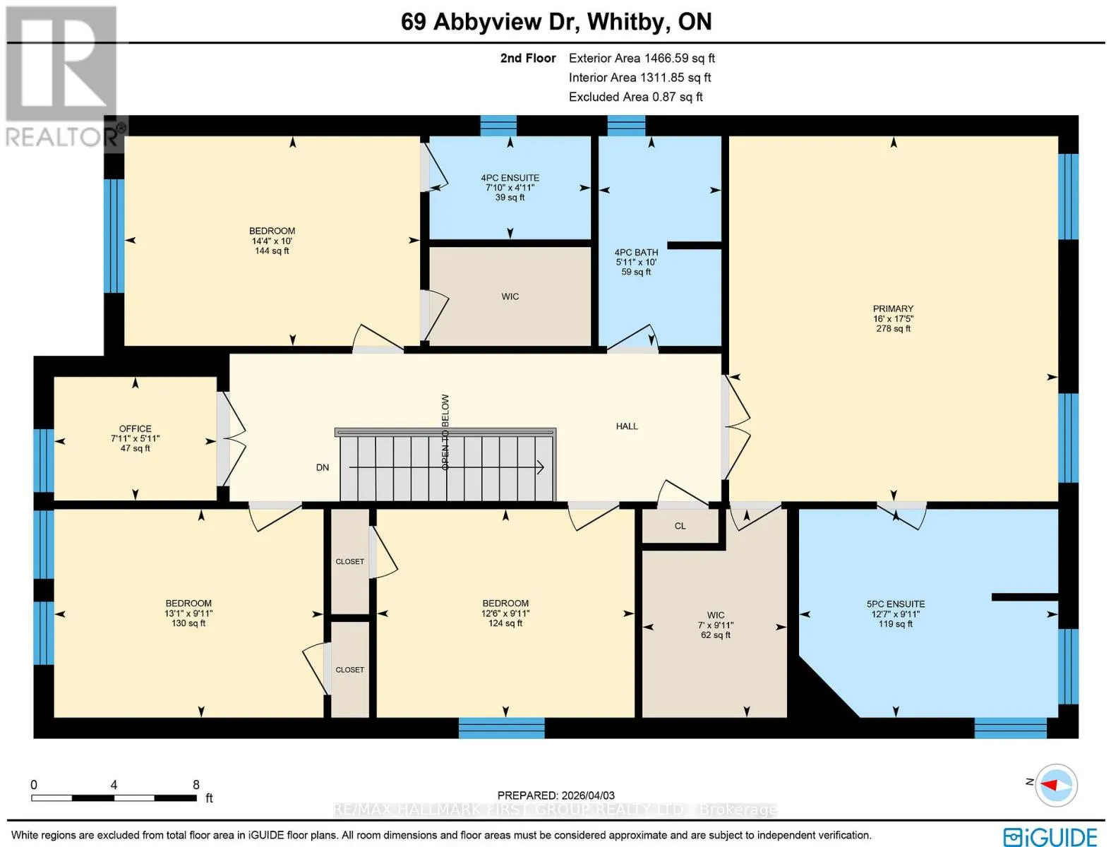 Cross Streets: Taunton Rd and Baycliffe Dr. ** Directions: Baycliffe Dr to Nieuwendyk St, west to Abbyview Dr. south on Abbyview. Welcome to 69 Abbyview Dr in Whitby's sought-after Williamsburg community! This stunning all-brick 4+1 bed, 5-bath detached home offers 2,609 sq ft of carpet-free living space with a double-car garage and parking for 6. The bright main floor features hardwood floors throughout, a spacious combined living and dining room perfect for entertaining, and a warm and inviting family room with a gas fireplace. The kitchen impresses with granite counters, a breakfast bar, and stainless steel appliances, flowing into the breakfast area with a walk-out to the deck - ideal for summer gatherings.Upstairs offers a luxurious primary retreat with a 5-pc ensuite and walk-in closet, a second bedroom with its own 4-pc ensuite and walk-in closet, two additional bedrooms, and a bonus office with French doors - perfect for working from home. The finished basement adds incredible flexibility with a second kitchen, spacious rec room, 5th bedroom, and a 3-pc bath, making it an ideal in-law or nanny suite. Brand new furnace installed March 2026. Main floor laundry adds everyday convenience. Situated minutes to top-rated schools, parks, shopping, easy access to Hwy 412 & 407 and 401 for commuters, this exceptional family home checks every box. Don't miss your opportunity! (id:27476)