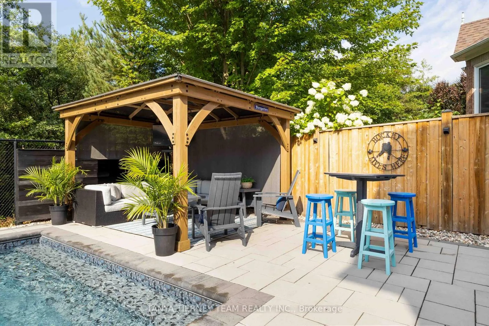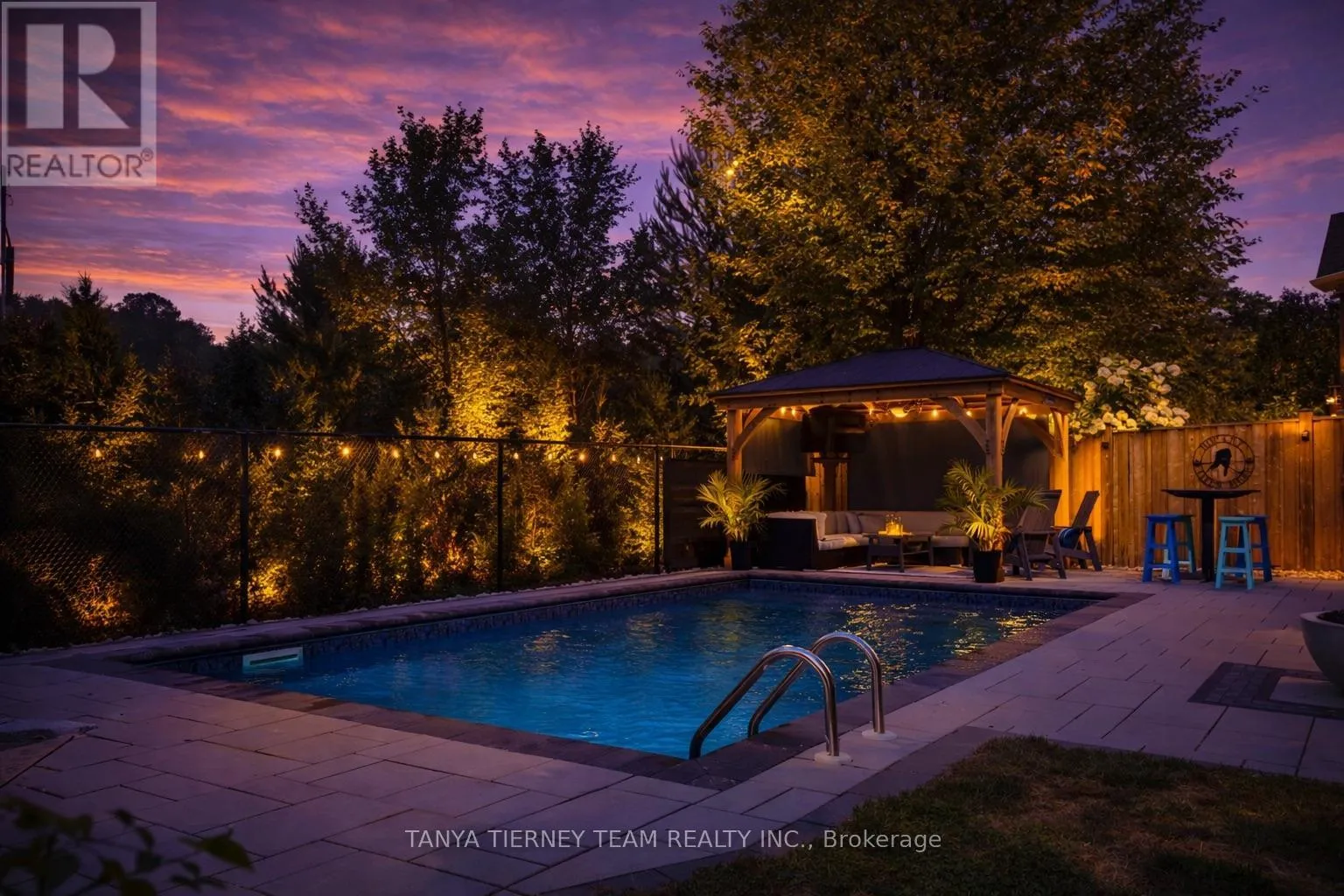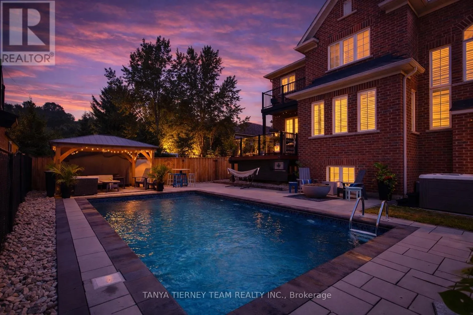 E. Of Thickson/S. Of Carnwith Tranquil ravine setting with inground pool, hot tub & a private backyard oasis! Beautifully upgraded Fernbrook built, 3+1 bedroom, 4 bath home offering exceptional curb appeal with professionally landscaped front & back gardens. The backyard is designed for entertaining featuring a timber gazebo, large deck, interlocking patio, inground saltwater pool, hot tub & scenic treed ravine views providing ultimate privacy. The inviting foyer welcomes you to a sun filled open concept main floor with extensive crown moulding, wainscoting & california shutters throughout. Convenient main floor office ideal for working from home or study space. Main floor laundry room with direct garage access. Gourmet kitchen showcases Silestone quartz countertops, Raywal cabinetry, ceramic backsplash, stainless steel appliances, pantry with custom pull out shelves & centre island with breakfast bar. Spacious breakfast area offers a garden door walkout to the entertainer's deck with panoramic ravine views. The impressive great room features soaring cathedral ceilings, gas fireplace with custom mantle & elegant detailing - perfect for family gatherings.Upstairs offers 3 generous bedrooms. The primary retreat features a huge walk-in closet & private balcony overlooking the ravine - perfect for morning coffee. Spa inspired 5 piece ensuite includes soaker tub, large glass shower & granite vanity. Additional bedrooms are spacious & bright with well appointed ensuite baths. Partially finished basement includes a 4th bedroom with barn door entry & a bright rec room with oversized windows offering additional living space for growing families. Situated in a highly desirable community just steps to parks, schools, trails & downtown Brooklin shops. A rare opportunity combining luxury finishes, functional family layout & resort style outdoor living in a premium ravine location! (id:27476)