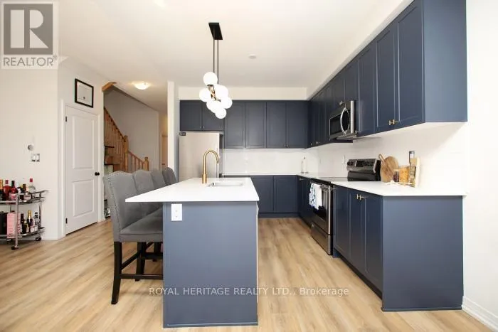 Taunton and Garden Welcome to 5 Klein Way! Situated in one of Whitby's most desirable Neighborhoods. A Bright & spacious layout with over 2200sq ft of living space and a finished lower level, 3 spacious bedrooms, 4 washrooms and a new patio and convenient second-floor laundry. Enjoy many custom upgrades! Thoughtfully designed open concept living on the main floor allows you to enjoy time with friends & family. Kitchen features White ceramic backsplash, striking navy shaker cabinets, S/S appliances, Caesarstone counters, a satin brass faucet and large Centre Island with breakfast bar. Step out to south facing, fully fenced yard. Upstairs the primary suite features a sitting area with stylish built-in cabinetry & cozy electric fireplace with dramatic feature wall, 5-piece ensuite bath & walk-in closet. Lower level features a fully finished rec room, 4-piece washroom, utility room & a storage room. Private drive with parking for 2 cars, with direct access from home to garage. Just over 2-year-old, balance of Tarion warranty. Walk to transit, parks, shops & restaurants - farm boy, LA fitness and much more...commuters will love short drive to 412, 407 and GO. Don't miss the chance to make this home yours. (id:27476)
