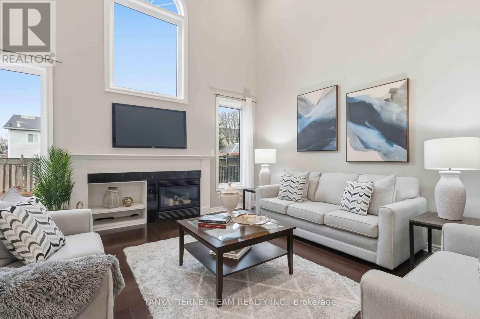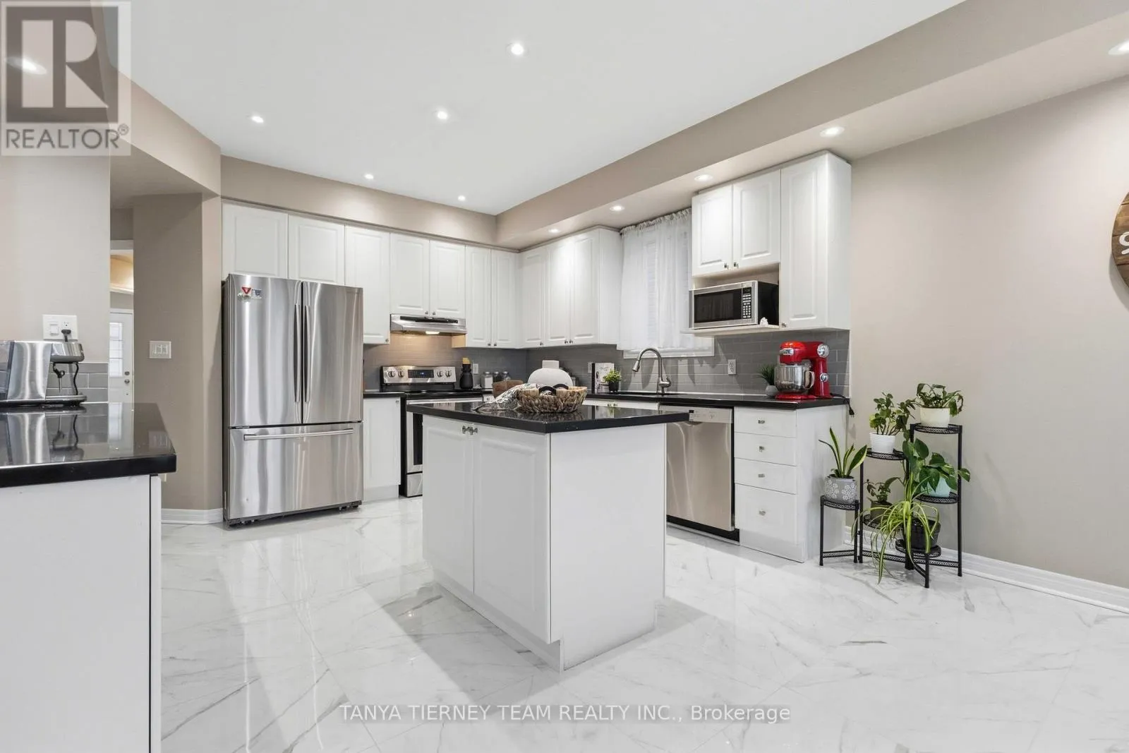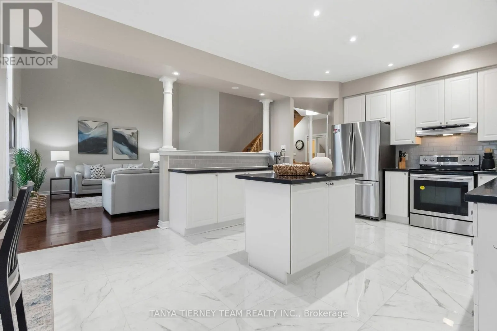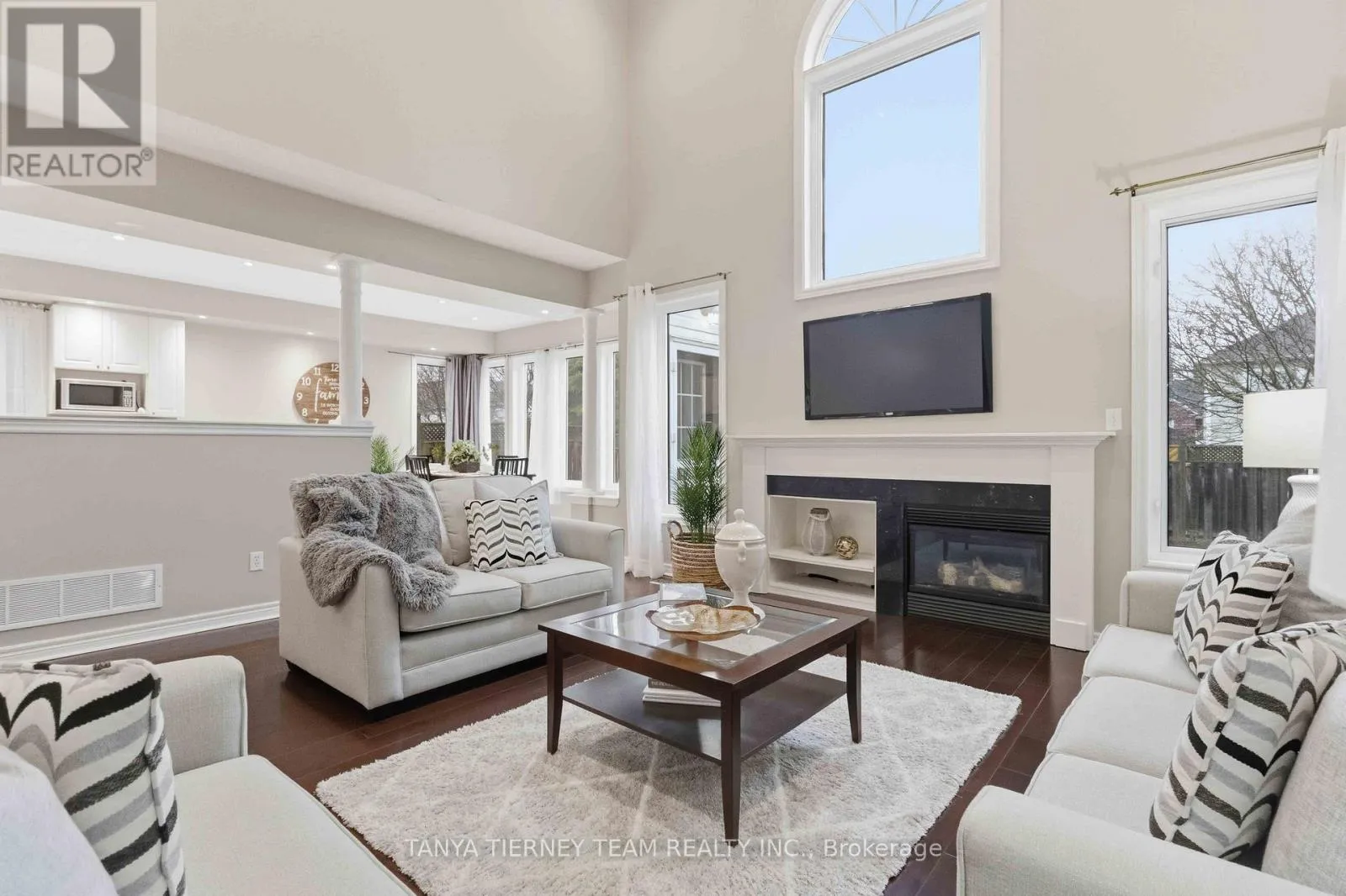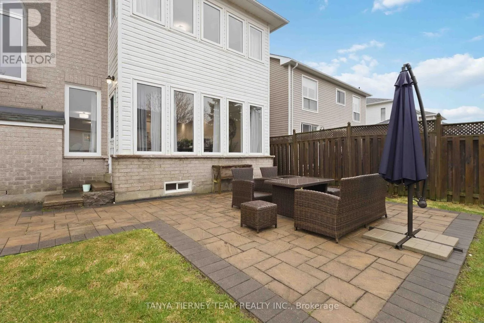 Ashburn & Holsted Rd Welcome to this stunning McQuay model offering over 4+1 bedrooms in a beautifully designed family home, featuring exceptional curb appeal with an interlocking walkway and charming covered front porch. Step inside to an inviting open concept layout showcasing 9ft ceilings, extensive hardwood flooring, pot lighting, and elegant formal living and dining rooms highlighted by a coffered ceiling. The impressive family room is the heart of the home, featuring soaring cathedral ceilings, a cozy gas fireplace, and a striking palladium window overlooking the backyard. The gourmet kitchen is a chef's dream, complete with upgraded ceramic flooring, quartz countertops, a stylish subway tile backsplash, centre island, and stainless steel appliances. The bright breakfast area is surrounded by large windows and offers a walk-out to the beautifully landscaped, fully fenced backyard with an interlocking patio - perfect for entertaining. Convenience meets function with a main floor laundry room equipped with cabinetry. Upstairs, you'll find four spacious bedrooms, including a luxurious primary retreat featuring a walk-in closet, additional double closet, and a spa-inspired 5-piece ensuite with double vanity and a relaxing corner soaker tub. One bedroom features a semi-ensuite, while another boasts a vaulted ceiling and private balcony overlooking the front gardens. The finished basement expands your living space with an additional bedroom complete with a 3-piece ensuite and quartz vanity, a large recreation room, and plenty of storage. Ideally located just steps to schools, parks, and the charming shops of downtown Brooklin, with convenient access to transit and Highways 407/412 - perfect for commuters! (id:27476)