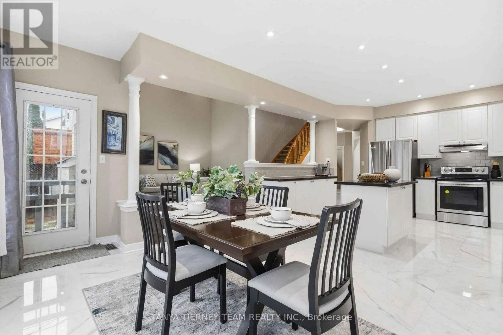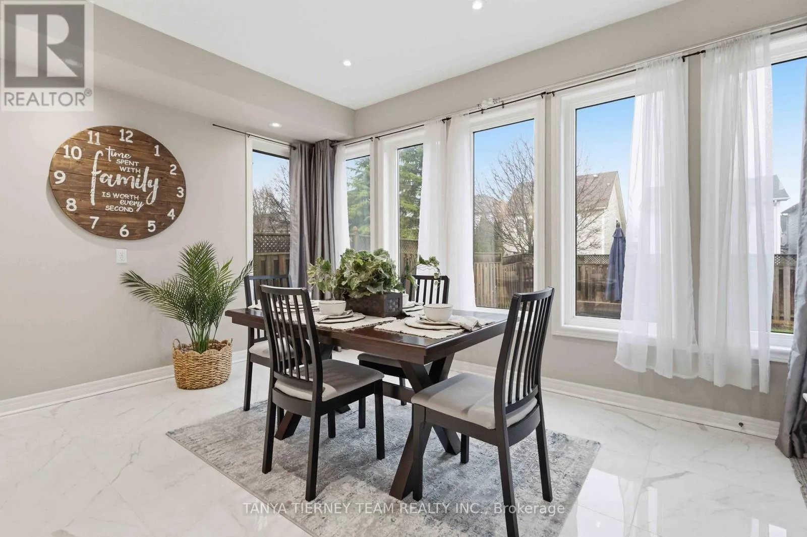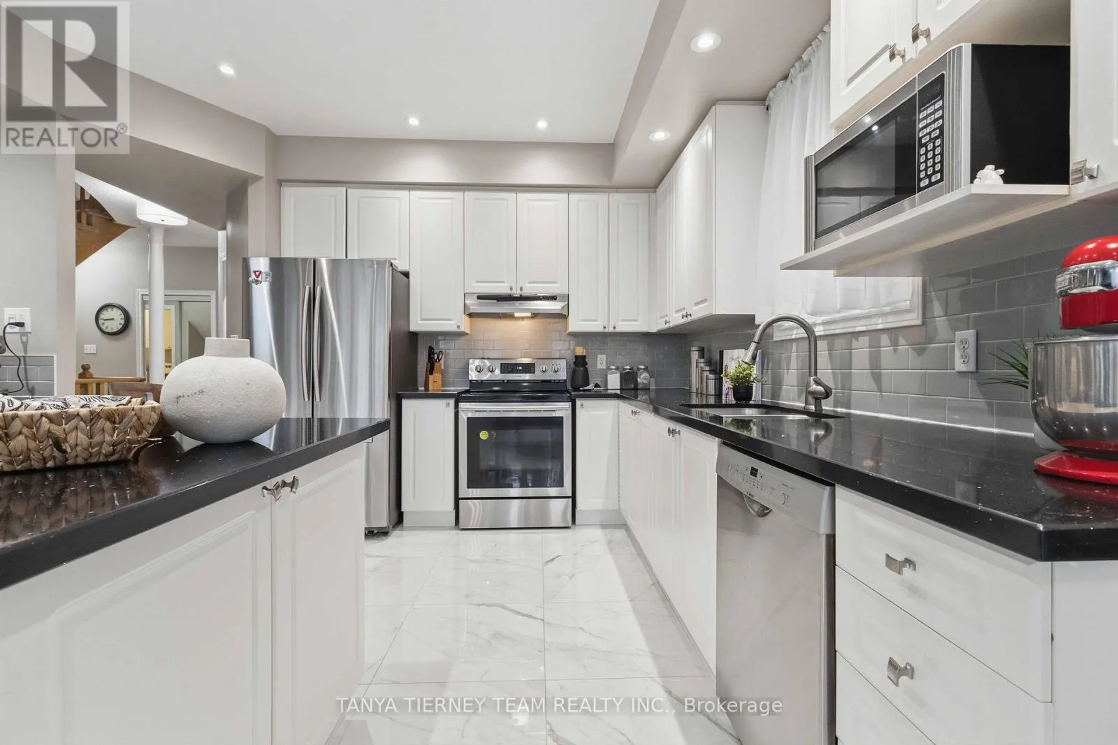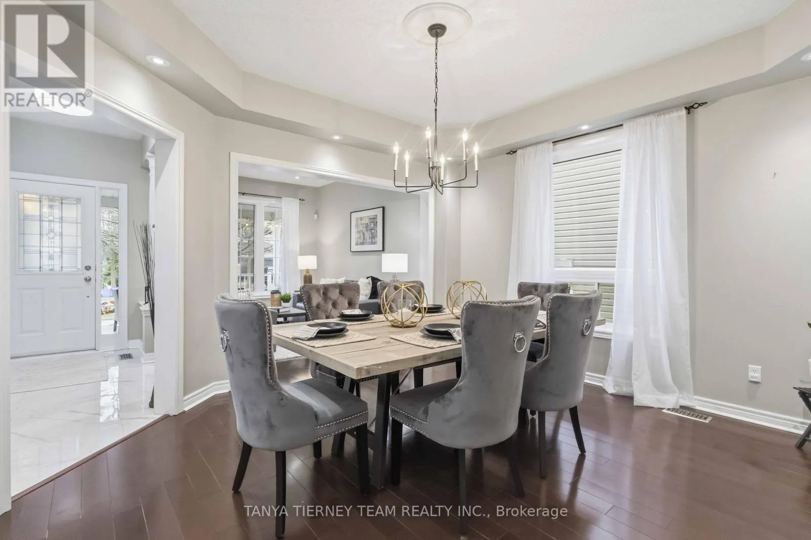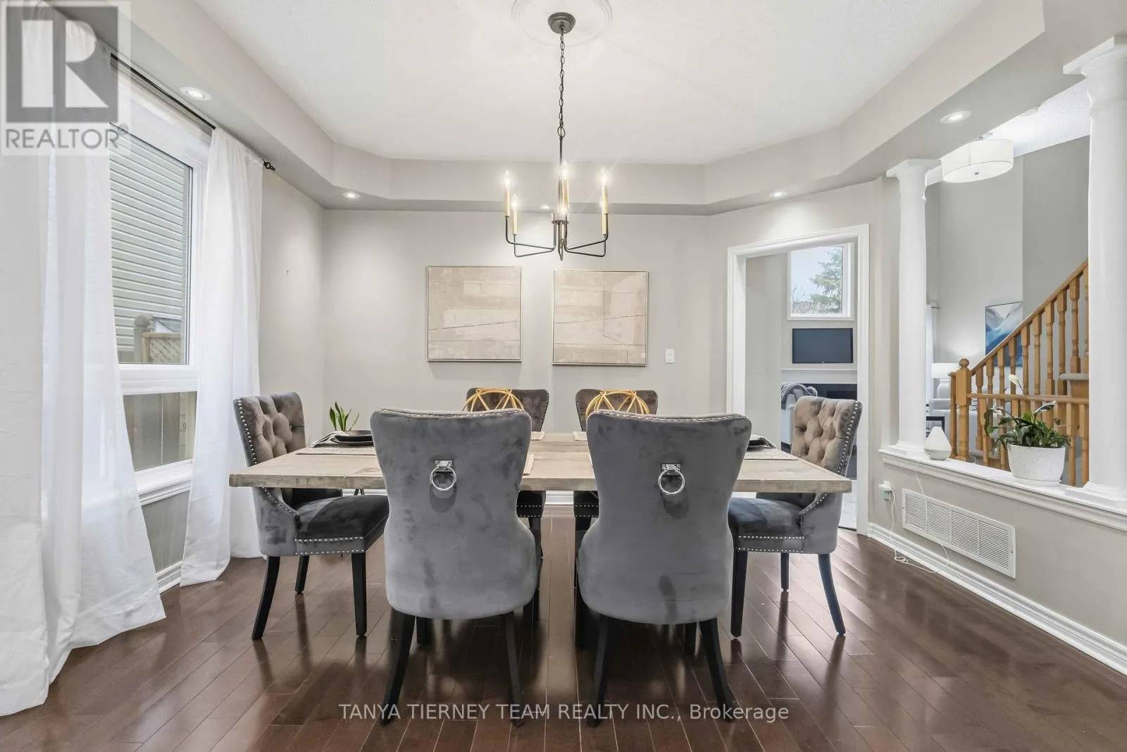 Ashburn & Holsted Rd Welcome to this stunning McQuay model offering over 4+1 bedrooms in a beautifully designed family home, featuring exceptional curb appeal with an interlocking walkway and charming covered front porch. Step inside to an inviting open concept layout showcasing 9ft ceilings, extensive hardwood flooring, pot lighting, and elegant formal living and dining rooms highlighted by a coffered ceiling. The impressive family room is the heart of the home, featuring soaring cathedral ceilings, a cozy gas fireplace, and a striking palladium window overlooking the backyard. The gourmet kitchen is a chef's dream, complete with upgraded ceramic flooring, quartz countertops, a stylish subway tile backsplash, centre island, and stainless steel appliances. The bright breakfast area is surrounded by large windows and offers a walk-out to the beautifully landscaped, fully fenced backyard with an interlocking patio - perfect for entertaining. Convenience meets function with a main floor laundry room equipped with cabinetry. Upstairs, you'll find four spacious bedrooms, including a luxurious primary retreat featuring a walk-in closet, additional double closet, and a spa-inspired 5-piece ensuite with double vanity and a relaxing corner soaker tub. One bedroom features a semi-ensuite, while another boasts a vaulted ceiling and private balcony overlooking the front gardens. The finished basement expands your living space with an additional bedroom complete with a 3-piece ensuite and quartz vanity, a large recreation room, and plenty of storage. Ideally located just steps to schools, parks, and the charming shops of downtown Brooklin, with convenient access to transit and Highways 407/412 - perfect for commuters! (id:27476)