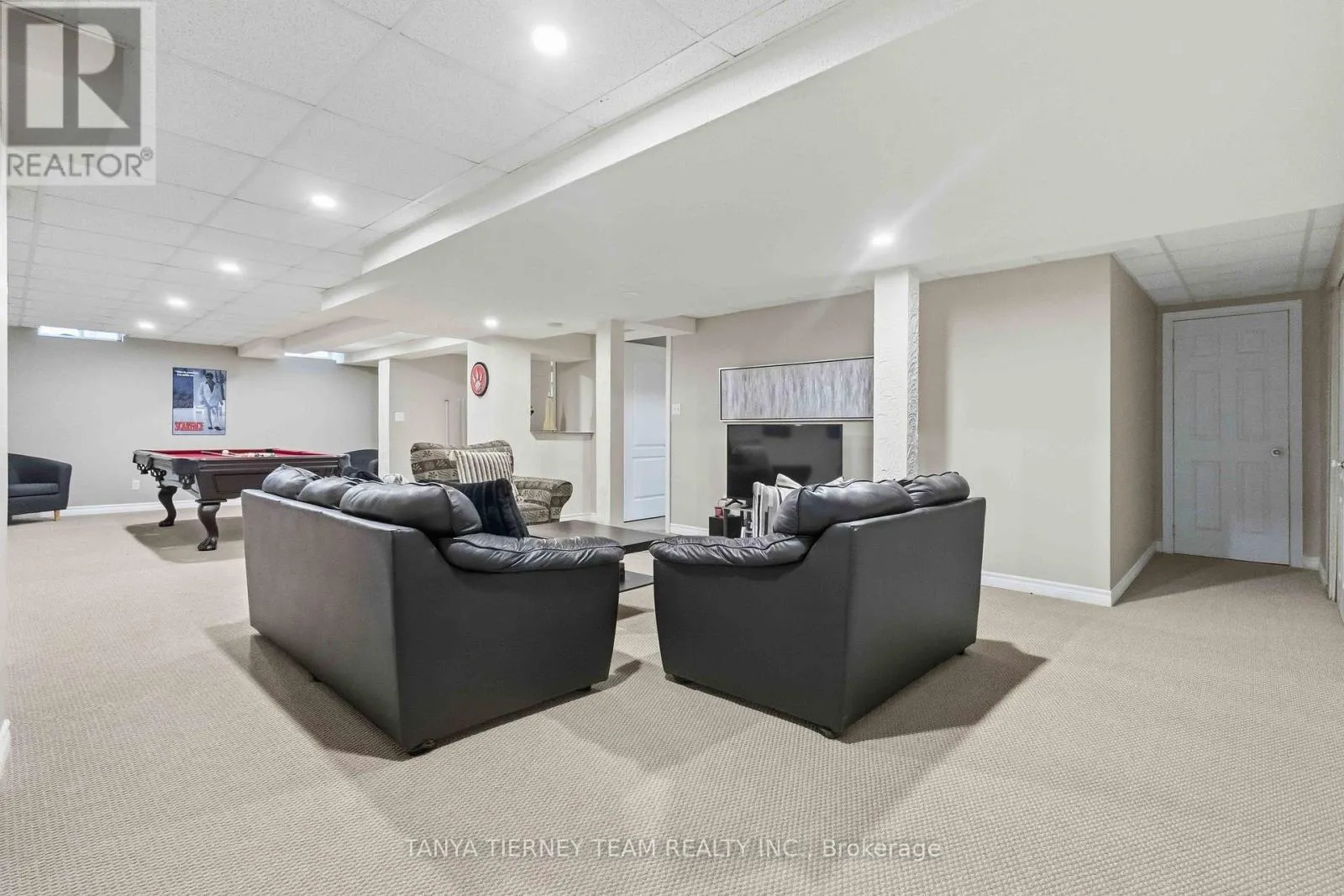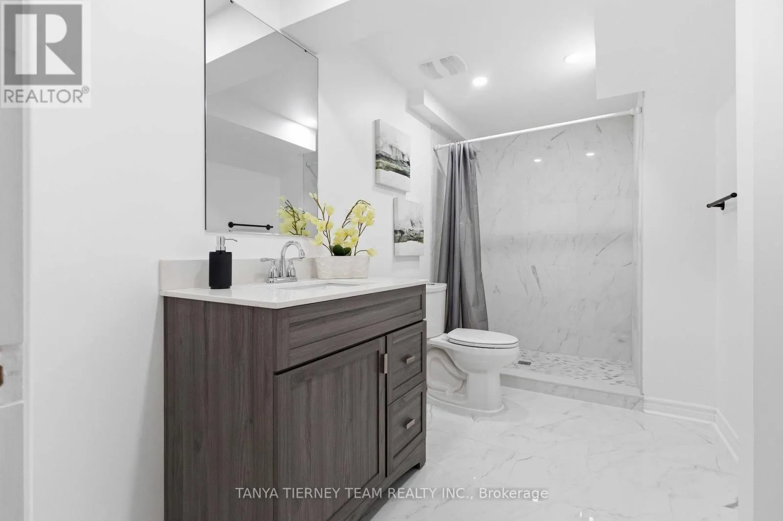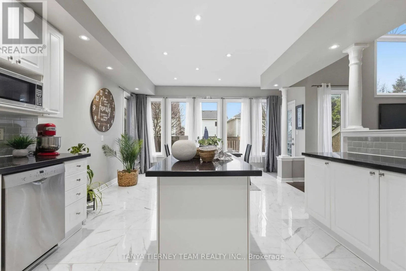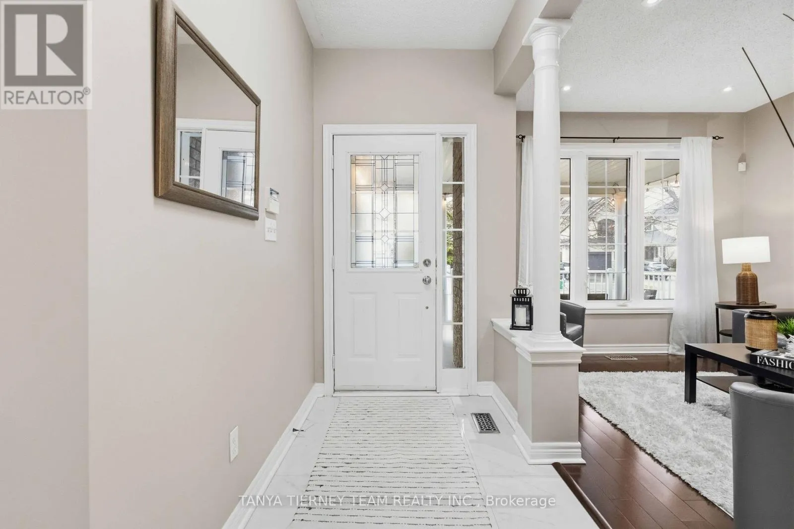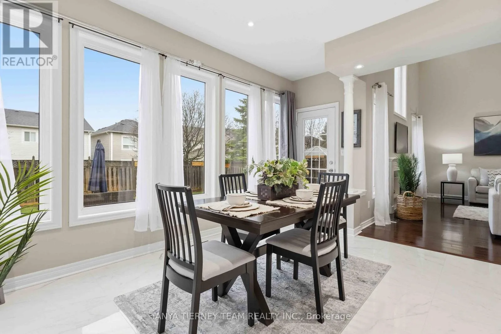 Ashburn & Holsted Rd Welcome to this stunning McQuay model offering over 4+1 bedrooms in a beautifully designed family home, featuring exceptional curb appeal with an interlocking walkway and charming covered front porch. Step inside to an inviting open concept layout showcasing 9ft ceilings, extensive hardwood flooring, pot lighting, and elegant formal living and dining rooms highlighted by a coffered ceiling. The impressive family room is the heart of the home, featuring soaring cathedral ceilings, a cozy gas fireplace, and a striking palladium window overlooking the backyard. The gourmet kitchen is a chef's dream, complete with upgraded ceramic flooring, quartz countertops, a stylish subway tile backsplash, centre island, and stainless steel appliances. The bright breakfast area is surrounded by large windows and offers a walk-out to the beautifully landscaped, fully fenced backyard with an interlocking patio - perfect for entertaining. Convenience meets function with a main floor laundry room equipped with cabinetry. Upstairs, you'll find four spacious bedrooms, including a luxurious primary retreat featuring a walk-in closet, additional double closet, and a spa-inspired 5-piece ensuite with double vanity and a relaxing corner soaker tub. One bedroom features a semi-ensuite, while another boasts a vaulted ceiling and private balcony overlooking the front gardens. The finished basement expands your living space with an additional bedroom complete with a 3-piece ensuite and quartz vanity, a large recreation room, and plenty of storage. Ideally located just steps to schools, parks, and the charming shops of downtown Brooklin, with convenient access to transit and Highways 407/412 - perfect for commuters! (id:27476)