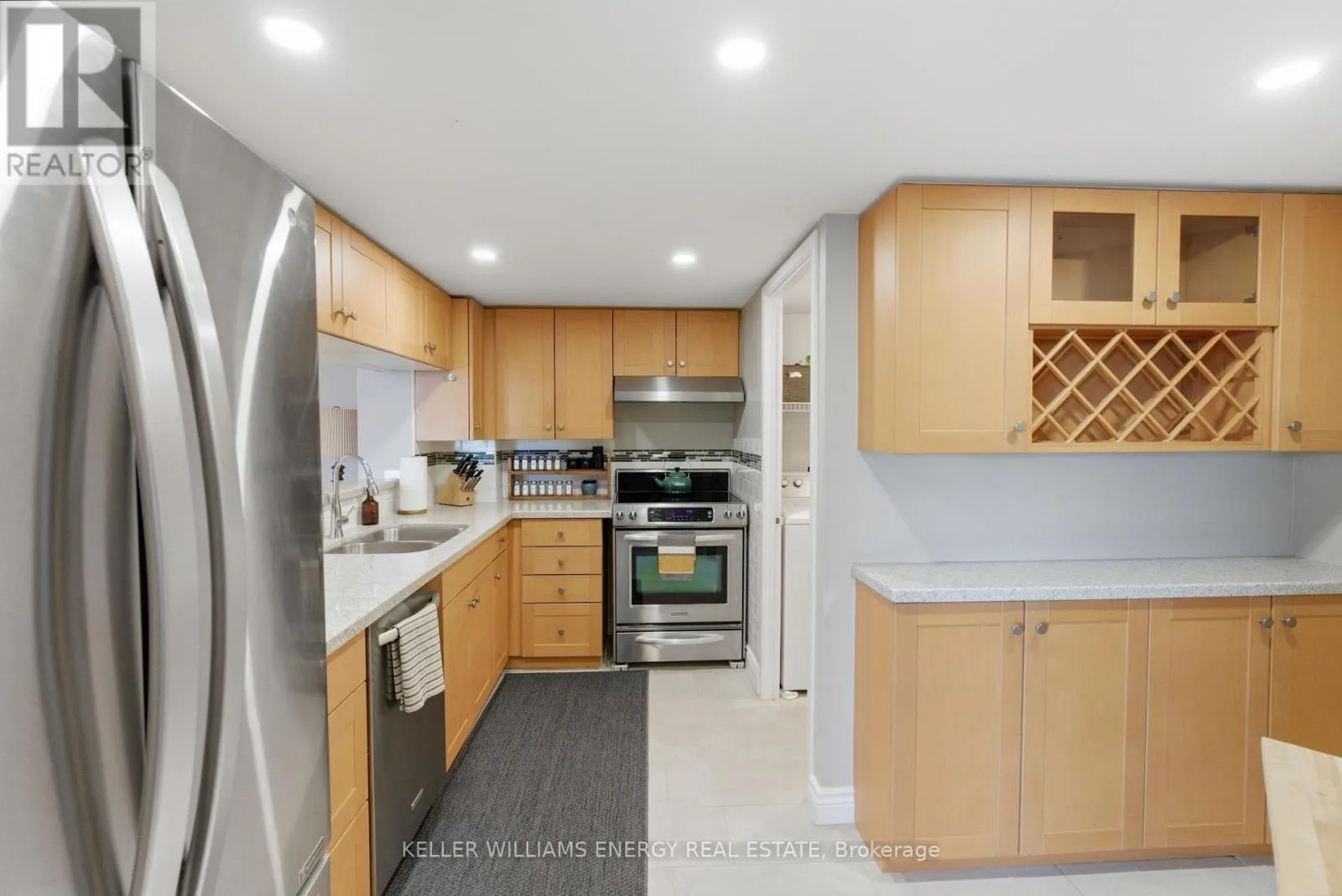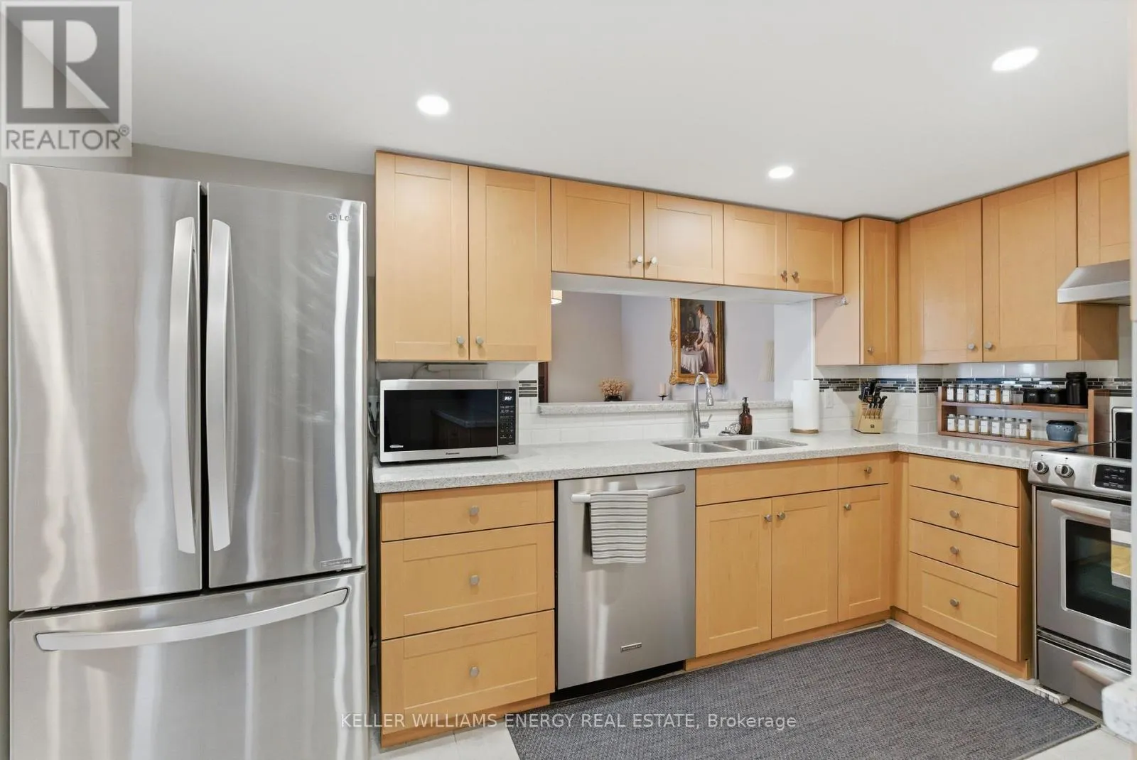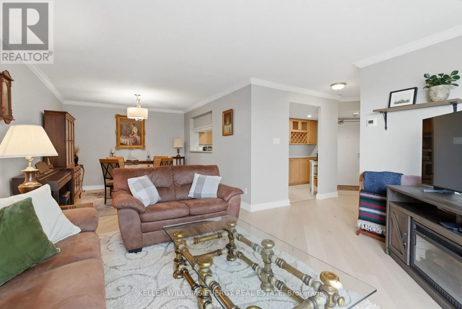 Brock St S & Victoria St W Spacious And Bright, This Port Whitby Condo Has Everything You Need For Easy, Low-Maintenance Living! This Unit Features Beautiful Engineered Hardwood Flooring Throughout The Bedrooms And Living Areas, Along With A Double Front Hall Closet For Added Storage. The Kitchen Offers Stainless Steel Appliances, Pot Lights, And Plenty Of Cabinet Space, And Conveniently Connects To A Separate Laundry Room. The Spacious Combined Living And Dining Area Provides Plenty Of Room For Both Relaxing And Entertaining, Complete With Crown Moulding And Large Windows That Fill The Space With Natural Light. The Sunroom Is The Perfect Spot To Enjoy Your Morning Coffee While Taking In Views Of The Lake Through Oversized Windows That Line The Room. It Features Two Sets Of French Doors, One Leading To The Primary Bedroom And The Other To The Second Bedroom. The Primary Suite Offers Large Windows, Crown Moulding, A 4-Piece Ensuite, And Two Closets. A Main 3-Piece Bathroom With A Walk-In Shower And Two Additional Storage Closets Complete The Unit. Enjoy Worry-Free Living With Maintenance Fees That Include Internet, Cable, Hydro, Gas, Water, Pool Access, Exercise Room Access, And Sauna Access! This Unit Also Includes 2 Parking Spaces & A Storage Locker! EXTRA: Hardwood Flooring 2024, Painted Throughout (2024) (id:27476)