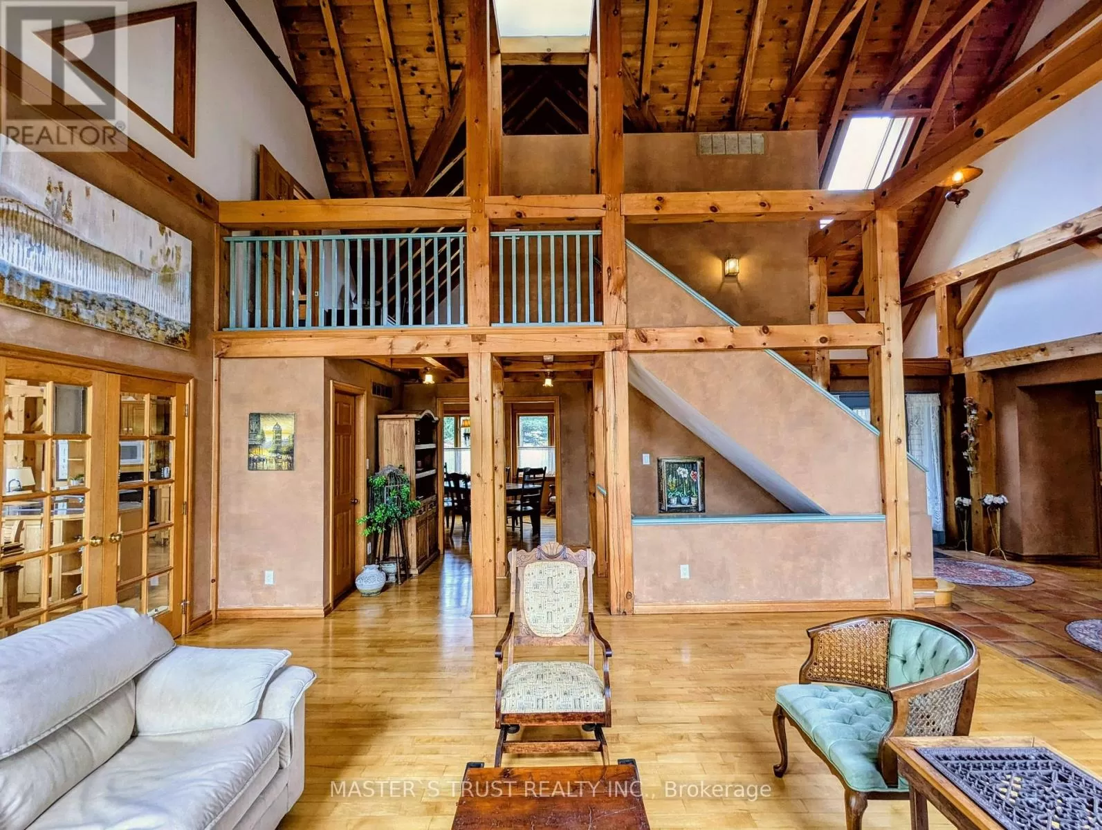 Cross Streets: Mccowan - Bloomington/Vandorf. ** Directions: MCCOWAN/BLOOMINGTON. 40 Minutes Away From Toronto, Away From The Hustle And Bustle, Enjoy This Rare Timber Cottage Of Almost 5500 Sq Ft Resort Living Space Every day. The Art of Timber Frame Construction. Our Dramatic Home Showcases Cathedral Ceiling With Almost 23' High With The Towering Strength And Beauty Of Exposed Posts And Beams United By Oak Dowels With Dovetail And Mortise And Tenon Joints Built By Normerica. Open Concept Bungaloft Is Nestled In Green Enclave Adjacent To Royal Stouffville Golf Course. Enjoy Terrific Views From The Rear Deck, Patio, Even Nearly Each Window. Tropical Bohemian Curtains Filled In Living/Dining/Family Room. The Peaceful Space Atmosphere Allows People Fully Relax. Walkout Bsmt With Licence Of Airbnb Rental From Stouffville City Hall Which earned over $25,000 of Rental Income per year. Why Are There Cracks in the Timber of New Timber Frame Structure? You May Think Its A Flaw In The Timber Used, But Rest Assured, Its NOT! Pls Check Out Attached Files in Website. (id:27476)