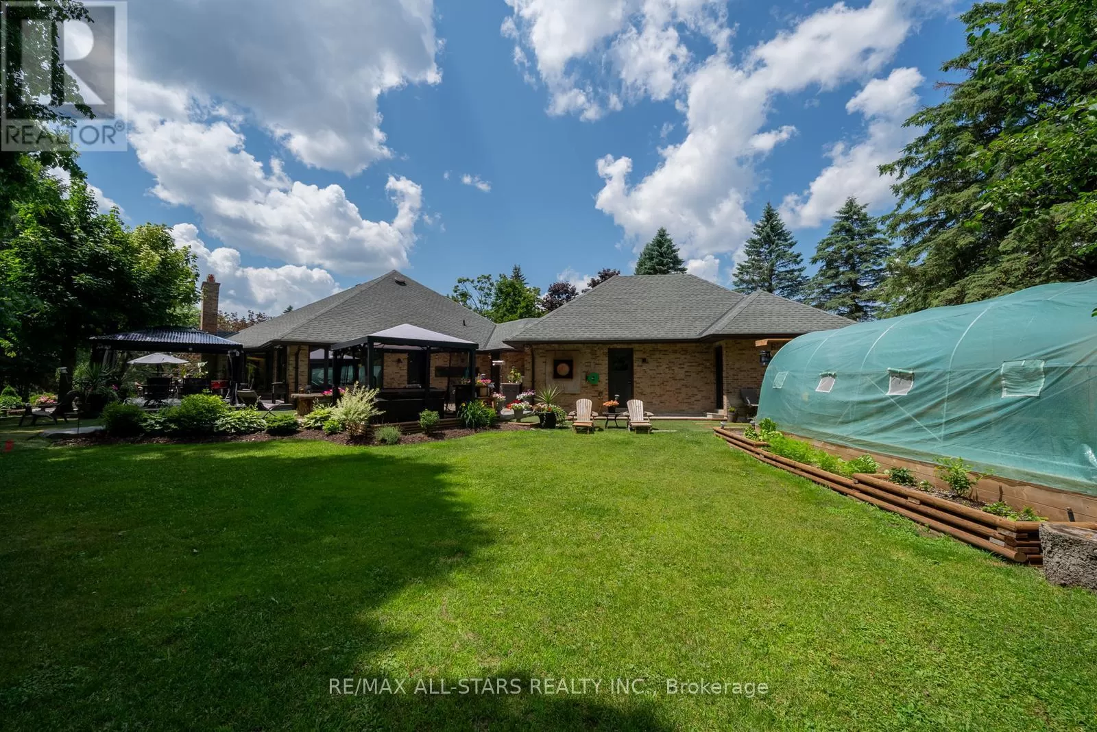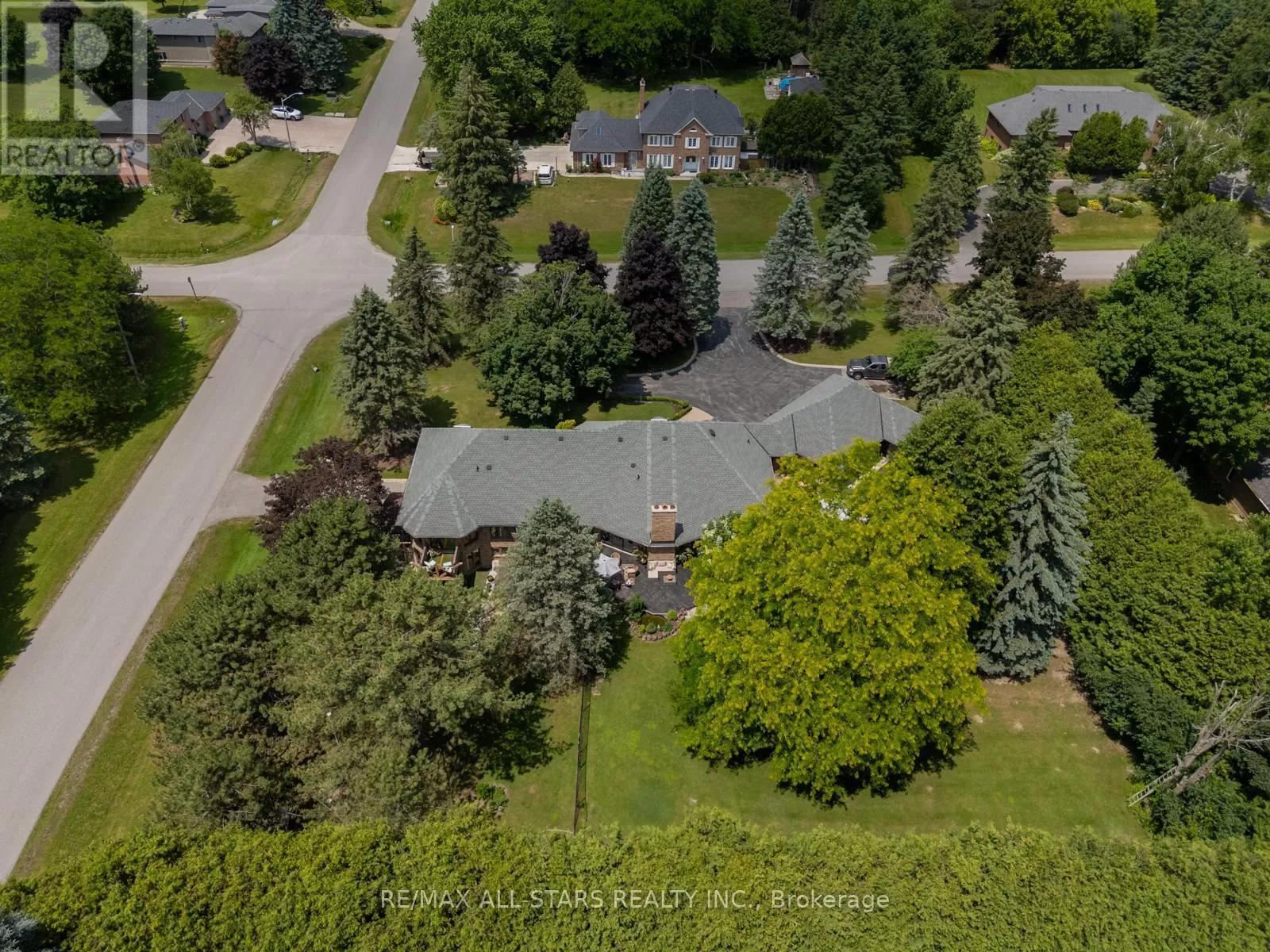 Cross Streets: Marilyn Ave/Executive Dr. ** Directions: North on Woodbine, left on Marjorie Dr, left on Marilyn Ave. A Rare & Versatile Opportunity on an over 1-Acre Corner Lot in Rural Stouffville. Welcome to a truly unique offering - a stunning ranch bungalow featuring 2 completely separate living spaces, perfectly designed for multigenerational living or rental potential. Situated on a beautifully landscaped lot with mature trees, armour stone & lush gardens. This home has over 6000 sqft of finished living space spread over 2 levels with 2 separate large driveways, their own front entrances & own garage spaces.The main level spans over 3,400 sqft & offers 4 spacious bedrooms, 3 bathrooms & an airy layout filled with natural light. The open-concept great room features a wood-burning fireplace & custom built-ins, seamlessly flowing into the kitchen with a central island, coffee station, walk-in pantry & two walkouts to the backyard. The large home office boasts wall-to-wall diamond-pattern windows, rich wainscoting & custom built-ins. The primary suite is a private retreat with a 5-piece ensuite, walk-in closet & walkout to the deck. Additional highlights on this level include a large mudroom/laundry room with garage & backyard access, a 3-car garage & parking for 10+ vehicles. Step outside to an entertainers dream: an outdoor kitchen, covered dining area, hot tub under the gazebo, and a greenhouse - all with complete privacy, huge mature trees & fully fenced in.The lower level is more than just a walkout basement suite, it really is its very own home. With approximately 2000 sqft of finished living space with its own front entry. This space includes a full kitchen, large family room, home office, gym, bedroom with 5-piece ensuite, den, laundry & plenty of storage. Behind the scenes this home has 2 furnaces, 2 A/C units, and 400amp service. Plus the bonus in-ground irrigation system adding ease to property maintenance. Ideally located minutes from Hwy 404 & Aurora Rd. Neighbourhood trails connecting to Vandorf Park with baseball diamonds, tennis & pickle ball courts & more. (id:27476)