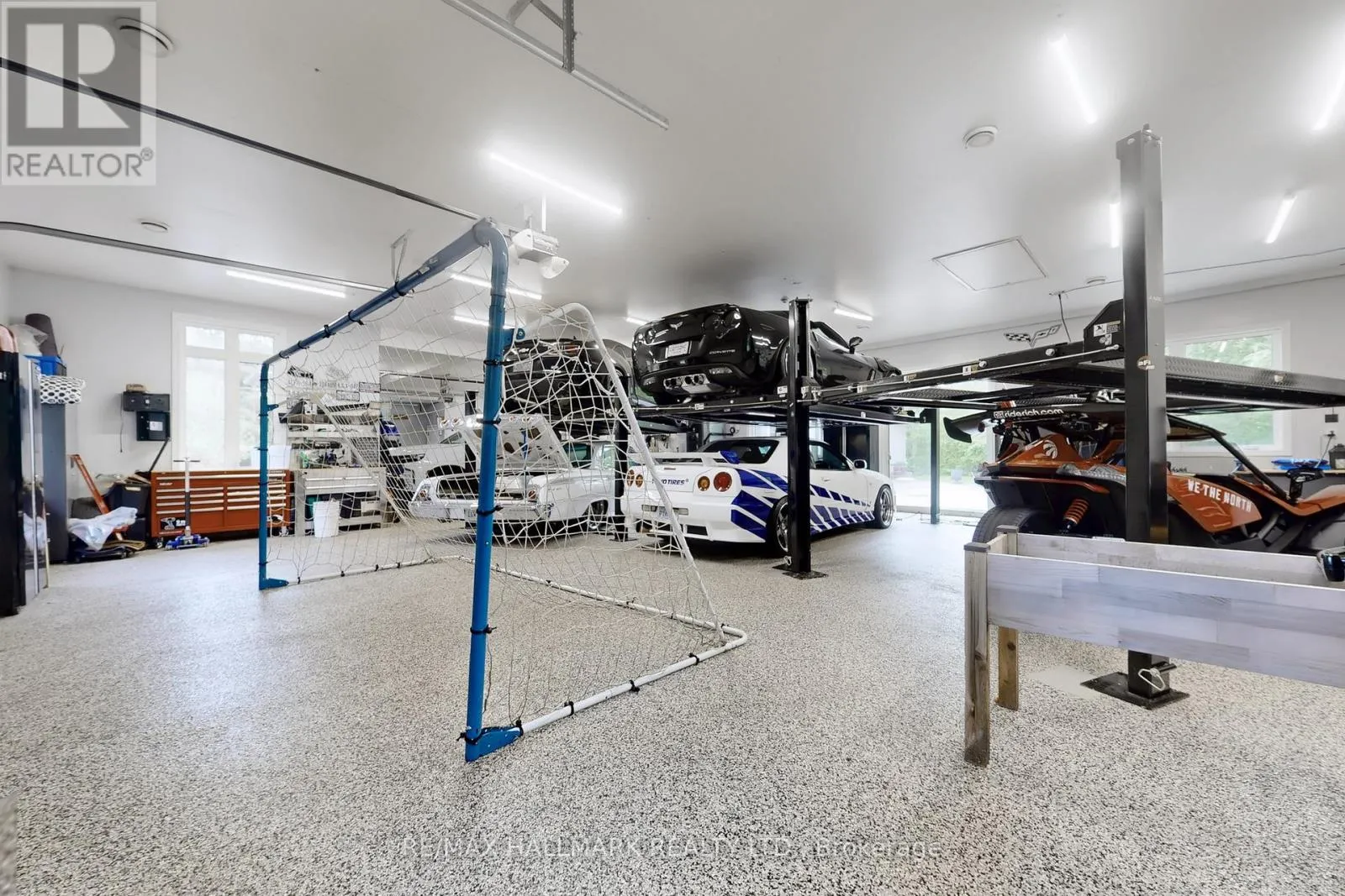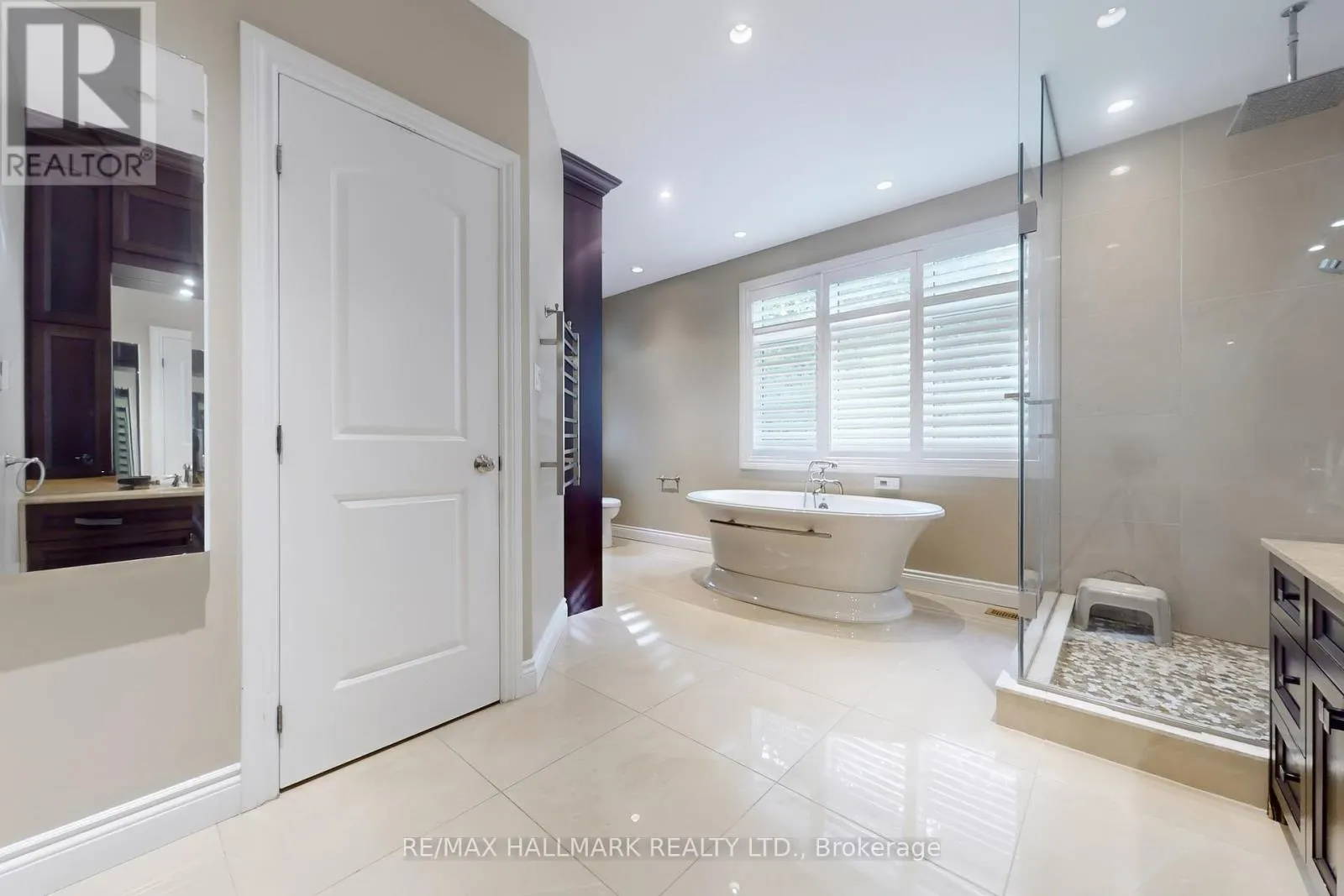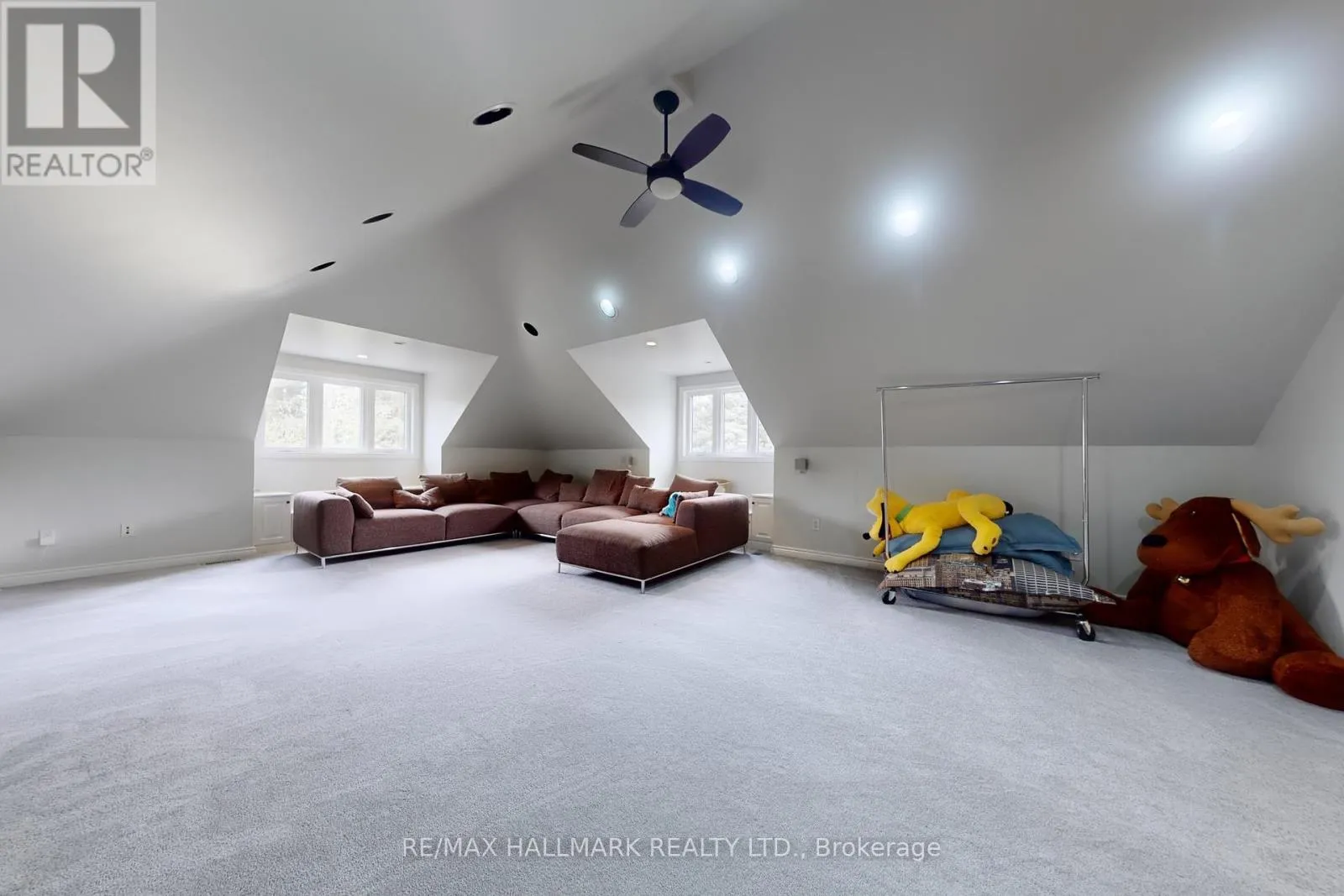 McCowan Rd/Aurora Rd Opportunity Knocks! This Beautiful Custom Home Is Nestled On A Private 1.98 Acre Lot With Over 300 Ft Of Frontage Surrounded By Picturesque Mature Trees. A great opportunity to own a bungaloft with a fully finished basement that is over 5,000 sq ft on two levels and over 7,500 square feet across three levels. This home is designed with high ceilings, 8-foot doors, hardwood floors throughout. Undergone renovations, including new stucco, newer windows, all bathrooms have new custom cabinetry and a sprinkler system for easy yard maintenance. Stepping inside, the open concept main level is filled with natural light through high ceiling picture windows in the living and dining areas. Combined with the large chefs dream kitchen designed with ample countertop space, cabinetry and stainless steel appliances perfect for hosting and gatherings. The primary bedroom is conveniently situated on the main floor with built-in closets and a spa-like 5-pc ensuite with heated floors, a jetted soaker tub, heated towel rack, frameless glass shower and double sink. Upstairs, features a grand hallway with sitting area, large loft and additional spacious bedrooms. The mudroom / laundry room has custom built cabinetry, pull-out drawers / closet organizers and a laundry shoot. The heated garage comfortably accommodates 6 cars, with potential to fit more with lifts, features epoxy floors, water access, and service stairs to the basement. Walk downstairs into a large rec room on raised broadloom flooring and pot lights. Enjoy your own infrared sauna and a spa-like bathroom for relaxation and luxurious touch. The huge basement makes space for a gym with mounted TV, a movie room with Bose Speakers, projector and large wall screen, and a stunning custom built bar with a wet sink, bar fridge, cabinetry, large wine racks & 5 bar stools ideal for recreation. A truly special property with potential to further customize. Do not miss out on this rare opportunity! (id:27476)