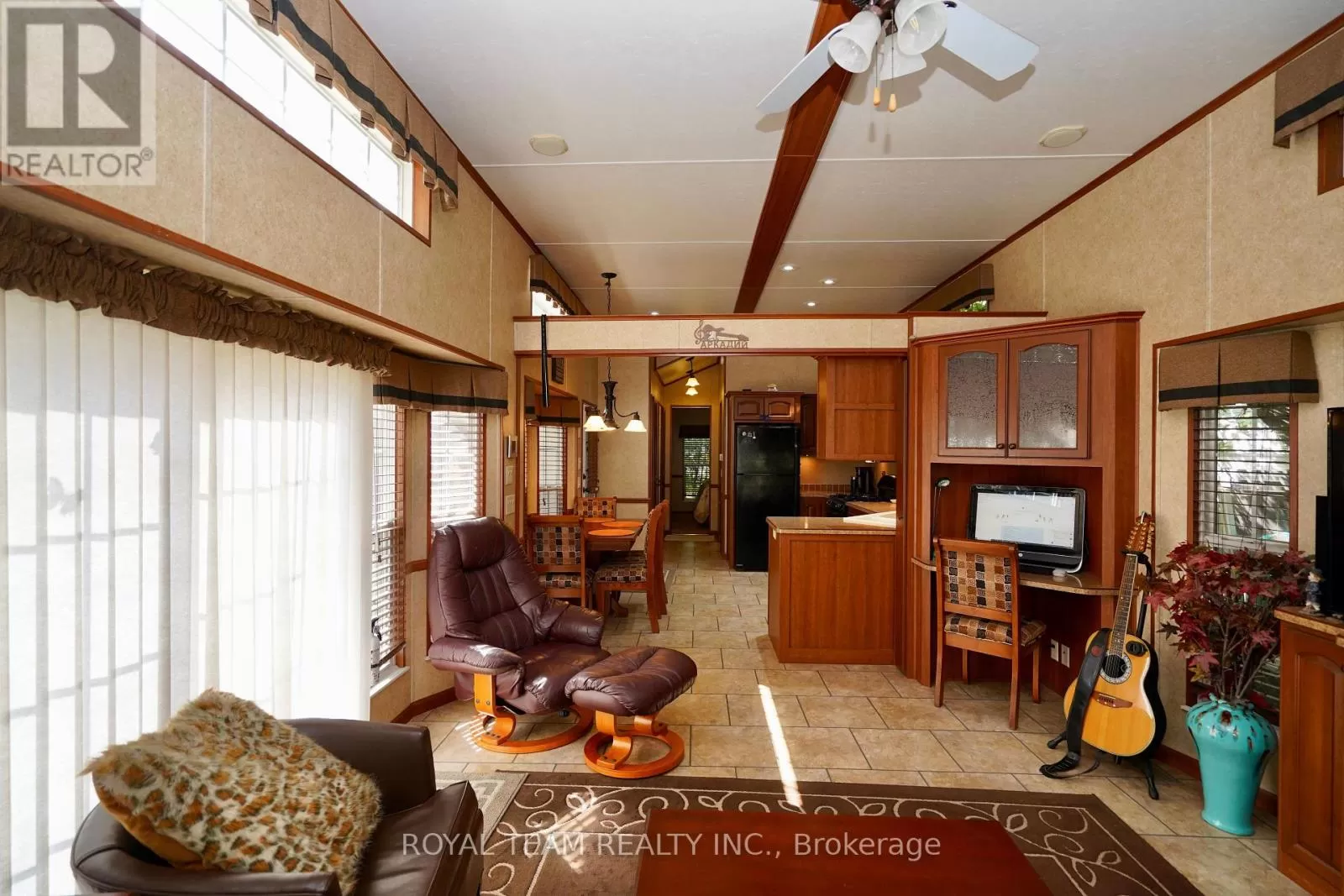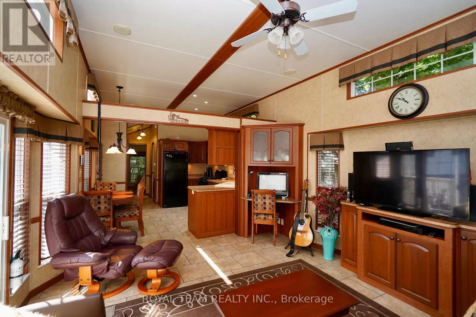 Bloomington and Nine Line Sale of 2010 Woodland Park Revelstome trailer VIN- 1- W9BSO3S8A2046166 located at Lakeview 22, premium corner location at Cedar Beach Resort. This -seasonal ( From April 1 till October 31),with a heated pool and a Jacuzzi, park model trailer is move-in ready and super comfy perfect for seasonal living. Open-concept kitchen & dining area with vaulted ceilings, fridge, propane stove, microwave Double sink with sprayer + soap dispenser Ceiling fan + dining table with chairs Cozy living room ,Full-size sofa, 2 armchairs with footrests Florida Room (fully screened with windows!)Sale includes model home / cottage, shed, deck, gas bbq, fire pit, appliances, window treatments, 2 sofas, dinner table and chairs, 1 T. Vs and 2 beds. 2025 fees will be recalculate 2026 fees not included in Sale and are to be paid by the buyer. Personal items excluded. Sold free and clear of all liens and in as is condition. Cedar Beach acting as agents only. (id:27476)