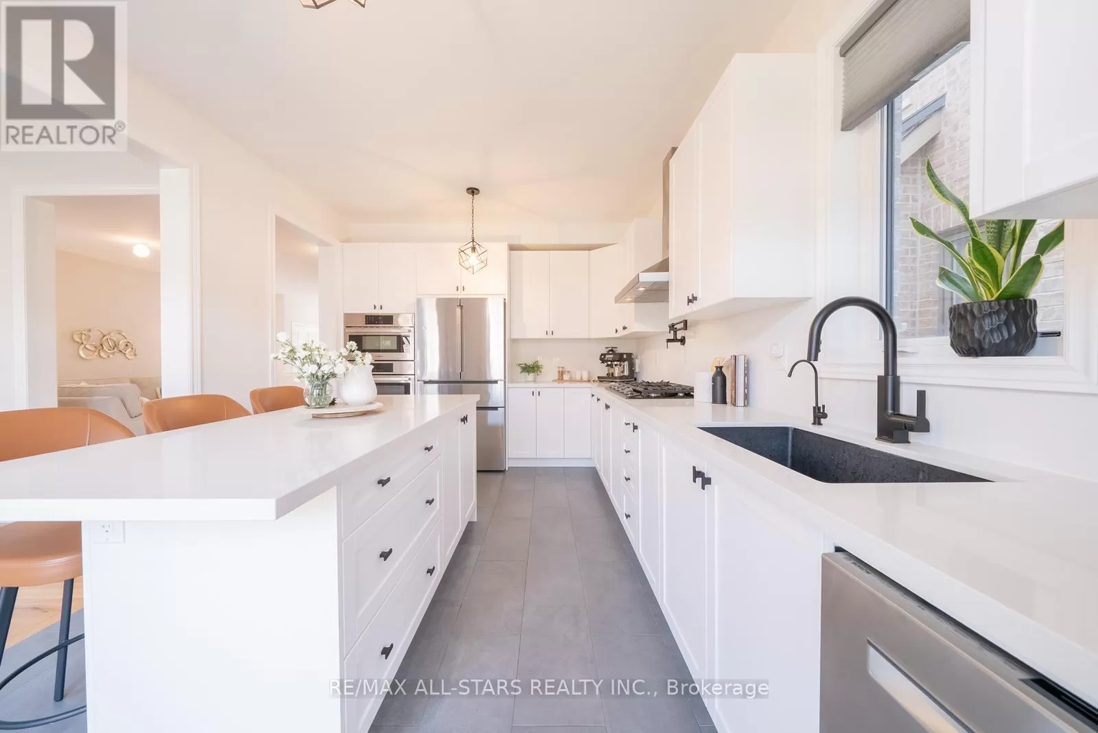 Cross Streets: Tenth Line & McKean Drive. ** Directions: McKean Drive to Boundary Blvd. Welcome to 197 Boundary Boulevard a beautifully upgraded home that combines style, comfort, and functionality. With 3 bedrooms, 4 bathrooms, a finished basement, and a versatile flex space, this property offers plenty of room for family living and entertaining.The main floor is bright and welcoming with natural oak hardwood and large windows that fill the space with light. At the heart of the home, the chef-inspired kitchen is a standout, complete with quartz countertops, upgraded stainless steel appliances, a wall unit stove with speed oven, gas cooktop with pot filler, and a farmhouse sink. Overlooking the dining area and family room, its designed for connection and ease of living.Upstairs, double doors open to the serene primary suite featuring a spacious walk-in closet and beautifully finished ensuite. Two additional bedrooms, each bright and generously sized, share a modern 4-piece bathroom. A versatile flex space offers the option for a fourth bedroom, home office, or cozy lounge. The convenience of an upstairs laundry with upgraded LG appliances adds to the thoughtful design.The finished basement extends your living space with a large recreation area, pot lights throughout, and a stylish 3-piece bathroom. Ample storage, including a cantina, makes the lower level as practical as it is inviting.Step outside to a backyard with upgraded hardscaping, ready for your personal touch whether its a garden, outdoor dining area, or play space.With elegant finishes, smart upgrades, and plenty of space for the whole family, 197 Boundary Boulevard is a home you'll be proud to make your own. Window Coverings(2024), Basement(2023) Water Softener & Reverse Osmosis(2025) Hardscaping Front and Back yard(2024) (id:27476)