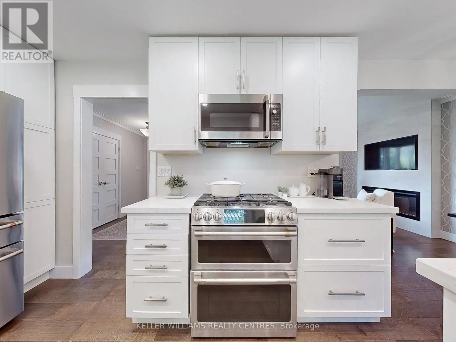 Cross Streets: Main St & Park Dr. ** Directions: Main St to Park Dr to Tindale Rd to Maytree Ave. Welcome to 128 Maytree Ave, a charming and meticulously cared-for bungalow located on one of Stouffvilles most desirable streets. Set on a wide 100.53 x 125 lot, this home offers exceptional curb appeal, a functional layout, and impressive updates that make it truly move-in ready. The main level features sun-filled principal rooms with hardwood flooring and neutral décor throughout. A spacious living and dining area with crown moulding, bay window, and fireplace provides the perfect setting for everyday living and entertaining. The renovated kitchen blends style and function with custom cabinetry, soft-close drawers, pull-out shelving, a breakfast bar, and a premium 6-burner gas stove, ideal for any home chef. Three generously sized bedrooms each offer ample closet space and large windows, while the updated bathrooms showcase radiant heated floors, glass shower doors, and modern finishes. The fully finished lower level, accessible through a separate side entrance, extends the living space with a bright recreation room, gas fireplace, renovated bathroom, laundry, and abundant storage, perfect for an in-law suite or family retreat. Step outside to your private backyard with mature trees, garden shed with loft storage, and endless potential for a pool or outdoor oasis. A heated and insulated two-car garage plus six-car driveway parking completes this exceptional property. Situated in a quiet, family-friendly community just minutes to schools, parks, Main Street amenities, transit, and highways, this home offers the perfect balance of tranquility and convenience. (id:27476)