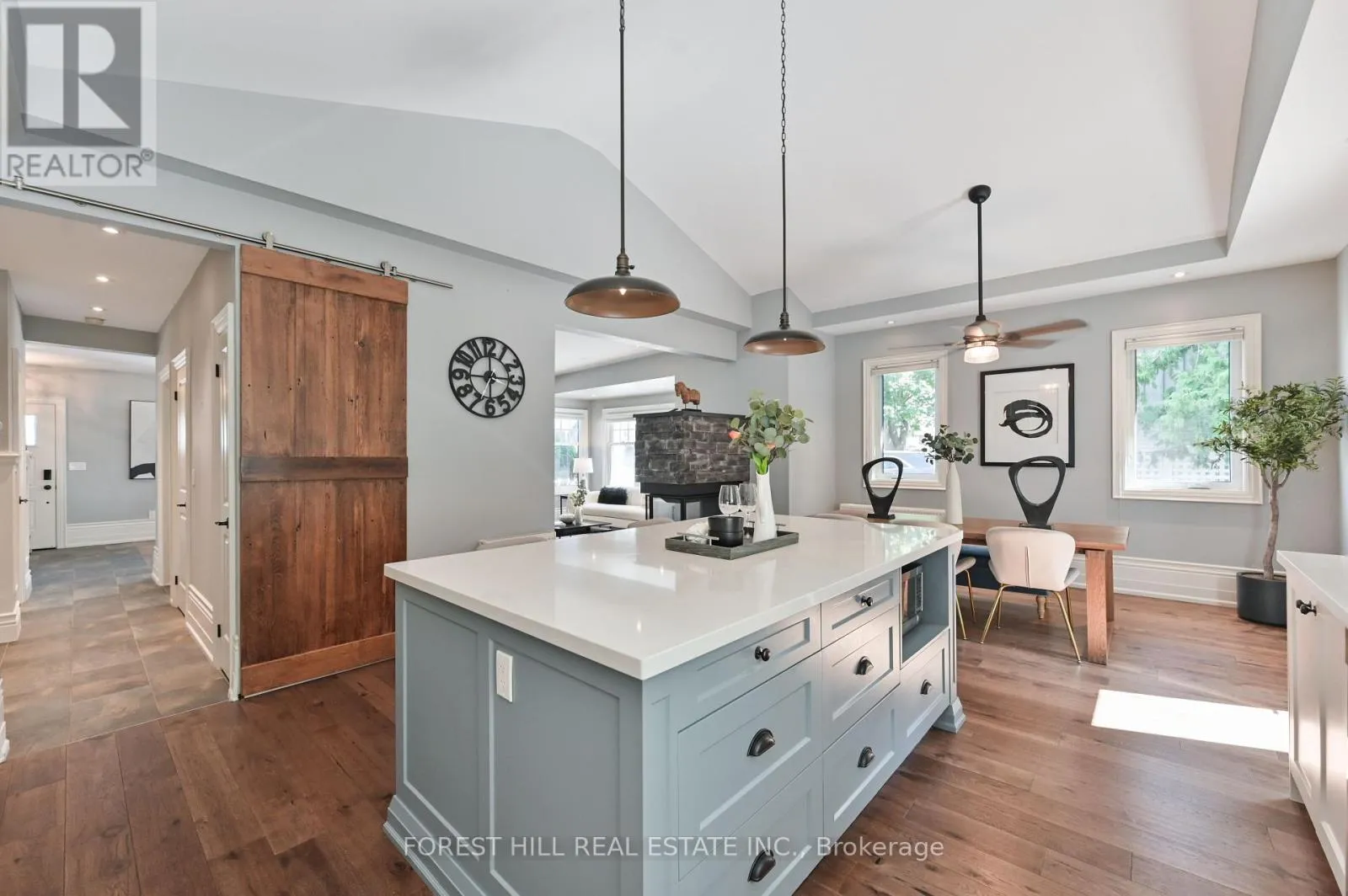 Cross Streets: Stouffville Rd/Ninth Line. ** Directions: -. Beautifully updated semi-detached home in the heart of Stouffville, with renovation completed in 2017. Features a stunning kitchen with cathedral ceilings, custom cabinetry, quartz counters, stainless steel appliances, and a large island with ample storage. Elegant hardwood floors throughout the main level, with 3 bedrooms and 2 renovated bathrooms, including a stylish upstairs bath. The primary bedroom offers large custom built-in storage. Basement is waterproofed and equipped with a sump pump. Efficient radiant boiler heating, tankless water heater and wall-mounted A/C unit on the main level.Rarely found oversized L-shaped lot for a semi-detached, offering a peaceful backyard oasis with a large stone patio, tranquil pond, and a powered 12' x 16' workshop/barn. Private driveway with Tesla charger included.Unbeatable location just a short walk to the GO Station and historic Main Street, with easy access to parks, schools, shops, and restaurants.Perfect for commuters and those who love being close to everything the town has to offer. Some exterior changes may be subject to municipal review. Buyer to verify with the Town of Whitchurch-Stouffville. (id:27476)