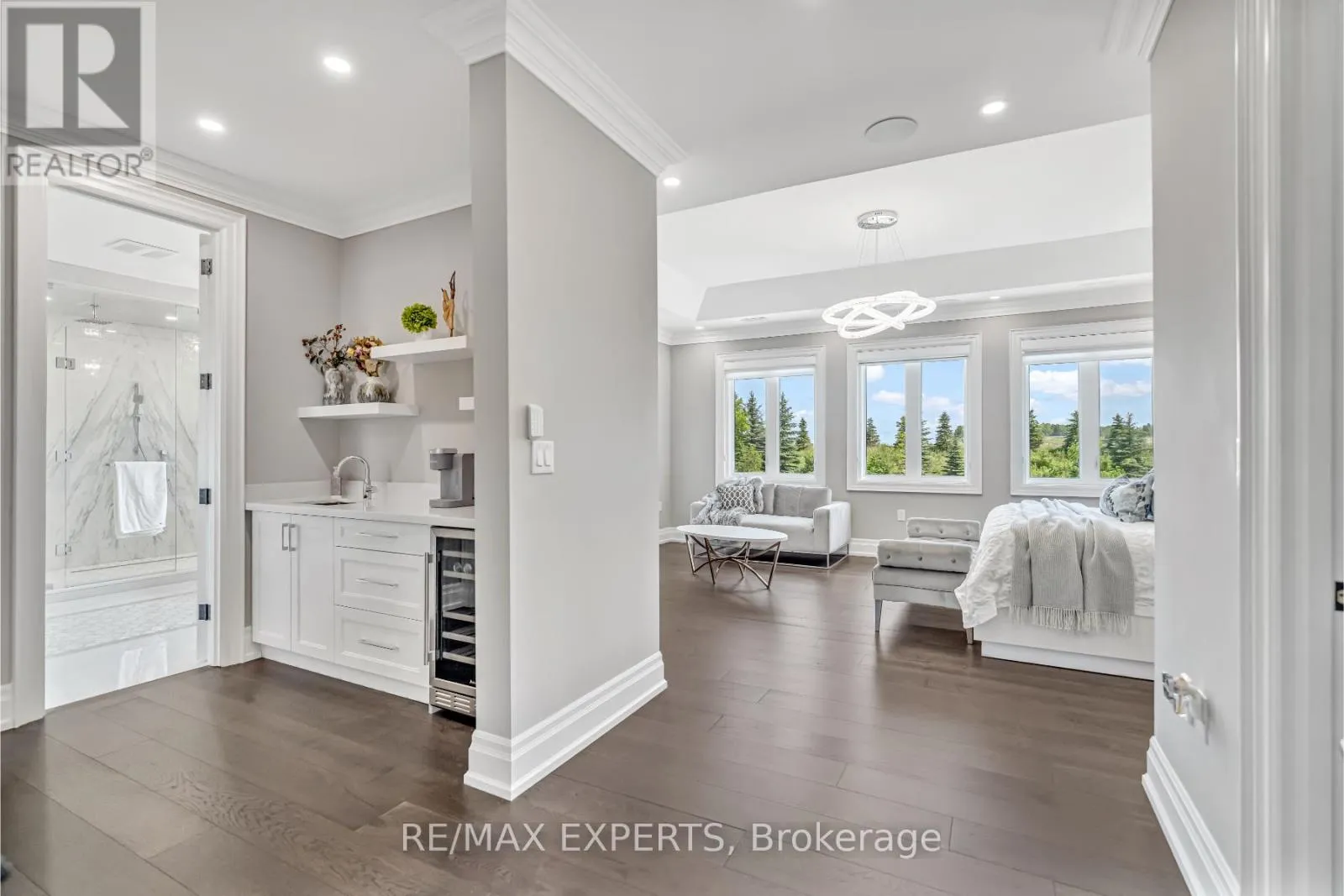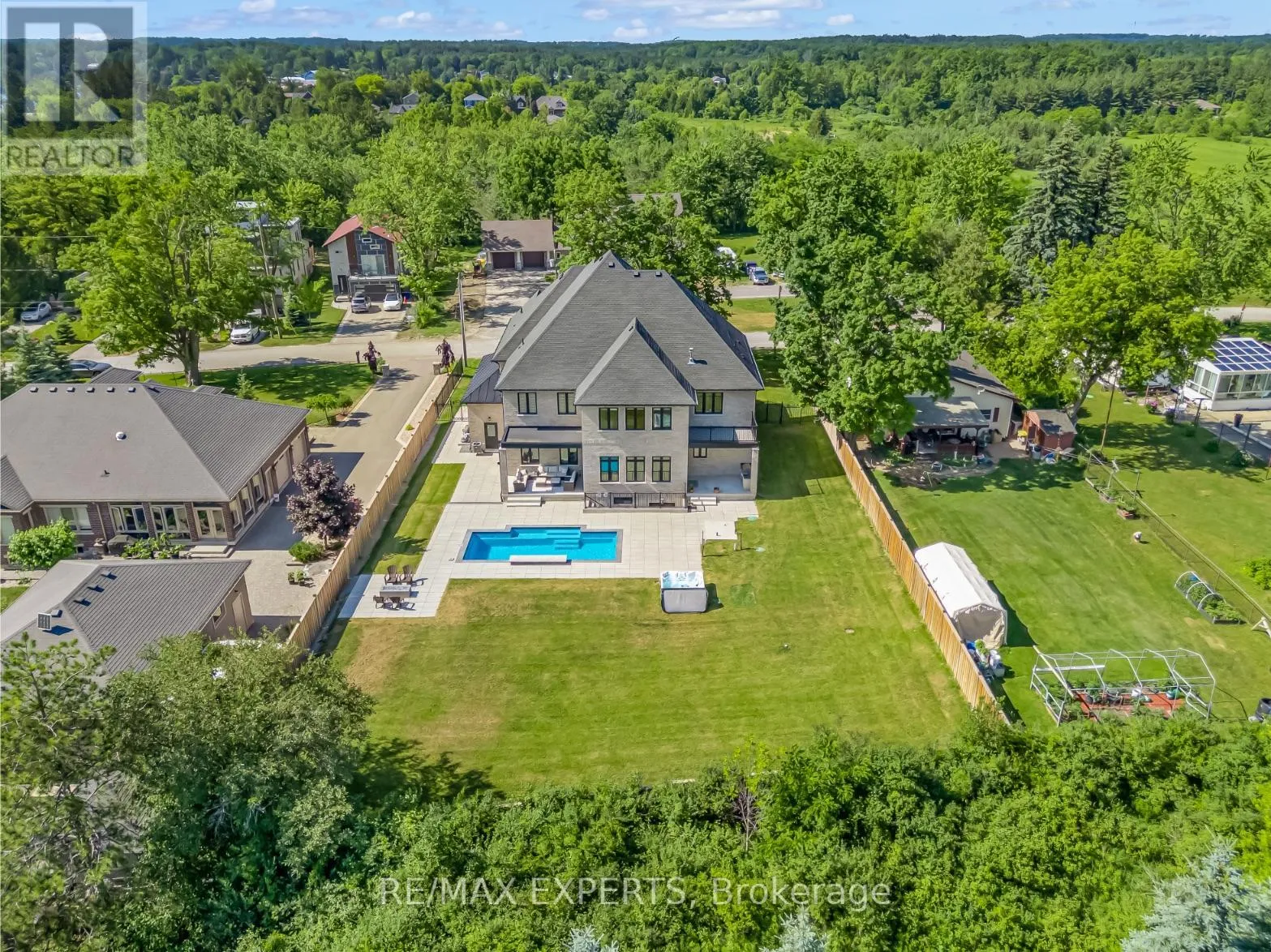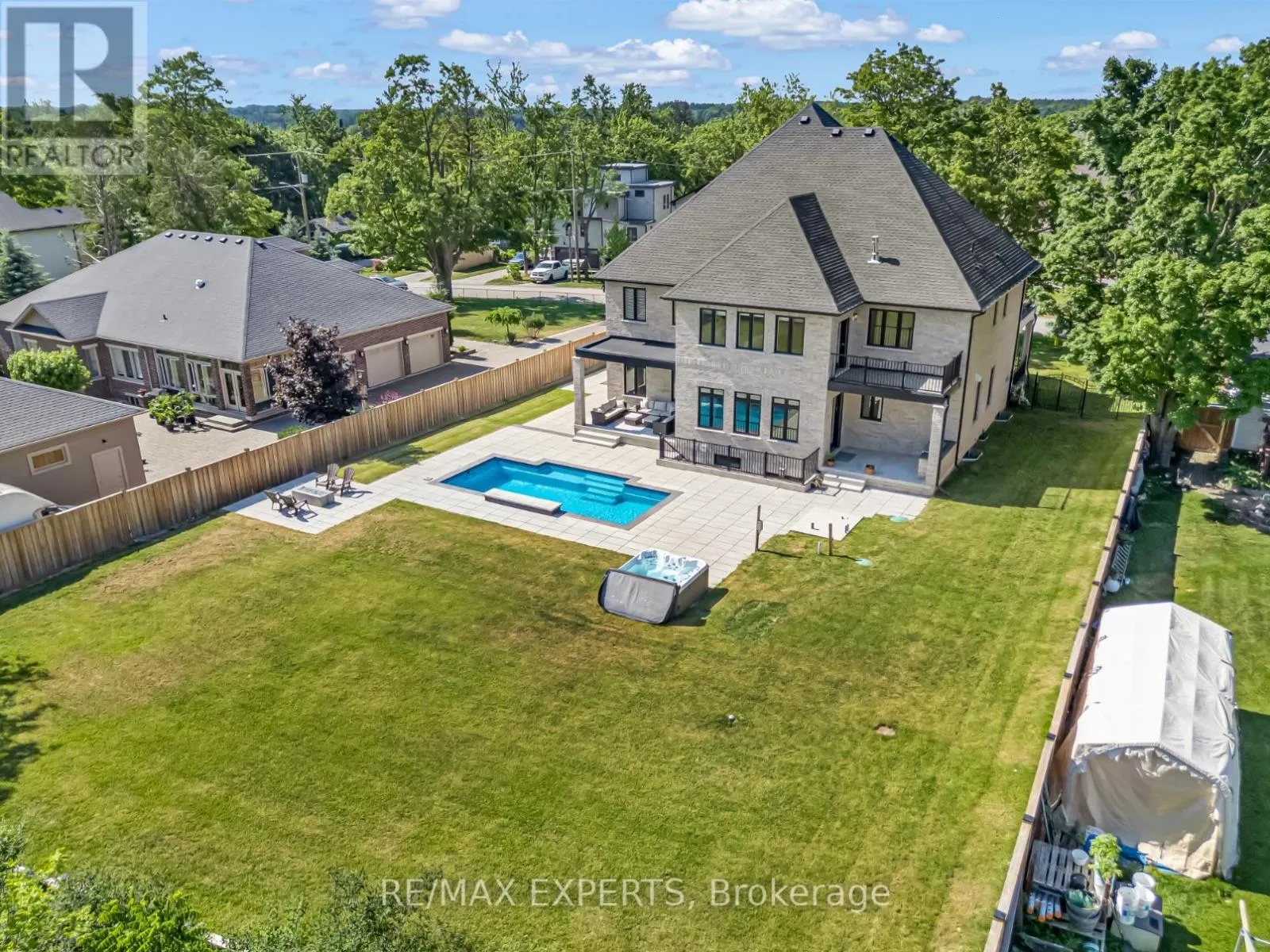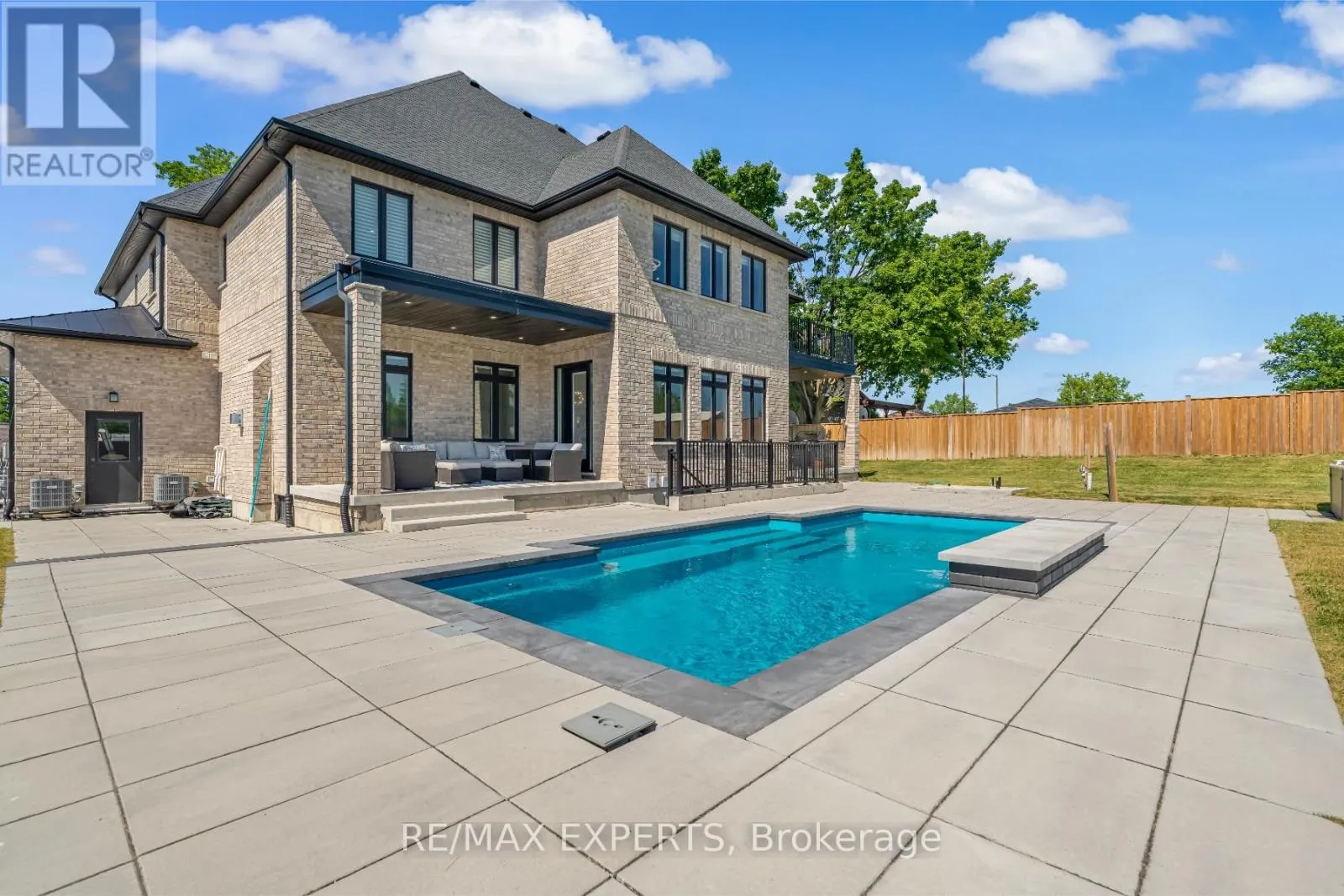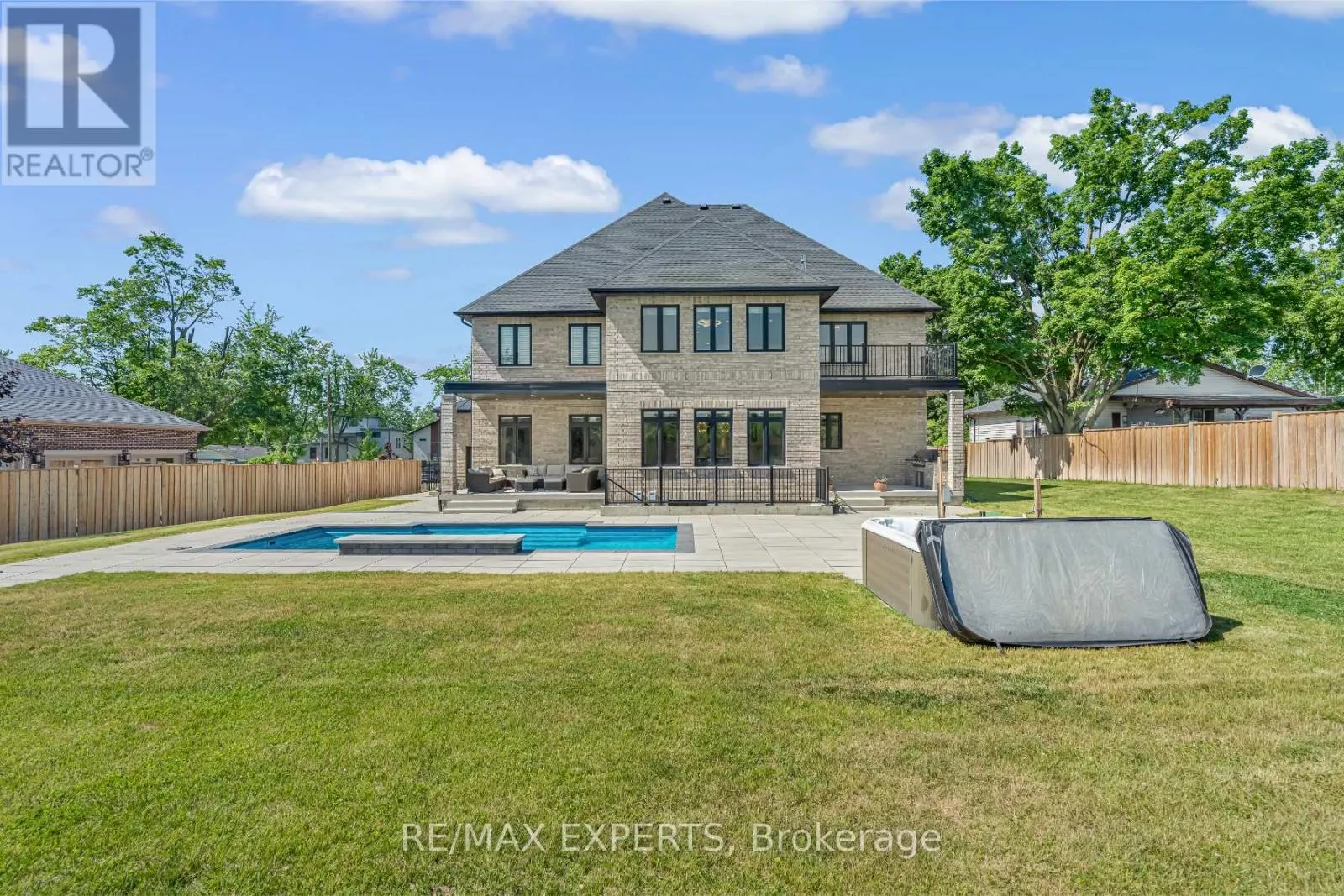 Cross Streets: NINTH LINE. ** Directions: NINTH LINE TO HILLDALE DRIVE. This 8,600 sq ft custom-built estate sits on a rare 100 x 200 ft lot, just a 5-minute walk to Musselmans Lake. Featuring 5 bedrooms, 6.5bathrooms, and a finished basement with 9' ceilings, the lower level includes a full kitchen, dining area, living room, gym, dance studio,movie theatre, bar, and full bathroom. The basement has a rear entry (not a walk-out) and is ideal for extended family or future rentaluse. Outdoors, enjoy a heated fiberglass pool, hot tub, and fire pit, perfect for summer entertaining. Rough-in for an outdoor washroomand concrete posts for a future cabana add even more potential to the backyard oasis. Complete with an elevator, EV charger, premium finishes, and resort-style amenities, this is luxury living at its finest. (id:27476)