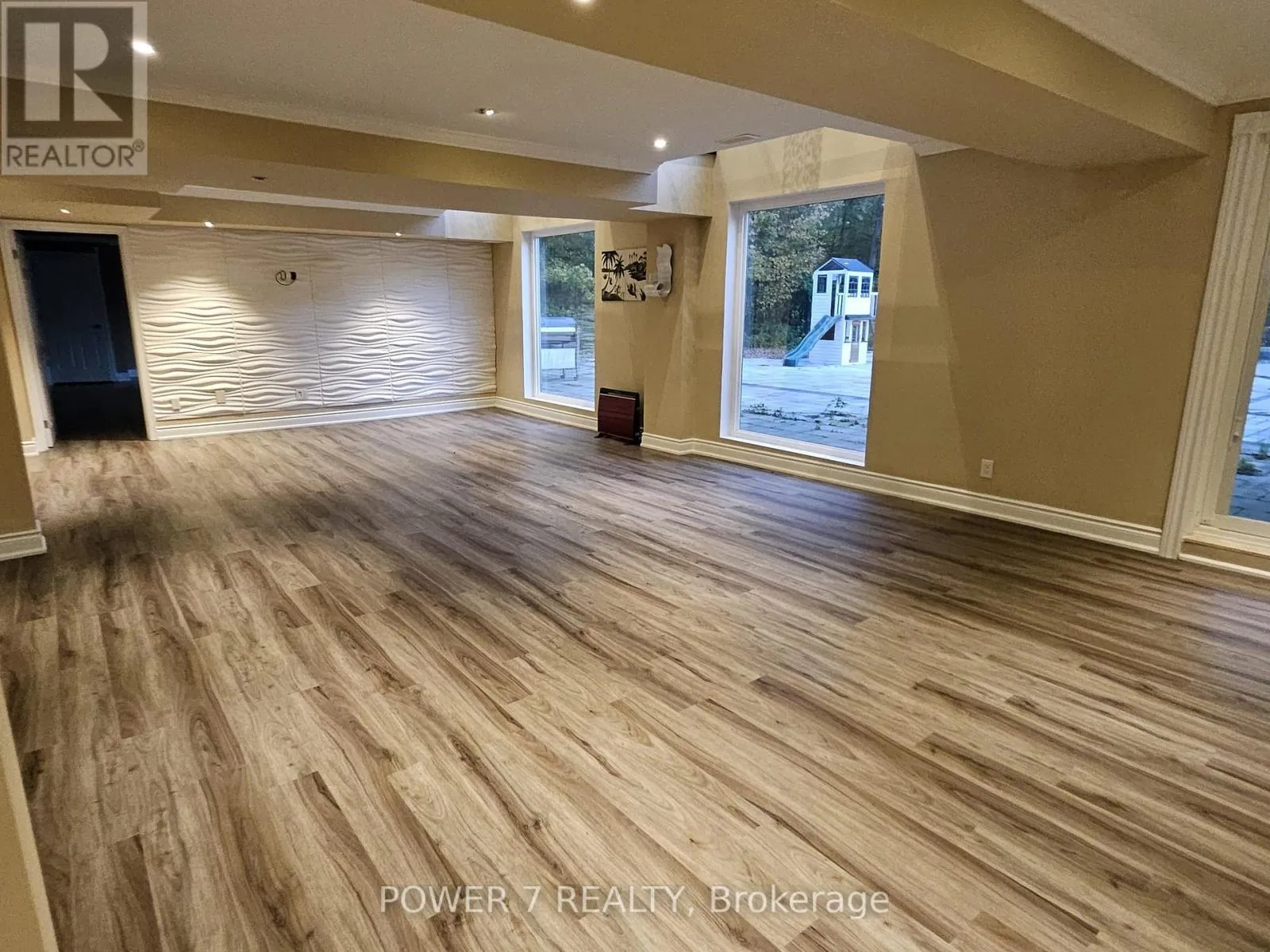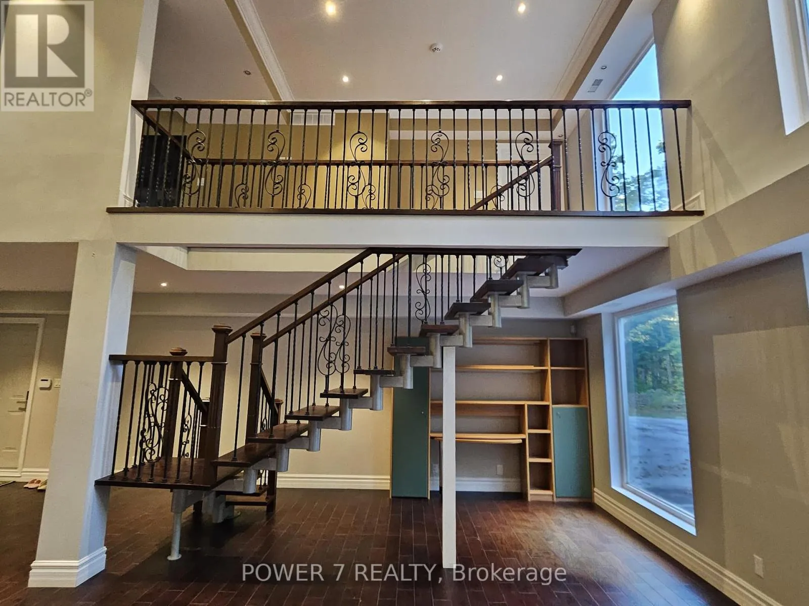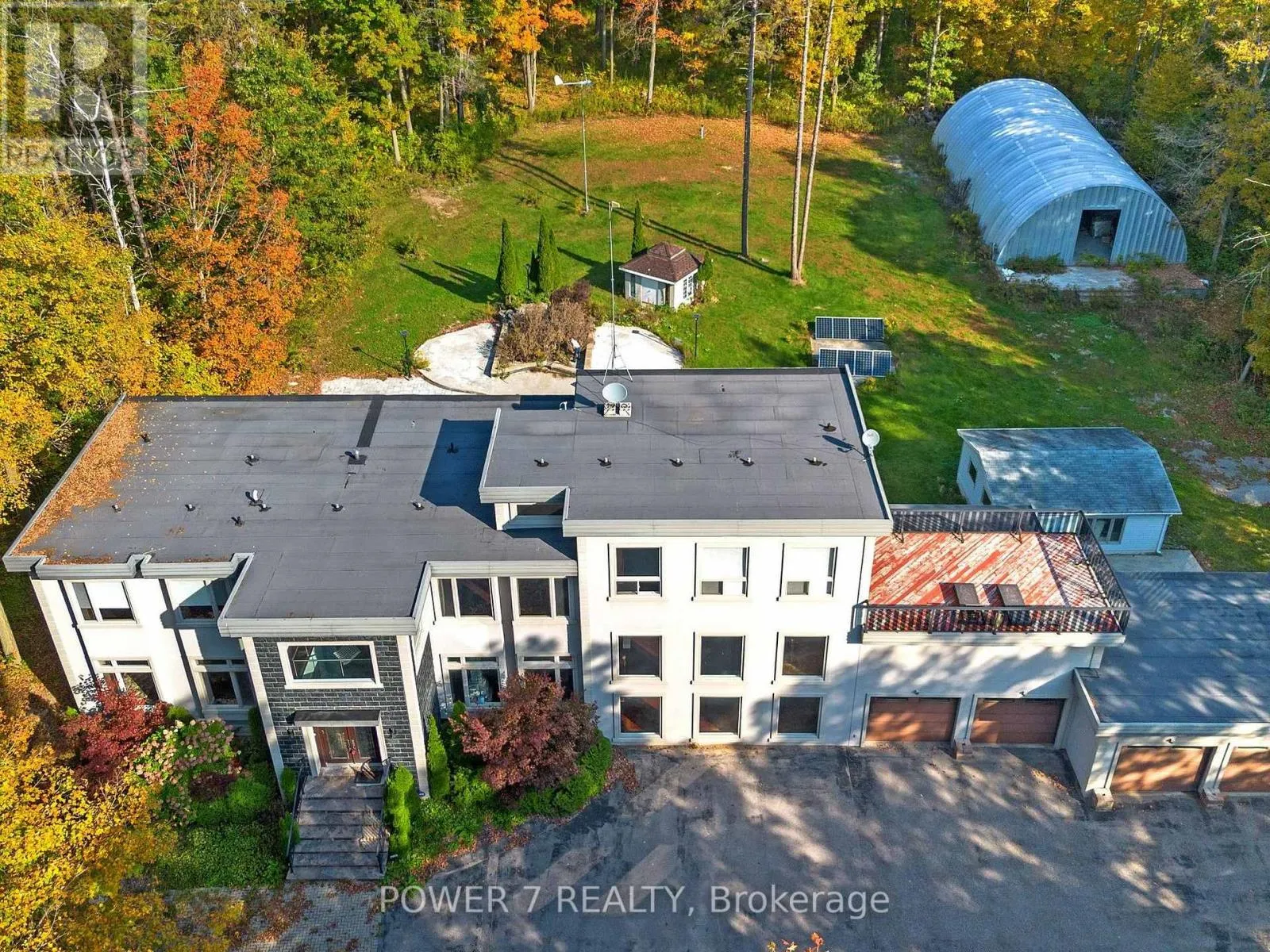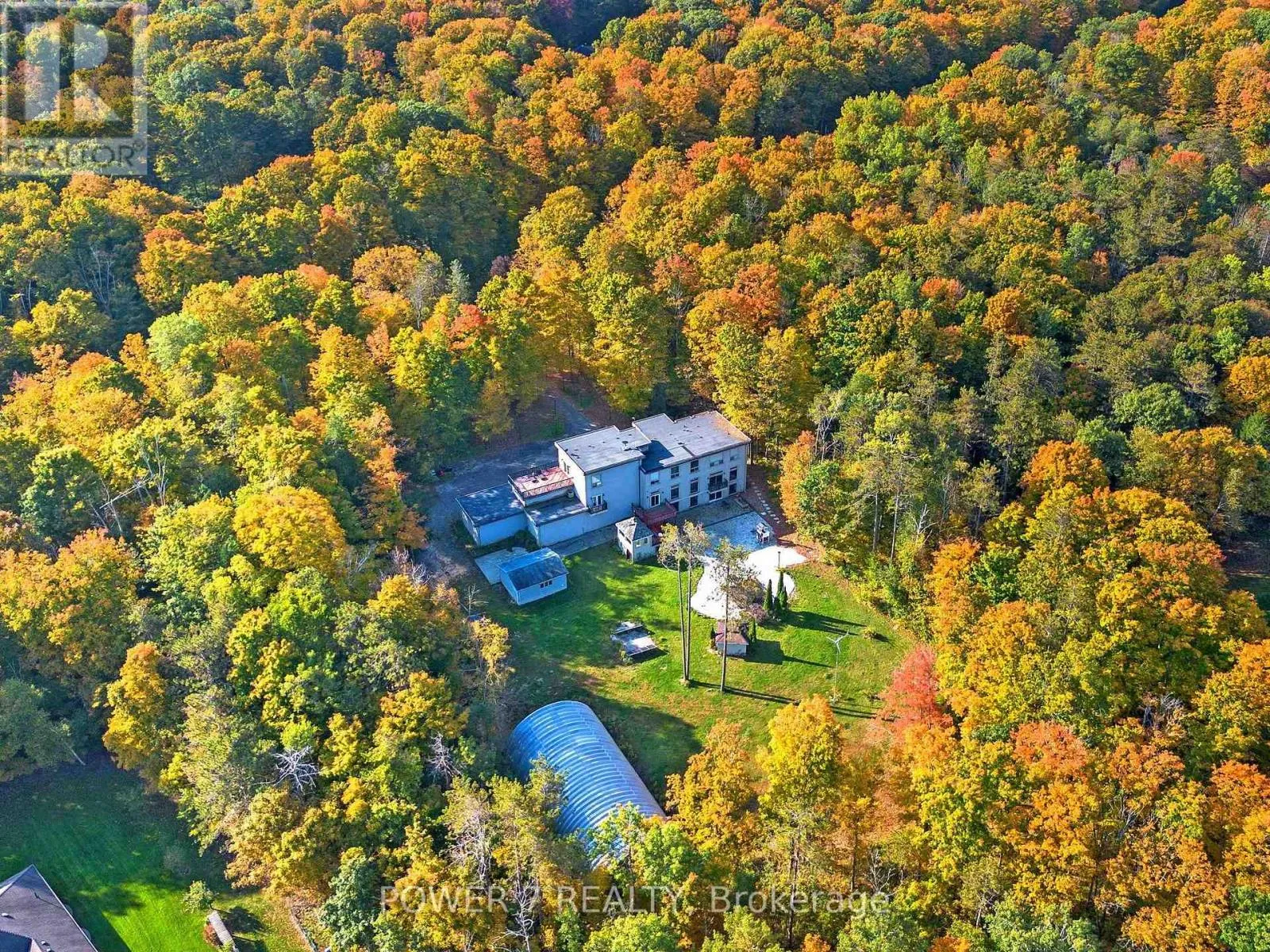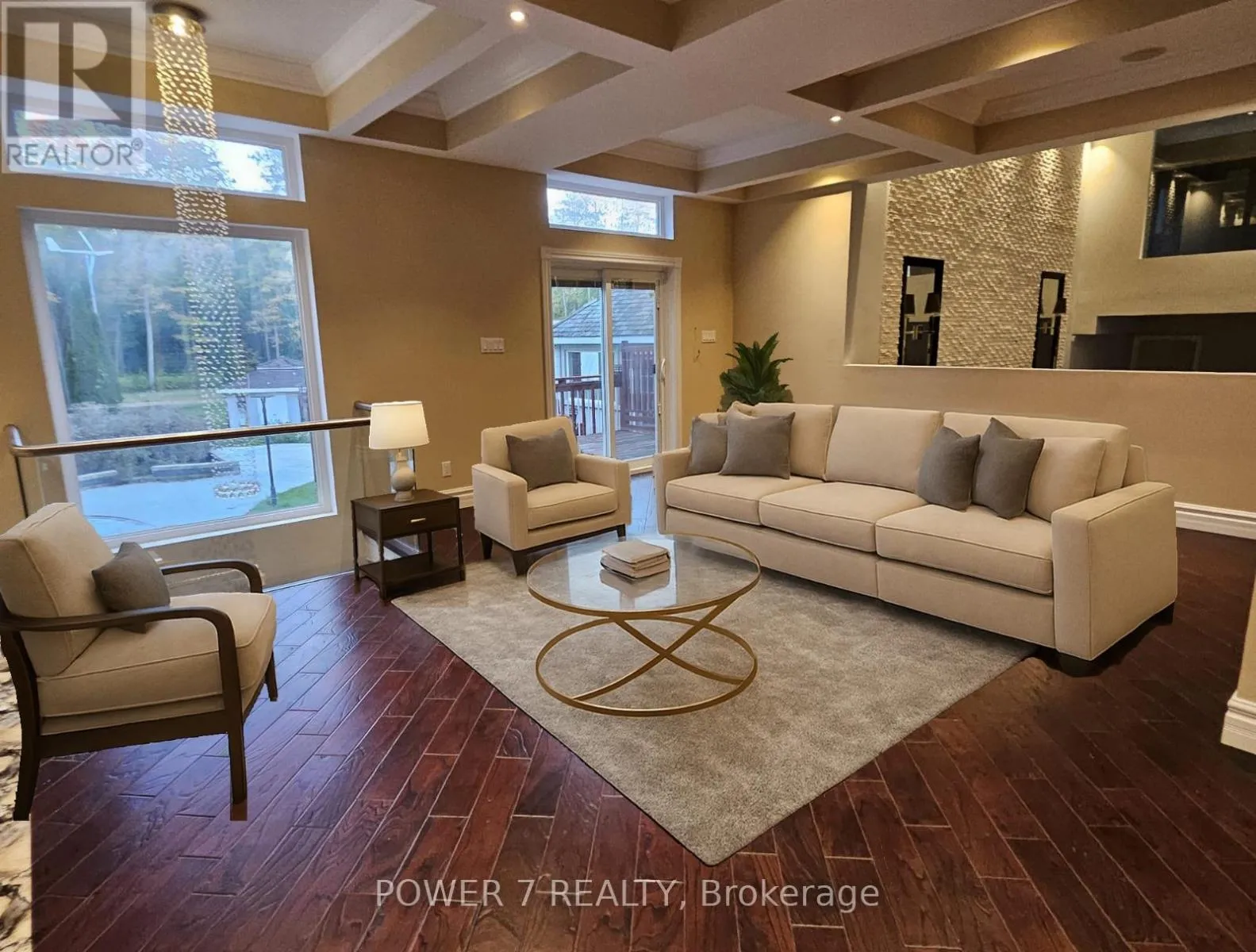 McCowan Rd & Jesse Thomson Road A Golden Opportunity Knocks! Welcome to this Exquisite Contemporary Custom Estate Home, privately nestled on just under 5 acres with 319 of frontage, surrounded by mature trees and backing onto the Serene York Regional Forest. Offering over 7,000 sq. ft. of luxury living plus an additional 2,000+ sq. ft. finished walk-out basement, this home delivers an unparalleled lifestyle in a tranquil forested setting. The striking exterior boasts a stucco & stone façade, 4-car garage, electronic gate, and a circular driveway. Inside, you'll find soaring ceilings on all levels, hardwood floors, waffle ceilings, floating hardwood stairs with wrought iron pickets, and floor-to-ceiling picture windows that flood the living and dining rooms with natural light. The gourmet chefs kitchen is a showpiece with a custom waterfall centre island, upgraded cabinetry, and premium stainless steel appliances perfect for hosting family gatherings and grand celebrations. All 5 oversized bedrooms feature private renovated ensuites. The primary suite offers a boutique-inspired walk-in closet with centre island, and a spa-like 5-pc ensuite with freestanding tub, glass shower, and dual vanities. The professionally finished walk-out basement is ideal for entertaining, complete with floor-to-ceiling windows, a custom-built wet bar, expansive recreation space, and 2 guest suites. Outdoors, enjoy your private garden oasis on a 677 deep lot, complete with a workshop and garden shed. This is truly a rare, one-of-a-kind estate that seamlessly blends modern elegance with peaceful natural surroundings. Don't miss your chance to own this extraordinary gem! Note: The subject is virtually staged. (id:27476)