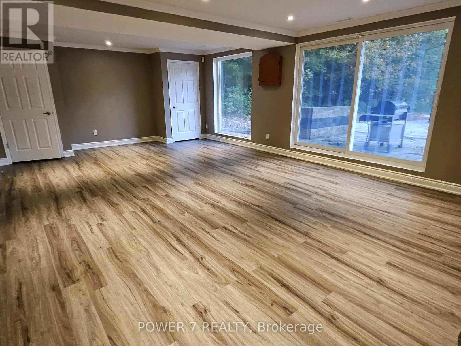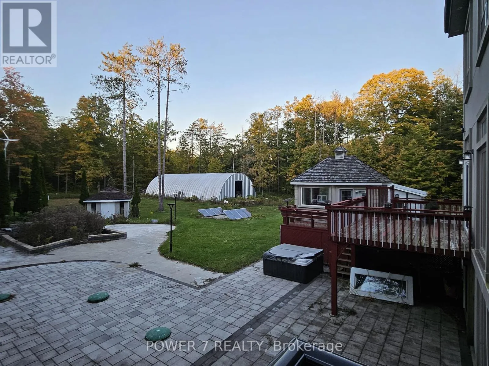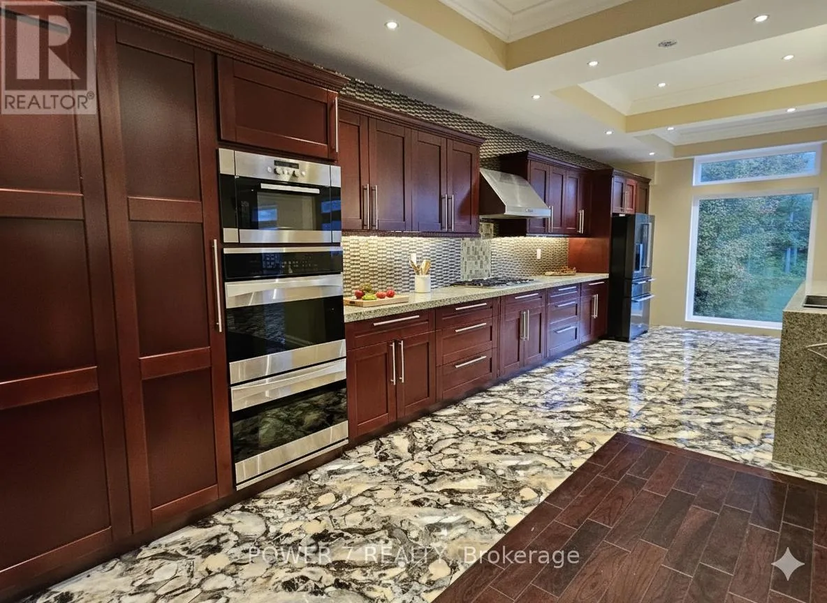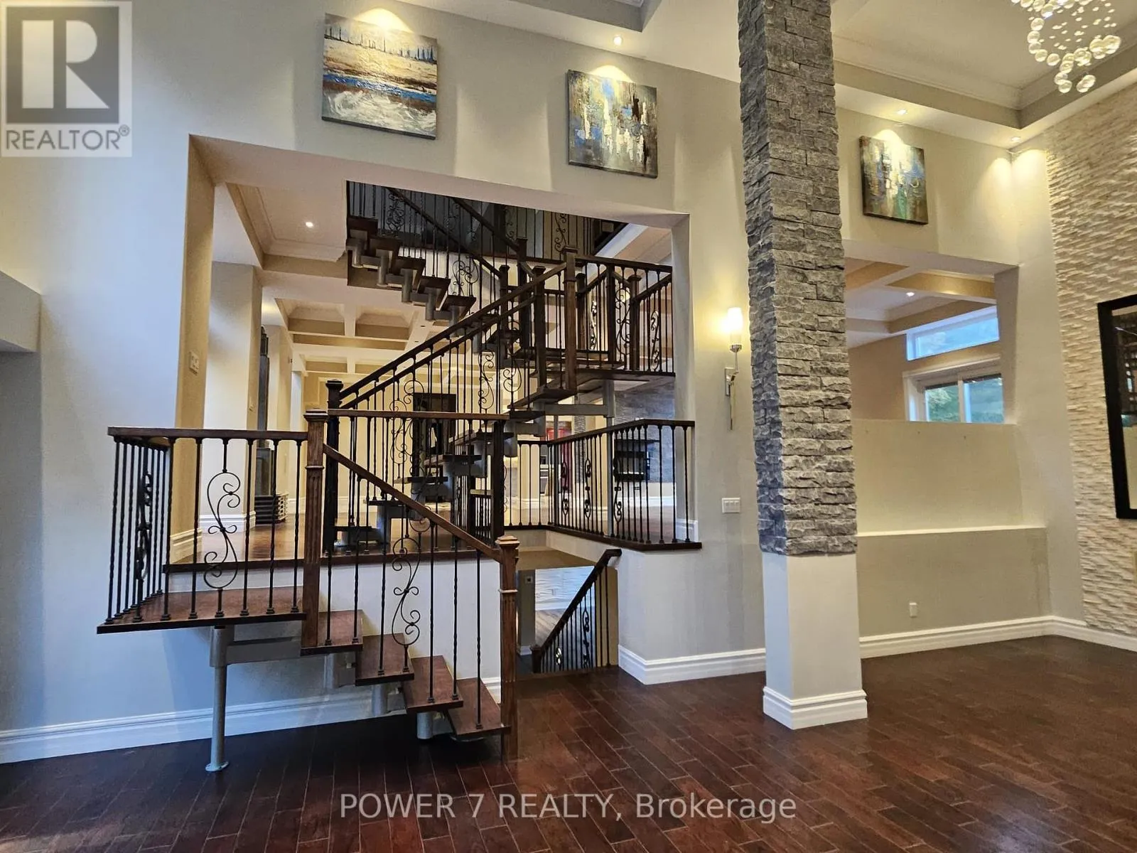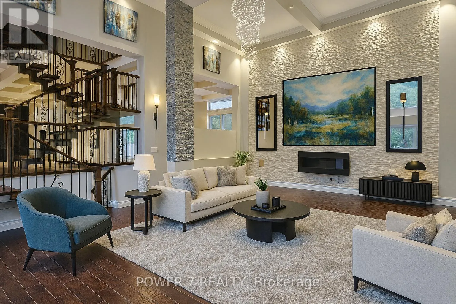 McCowan Rd & Jesse Thomson Road A Golden Opportunity Knocks! Welcome to this Exquisite Contemporary Custom Estate Home, privately nestled on just under 5 acres with 319 of frontage, surrounded by mature trees and backing onto the Serene York Regional Forest. Offering over 7,000 sq. ft. of luxury living plus an additional 2,000+ sq. ft. finished walk-out basement, this home delivers an unparalleled lifestyle in a tranquil forested setting. The striking exterior boasts a stucco & stone façade, 4-car garage, electronic gate, and a circular driveway. Inside, you'll find soaring ceilings on all levels, hardwood floors, waffle ceilings, floating hardwood stairs with wrought iron pickets, and floor-to-ceiling picture windows that flood the living and dining rooms with natural light. The gourmet chefs kitchen is a showpiece with a custom waterfall centre island, upgraded cabinetry, and premium stainless steel appliances perfect for hosting family gatherings and grand celebrations. All 5 oversized bedrooms feature private renovated ensuites. The primary suite offers a boutique-inspired walk-in closet with centre island, and a spa-like 5-pc ensuite with freestanding tub, glass shower, and dual vanities. The professionally finished walk-out basement is ideal for entertaining, complete with floor-to-ceiling windows, a custom-built wet bar, expansive recreation space, and 2 guest suites. Outdoors, enjoy your private garden oasis on a 677 deep lot, complete with a workshop and garden shed. This is truly a rare, one-of-a-kind estate that seamlessly blends modern elegance with peaceful natural surroundings. Don't miss your chance to own this extraordinary gem! Note: The subject is virtually staged. (id:27476)