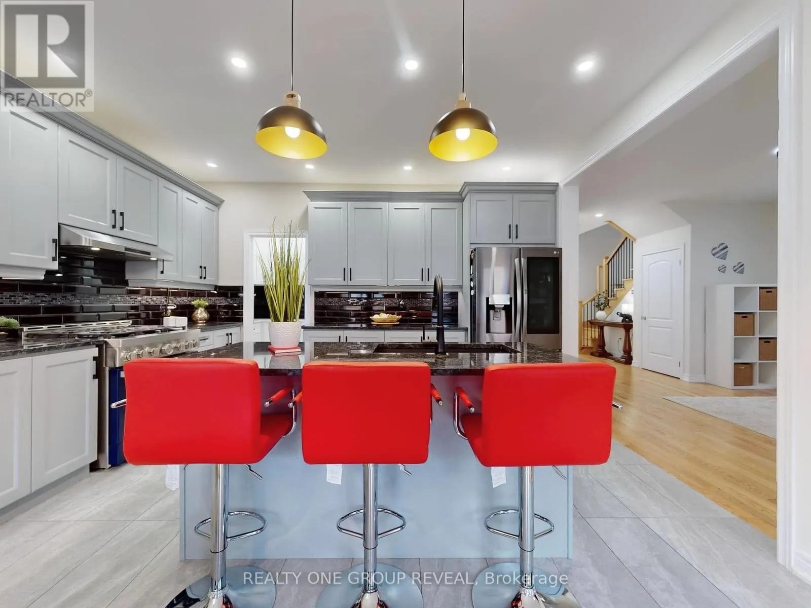 Cross Streets: Hoover Park & Tenth Line. ** Directions: east of 10th line two intersections south of hoover park and 10th line. Welcome to 58 Busato Drive. A Well-Maintained Home in a Family-Friendly Neighborhood. This move-in ready property offers a thoughtful blend of comfort and modern updates. The home includes built-in closet organizers in the primary and secondary bedrooms to maximize space and storage. The extended kitchen features soft-close cabinetry, custom inserts, a glass tile backsplash, a 36" gas stove, and a high-performance range hood designed for both everyday use and entertaining. The interior, freshly painted in 2023 in neutral tones, provides a bright and welcoming atmosphere. Motorized zebra blinds on the main level allow for adjustable light control. The updated powder room includes modern finishes, and the basement has a rough-in for a potential three-piece bathroom. Additional features include central air conditioning with a built-in humidifier and a whole-home water softener system. The fully fenced backyard offers a gas BBQ hookup, landscaped gardens, and exterior lighting on a timer. The double garage includes heavy-duty shelving, and the upgraded front entry enhances curb appeal. Located close to schools, parks, shopping, and major highways, 58 Busato Drive offers convenient access to local amenities and community spaces. (id:27476)